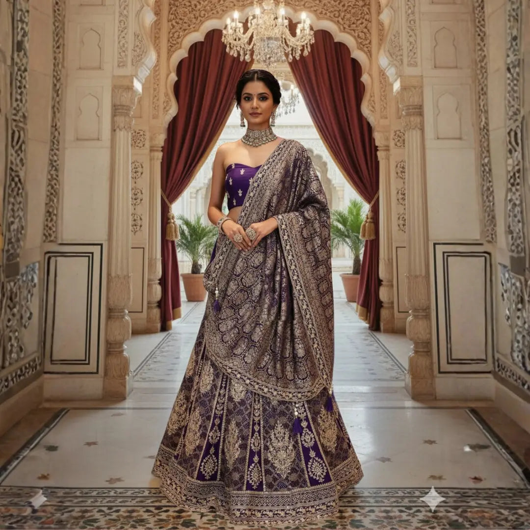 FENDI FABRIC LEHENGA WITH DARBARI AND SEQUENCE WORK WITH HEAVY DUPATTA ##LC053