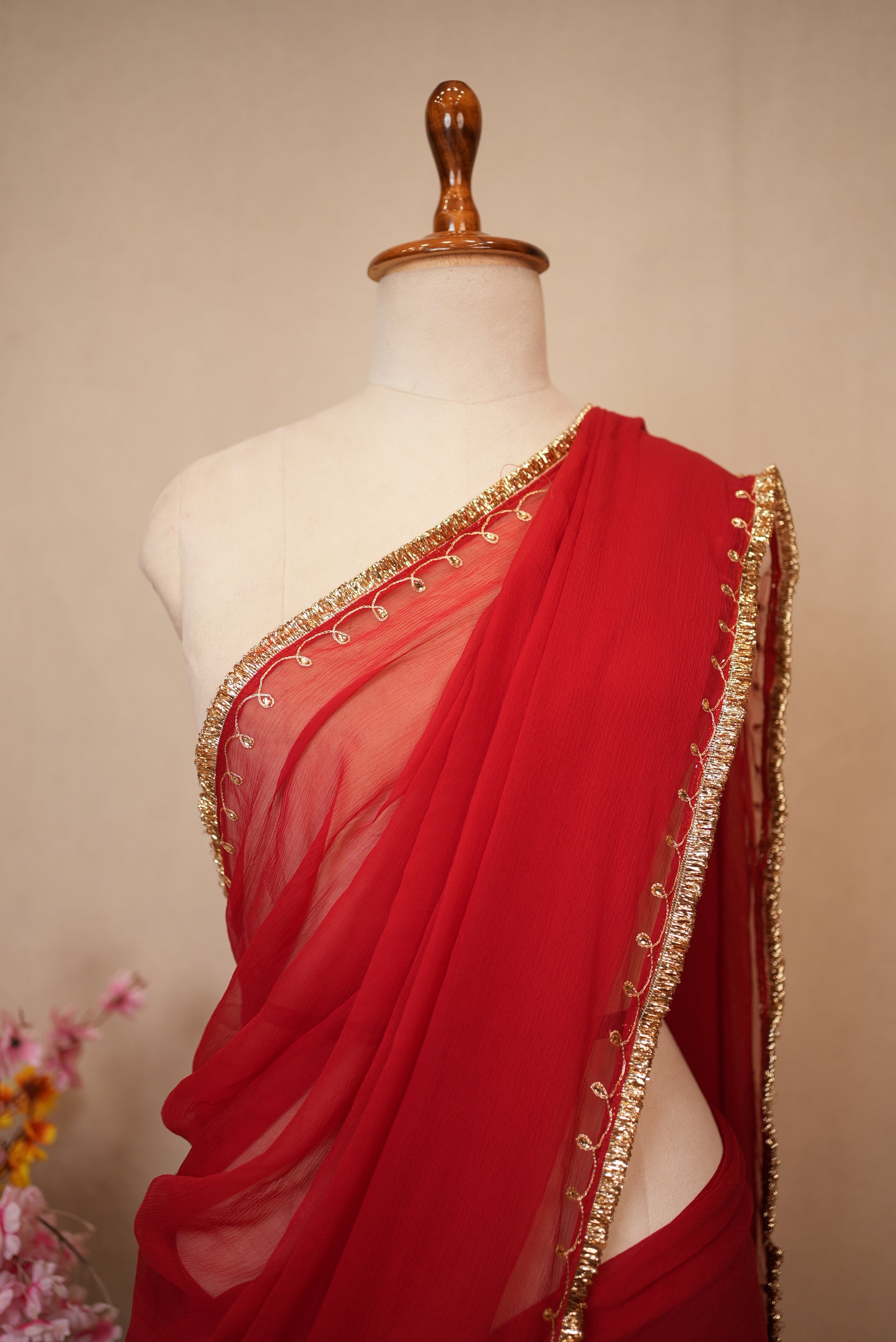 RED COLOUR SPECIAL SAREE WITH PURE AARI WORK & PANJABI LACE (FULL CUSTOMIZABLE) ##SR574