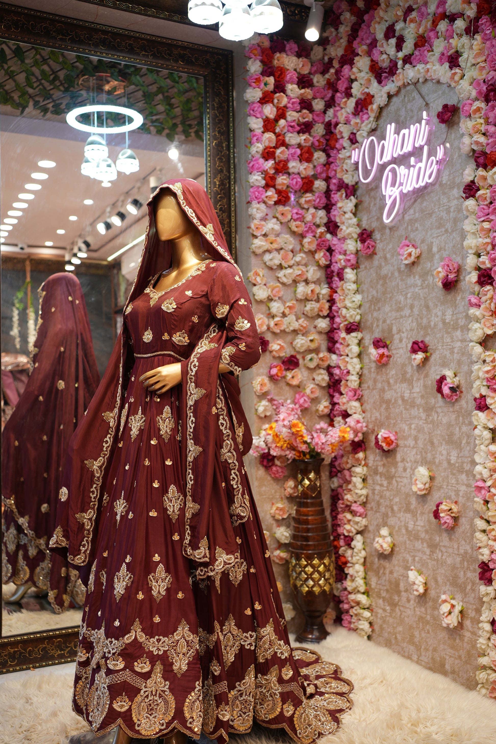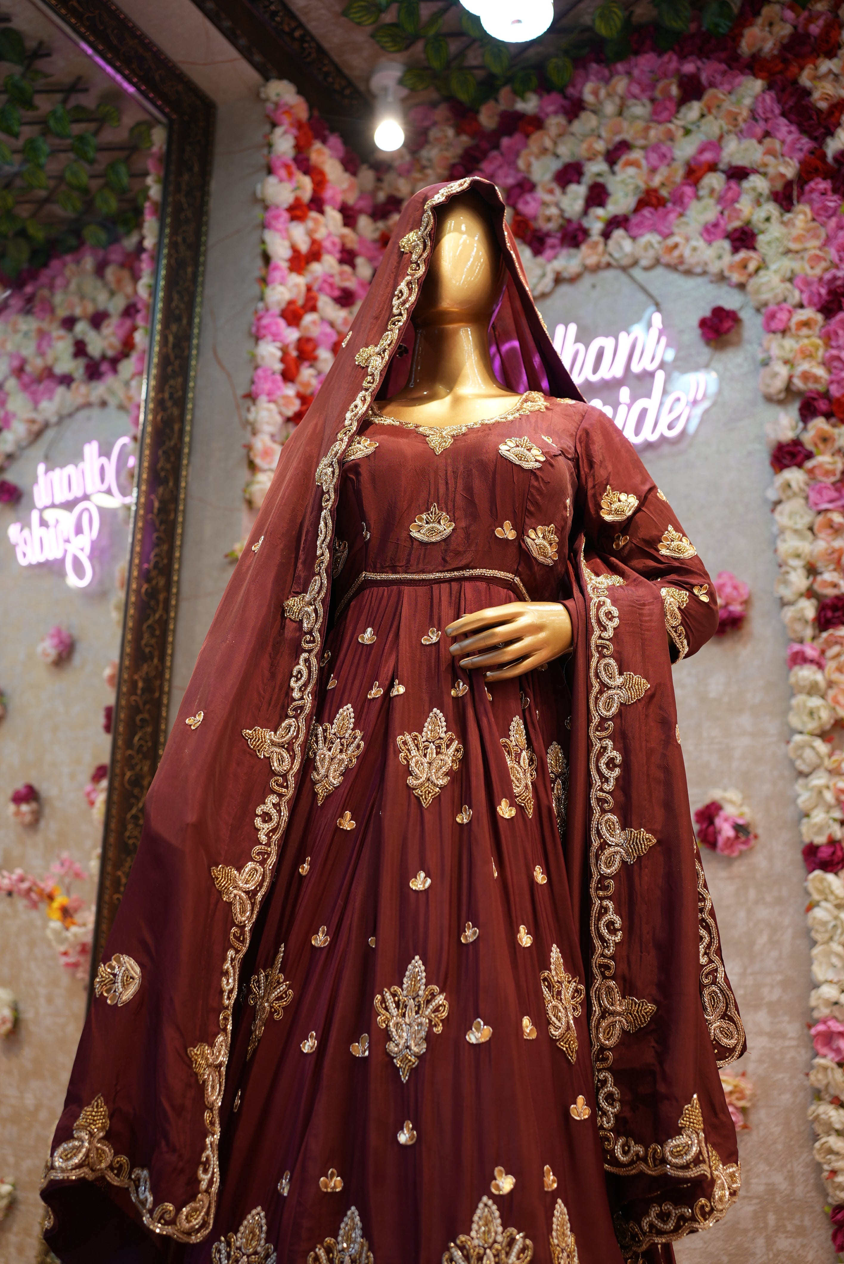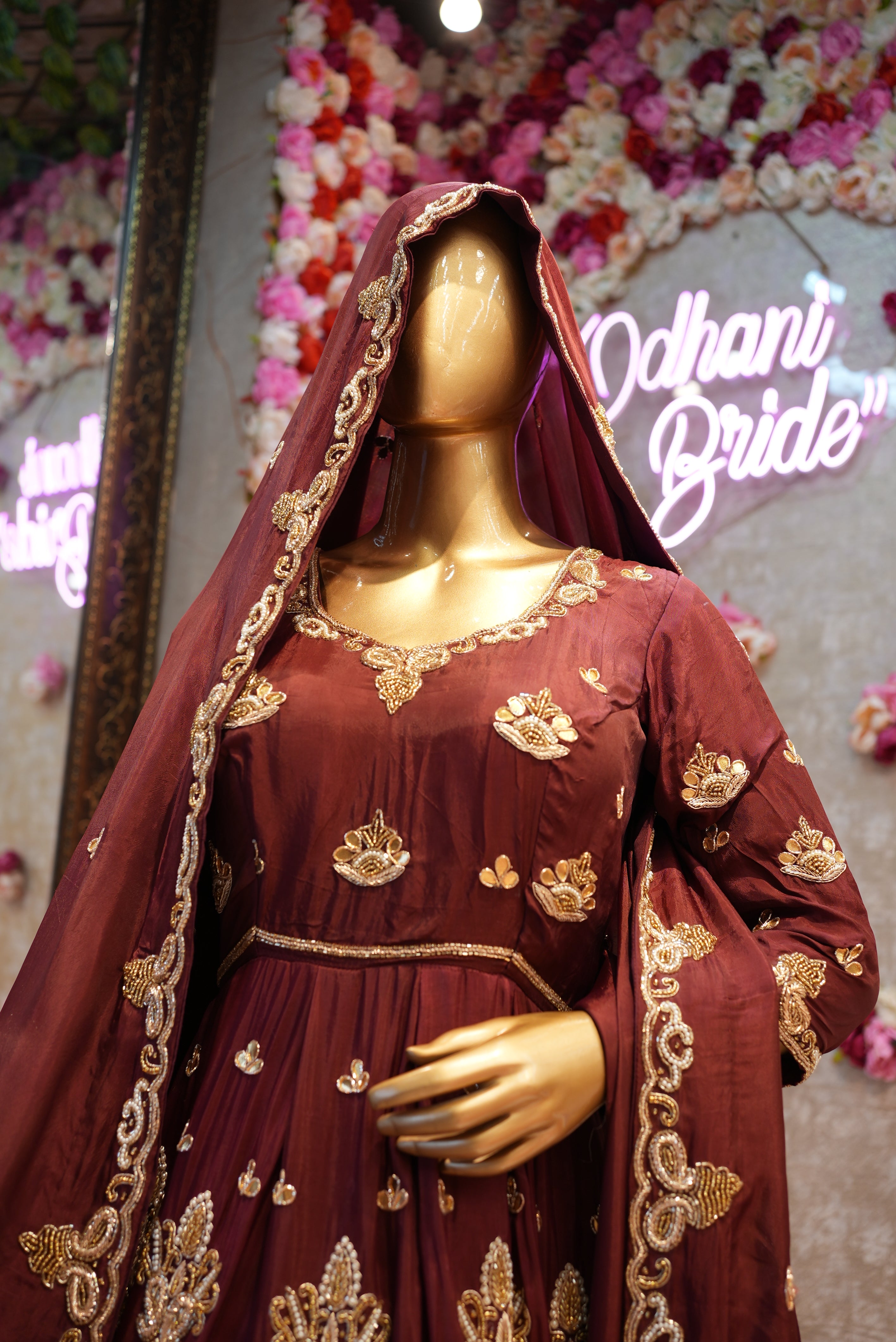 PURE HANDWORK BRIDAL WITH ZARDOSI HANDW0RK ON UPADA SILK FABRIC IN GOWN SHAPE WITH HEAVY HANDWORK DUPATTA ##BR02