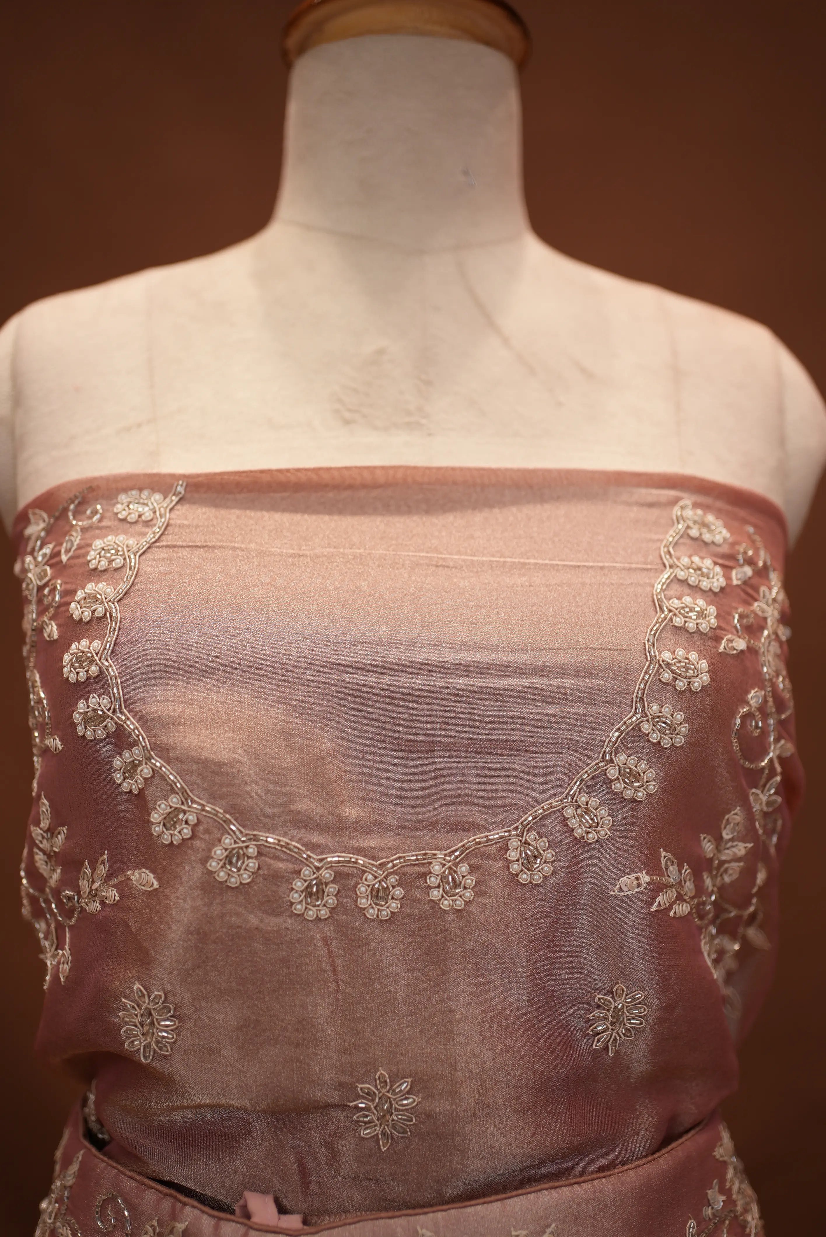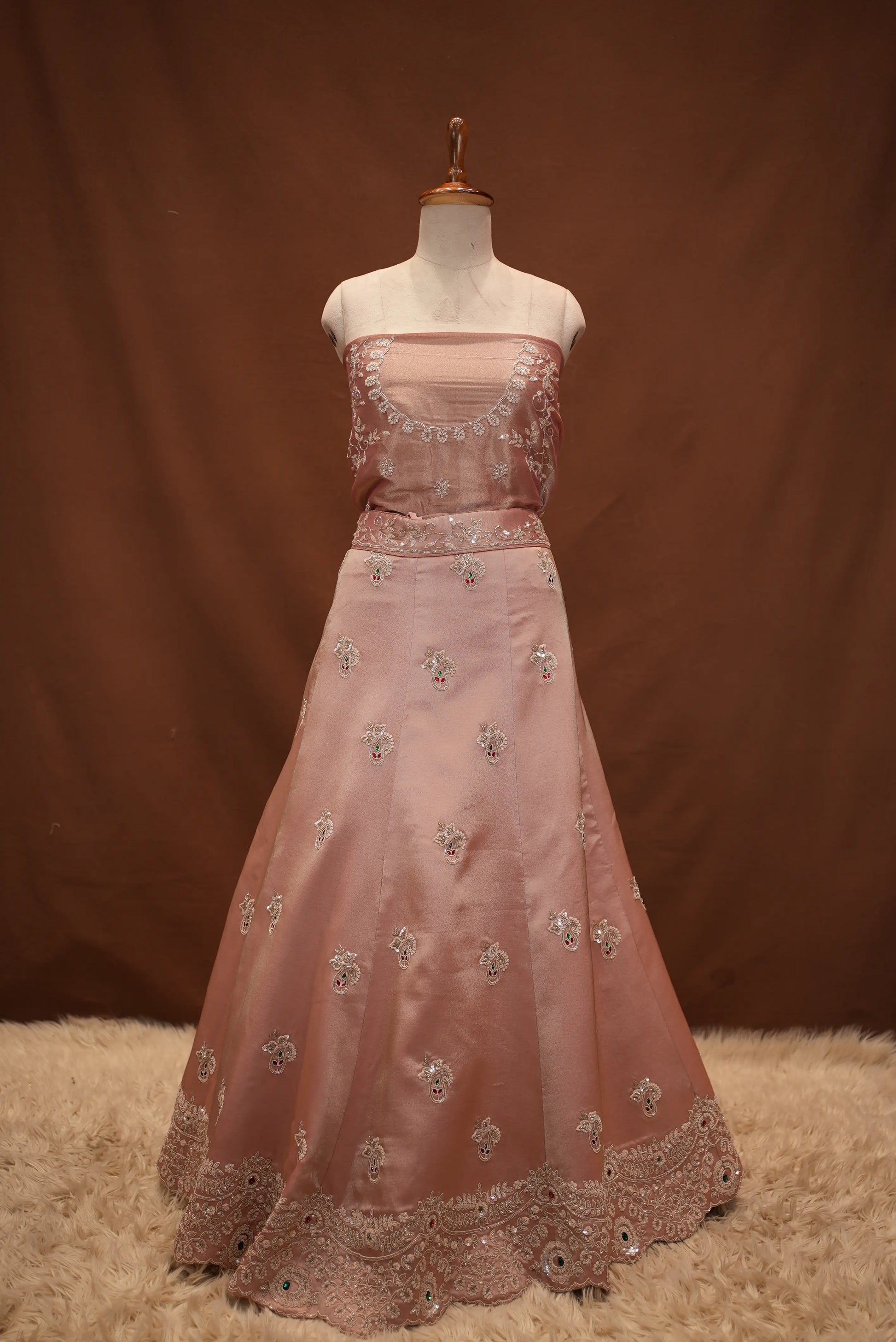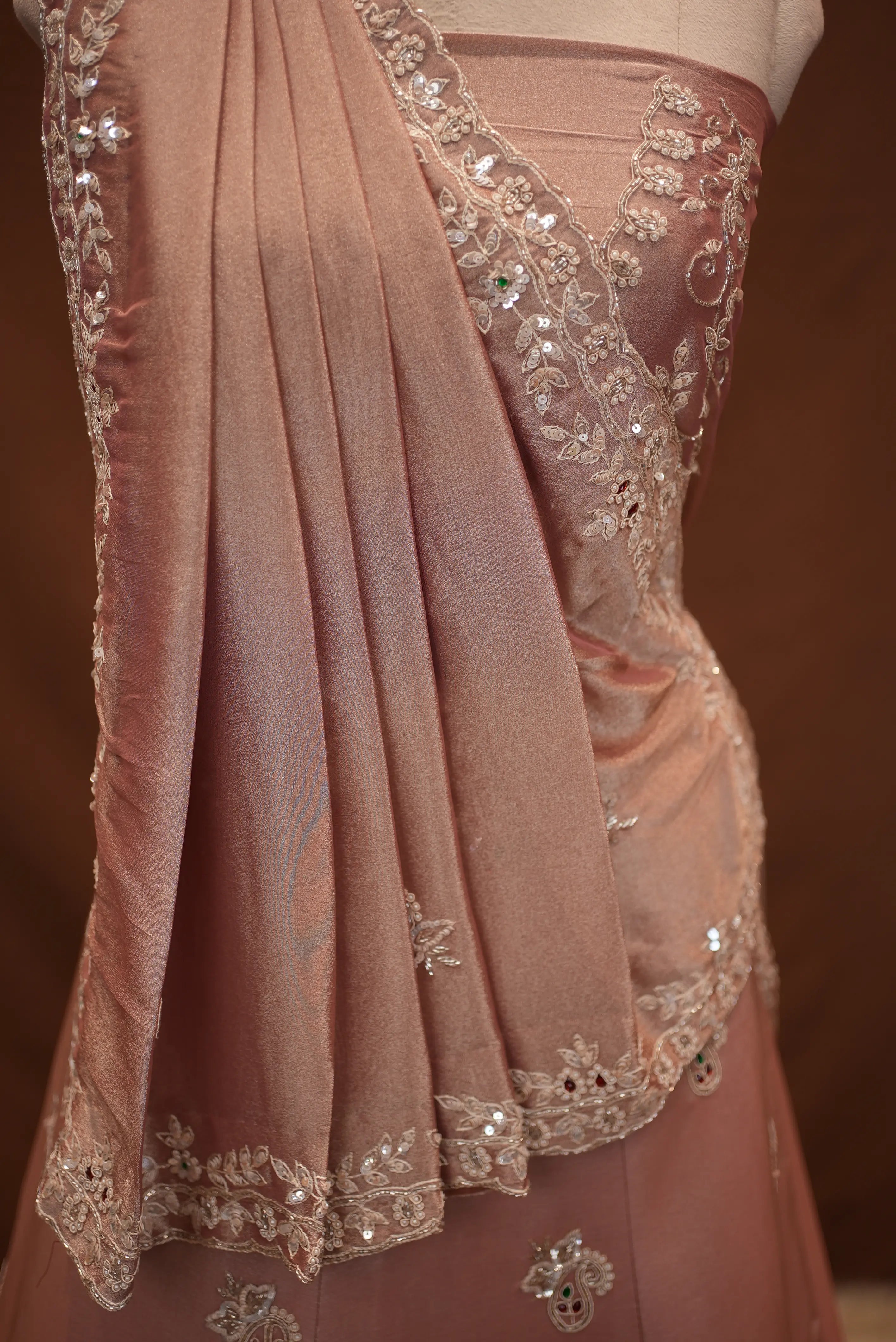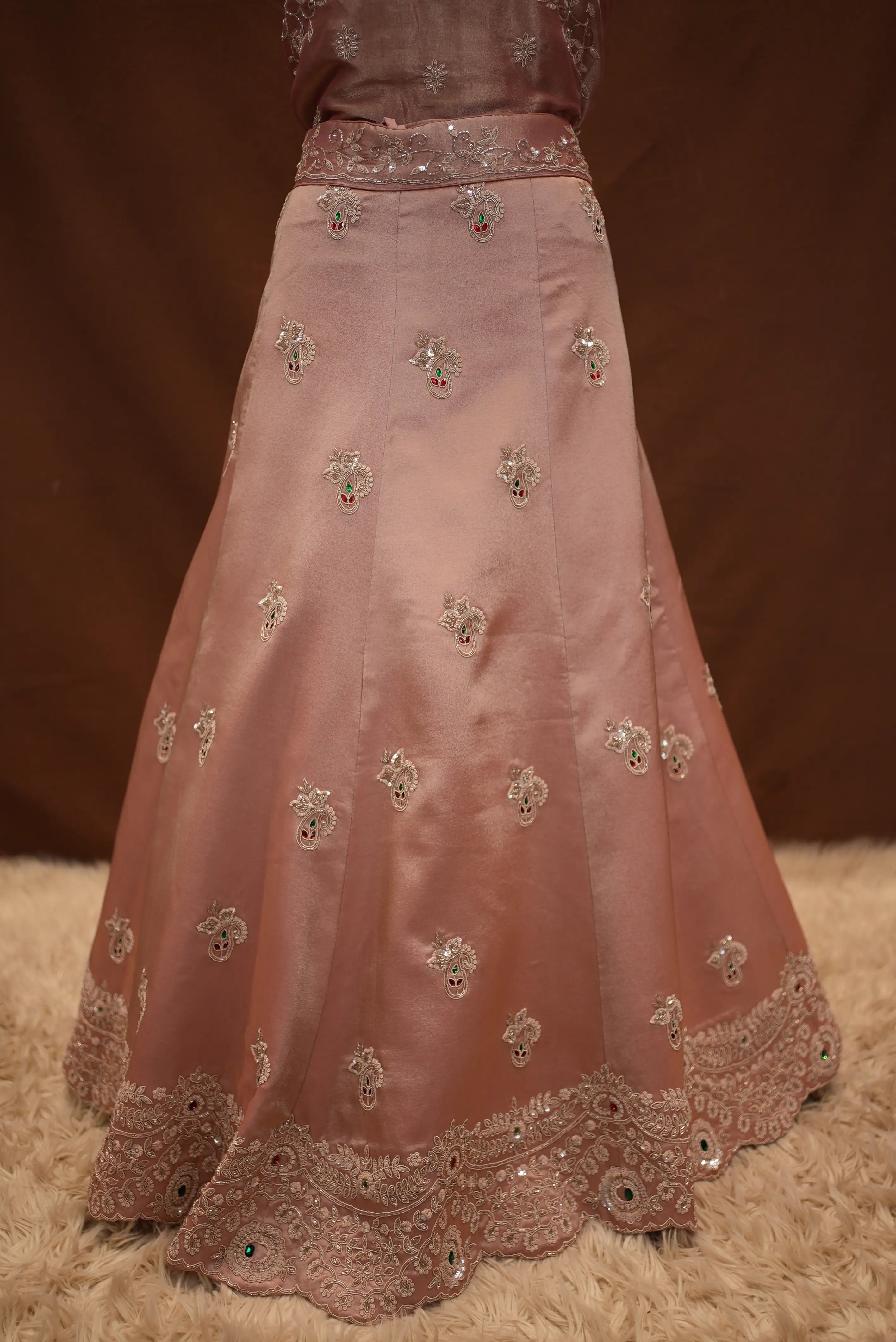 Feel the touch of royalty with this pure Kolkata work handwork lehenga, specially crafted to show rich traditional craftsmanship. It consists of a very heavily embroidered Zardozi work blouse, which adds just that extra touch of luxury and detail for the overall ensemble. A heavy cutwork-tissue fabric dupatta further embellishes the look and adds to the royalty of the outfit. Ideal for weddings, receptions, and grand celebrations, this set of lehengas personifies timelessness with its elegance and royal charm.