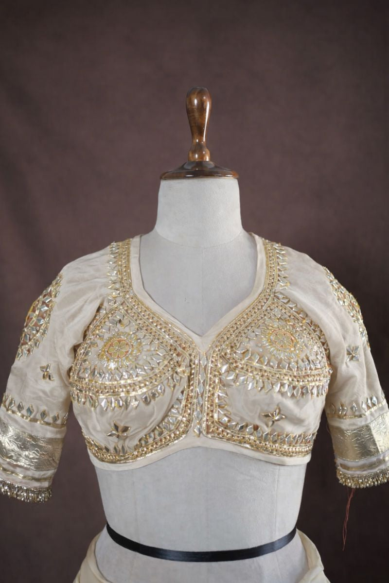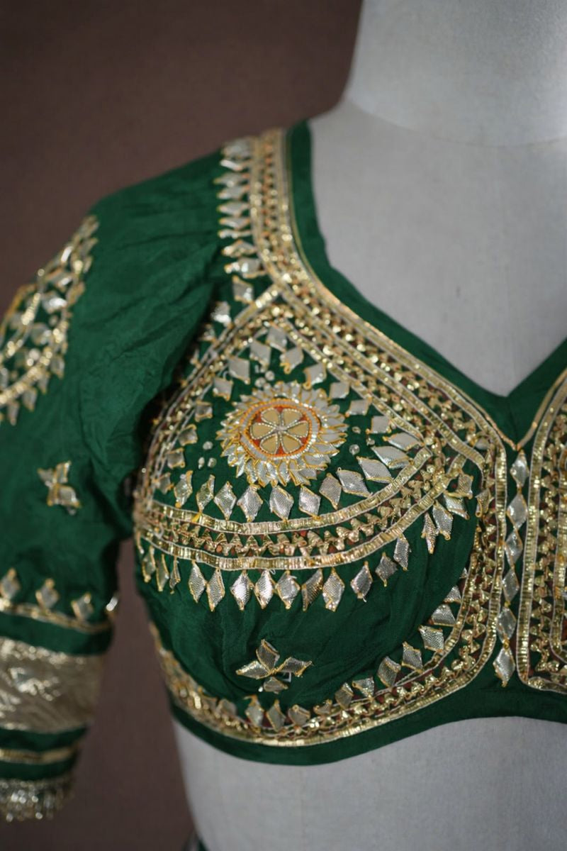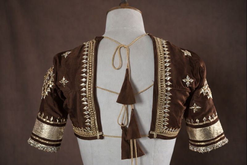 Embrace the charm of Rajasthan with this Traditional Aangi blouse, intricately embellished with Kachi Gota Patti handwork. Each detail reflects the finesse of skilled artisans, bringing alive a heritage craft that adds regal elegance to any attire. Perfect for pairing with festive sarees or lehengas, this blouse is a statement of tradition, culture, and timeless beauty.