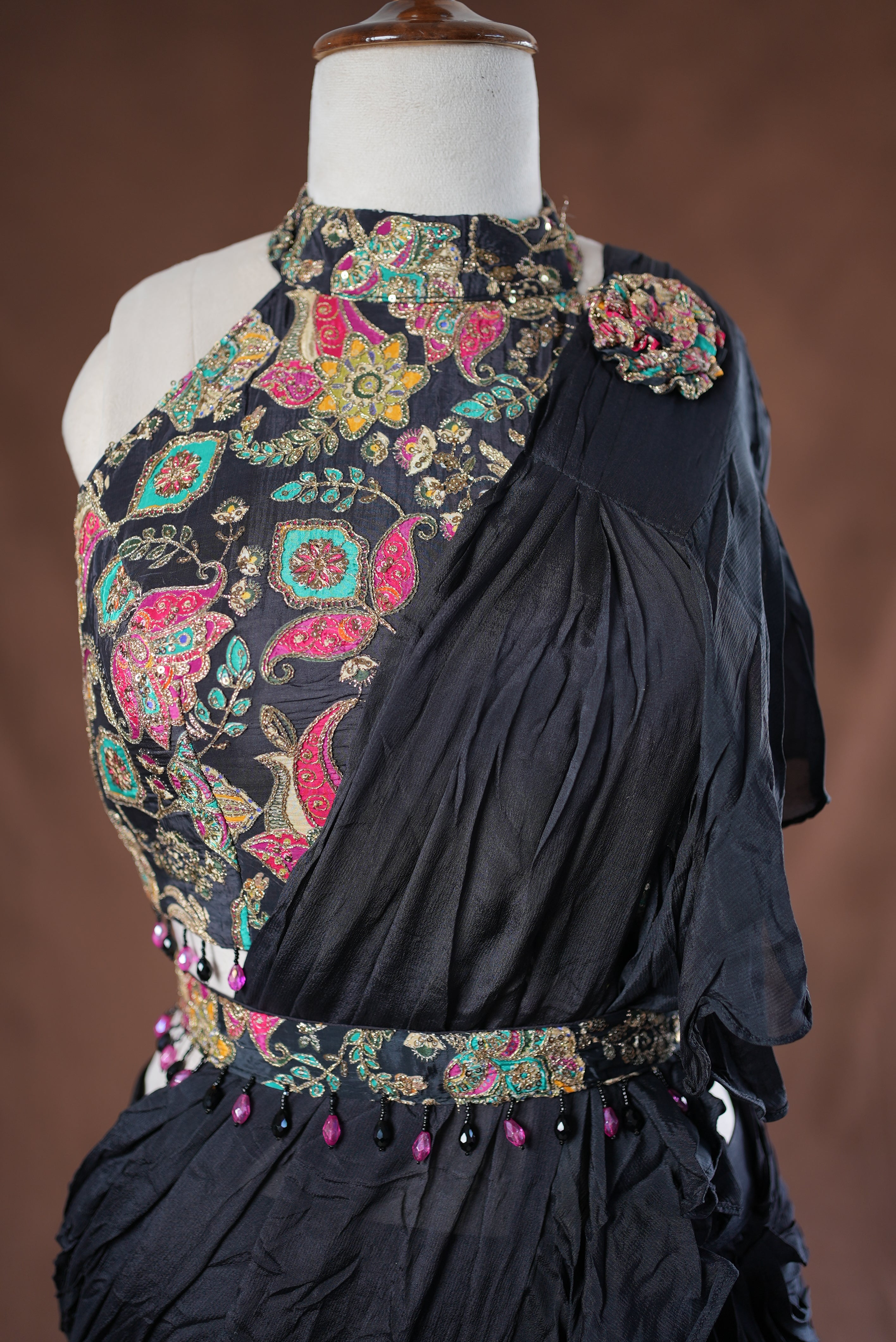 Celebrate the festive spirit in style with this Navaratri Special Indo-Western Saree. Blending traditional elegance with a modern twist, this saree comes with a beautifully stitched blouse for a ready-to-wear experience. Perfect for Garba, Dandiya nights, and festive gatherings, it adds a touch of glamour while keeping you comfortable and chic throughout the celebrations.