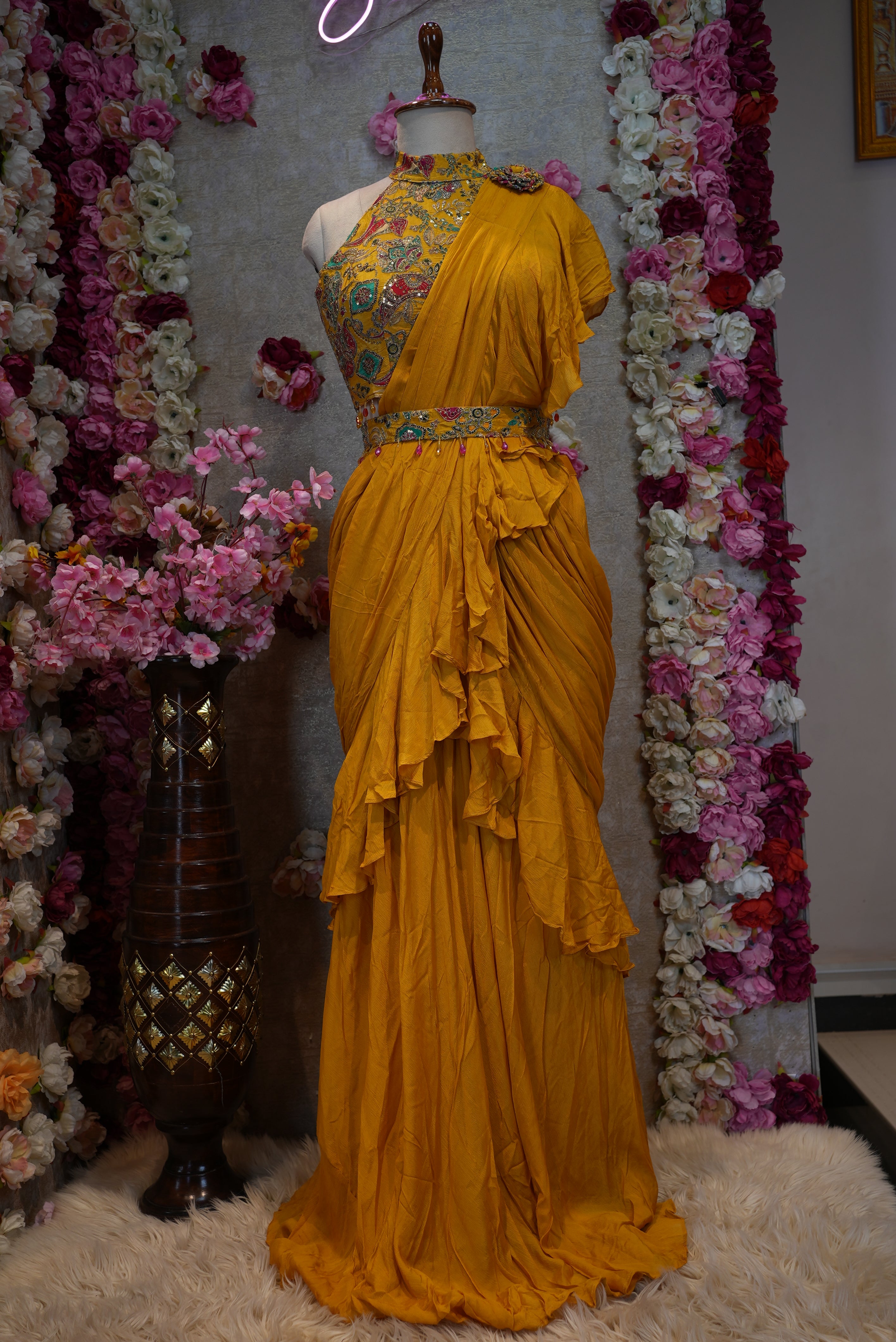 NAVARATRI SPECIAL INDO WESTERN STYLE SAREE WITH STITCH BLOUSE ##SR0393