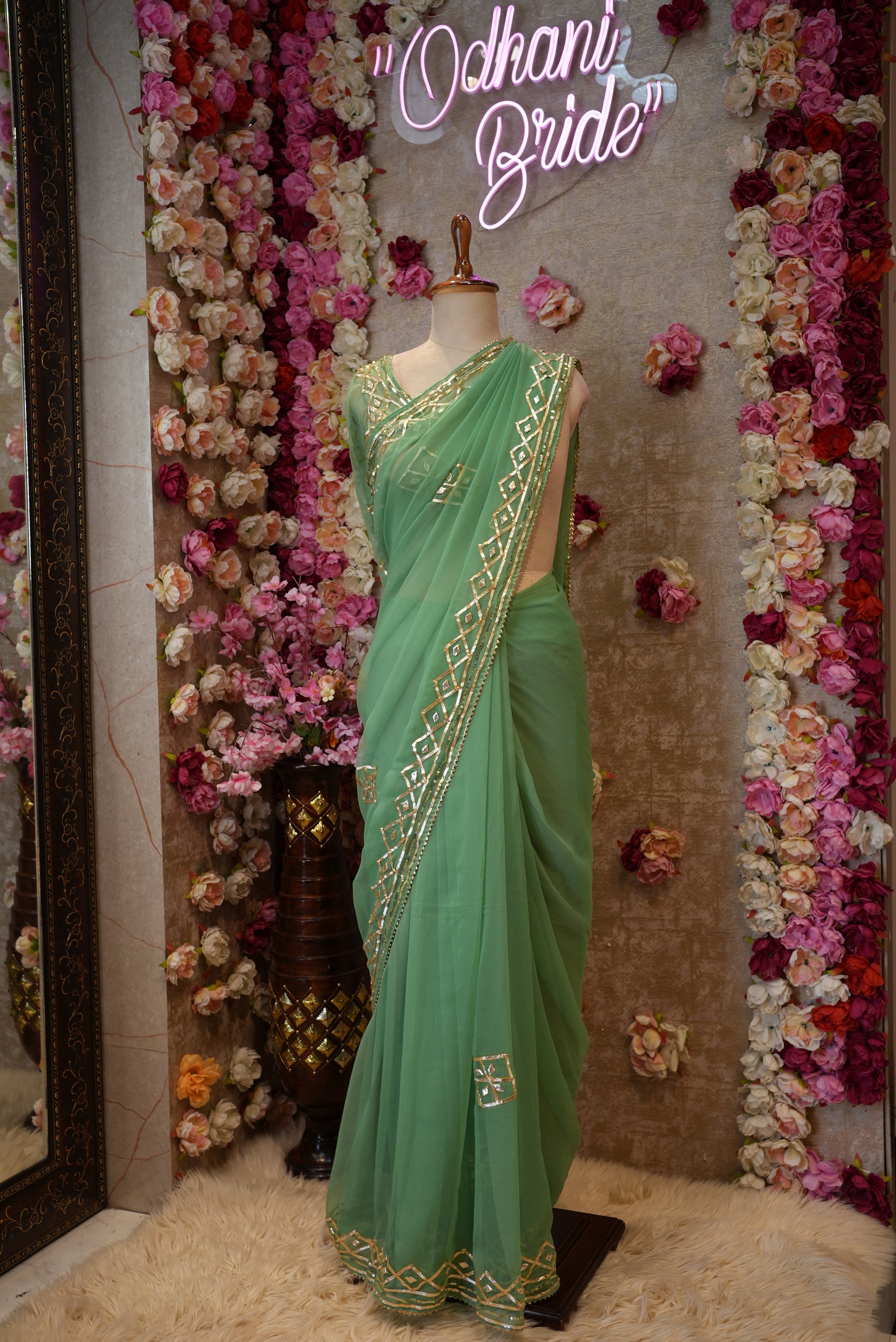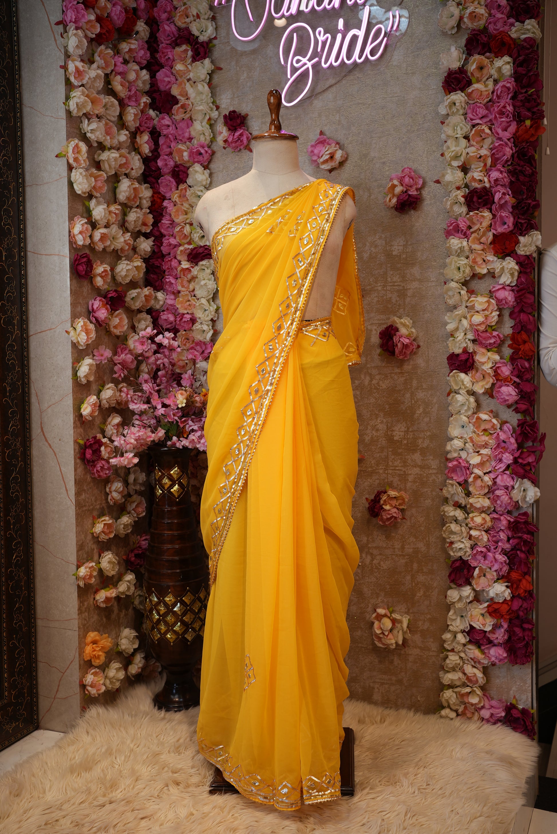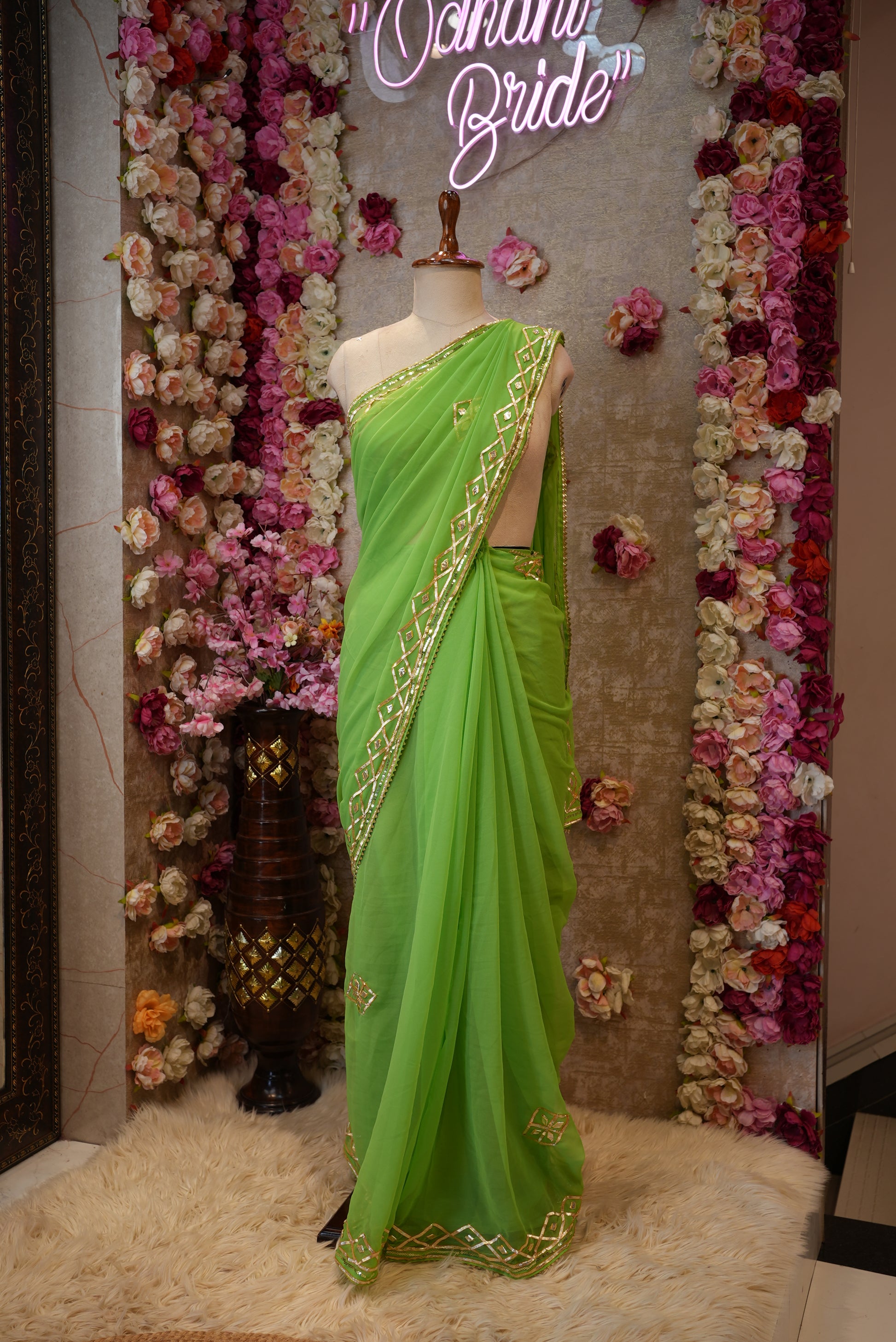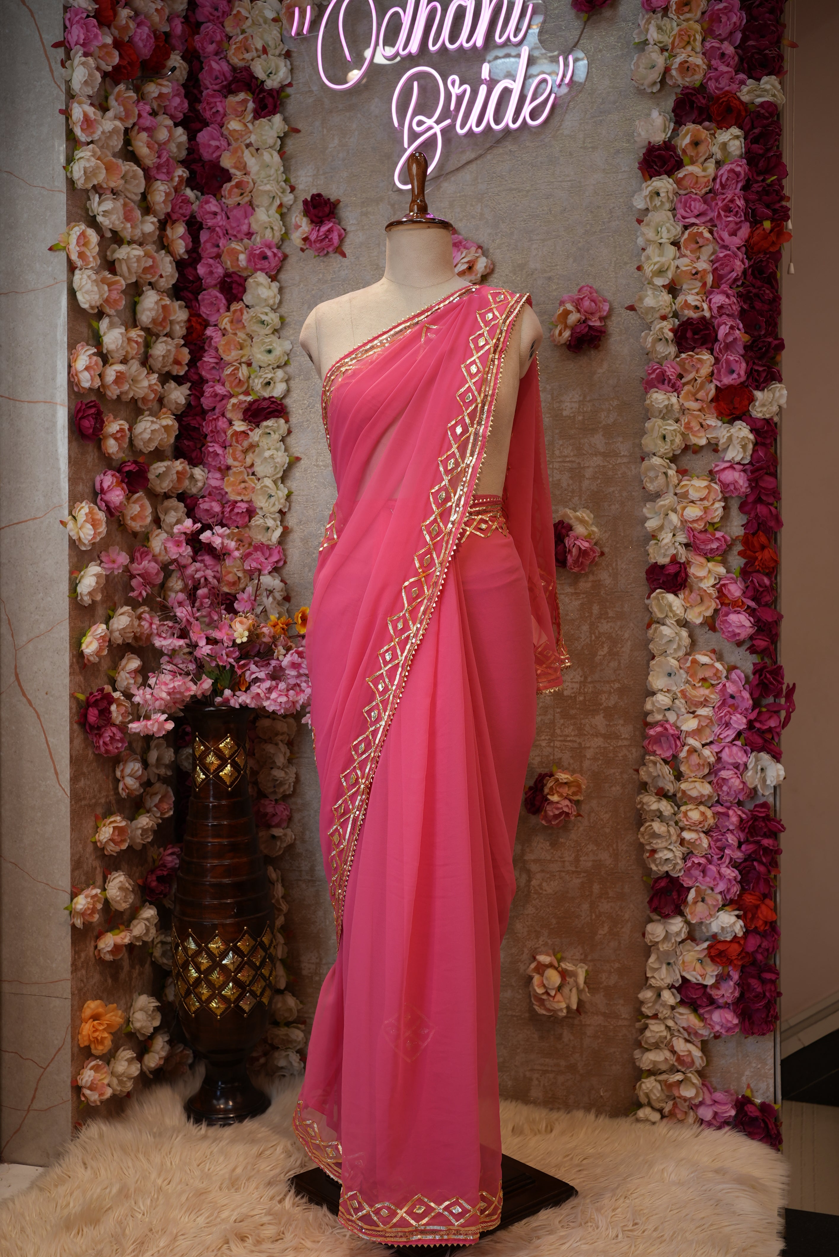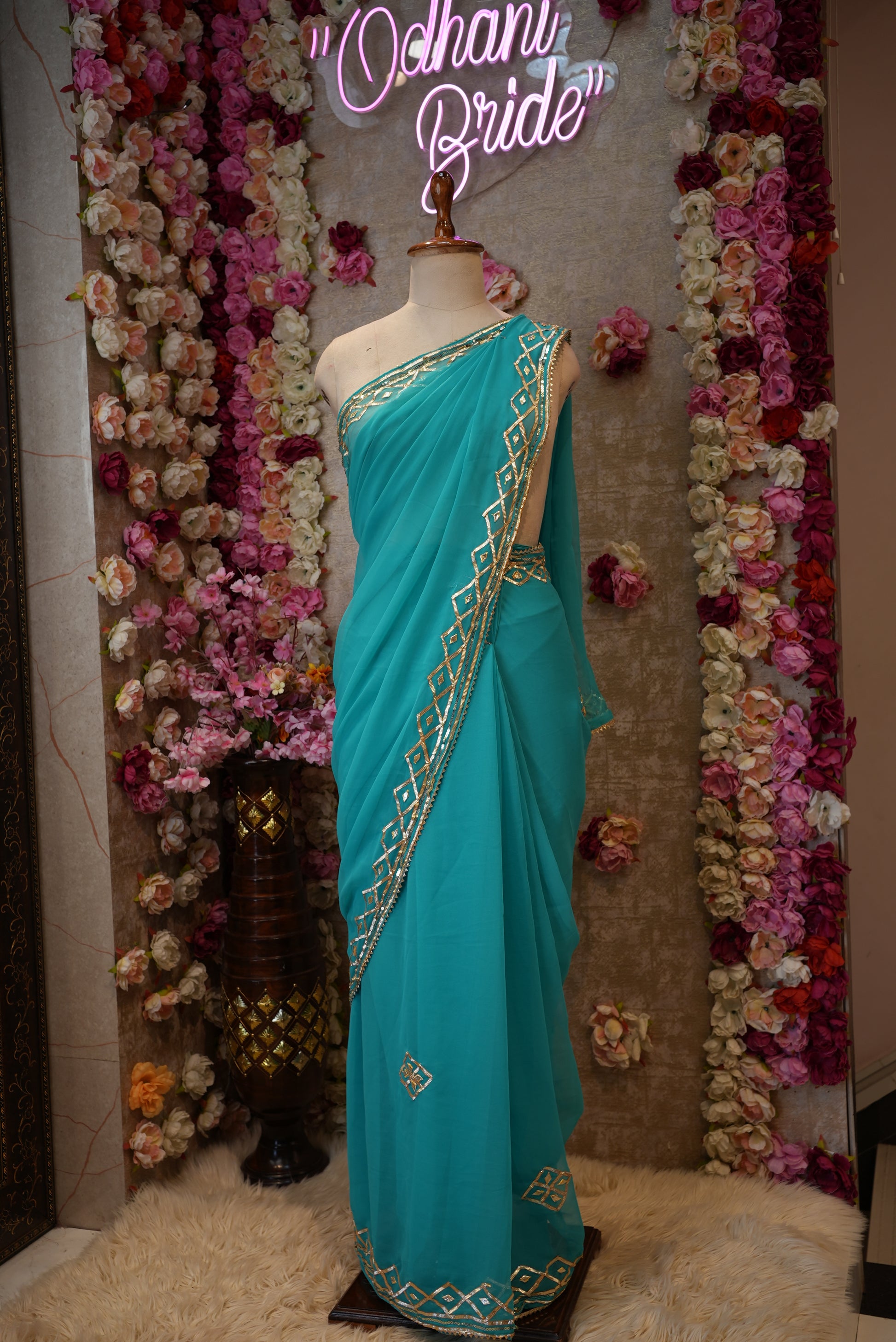 ROYAL GEORGETTE FABRIC SAREE WITH CHARKHI GOTAPATTI WORK (WITH BLOUSE) ##SR0374