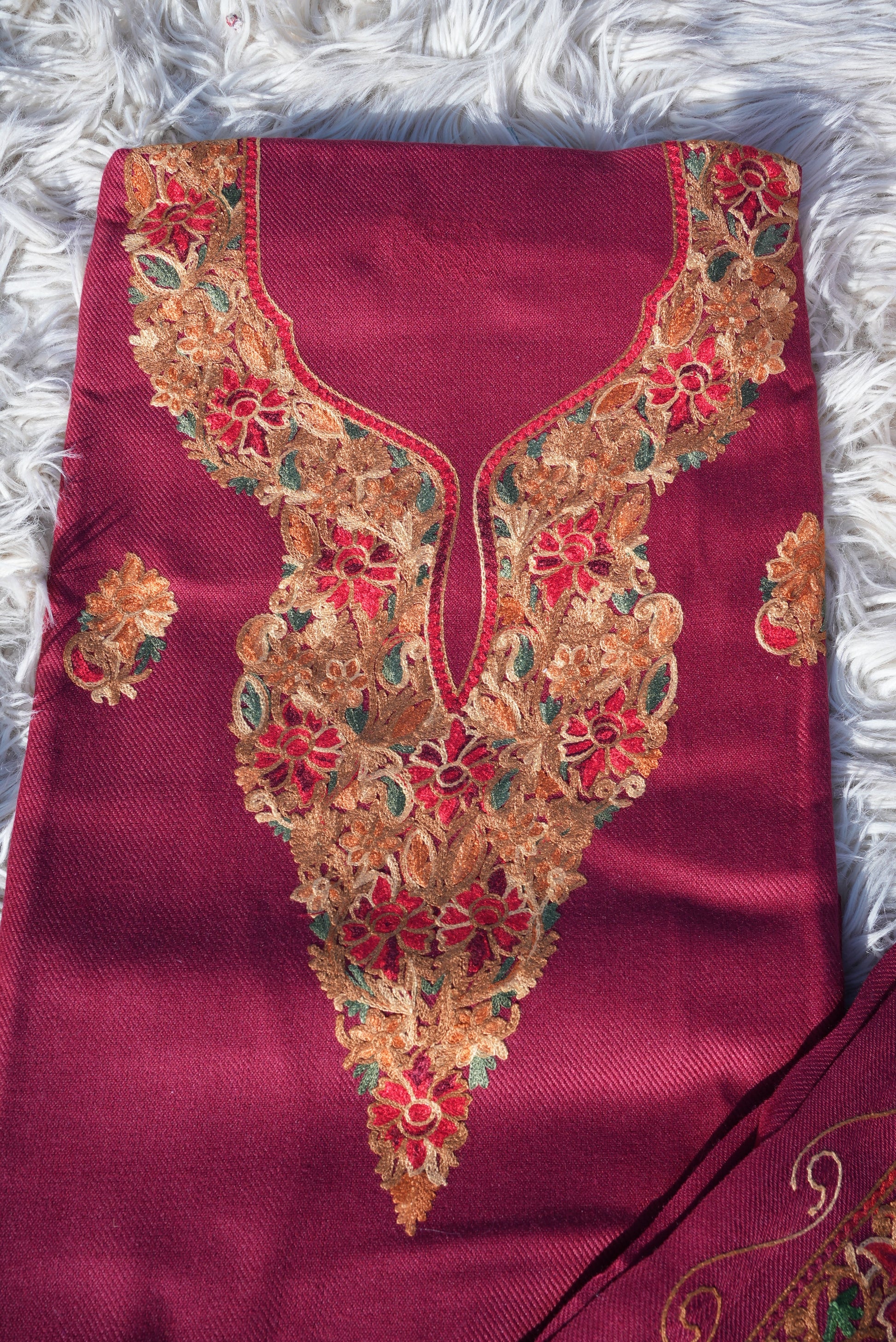 3-PIECE SUIT FABRIC WITH THRED WORK ON WOOLEN FABRIC WITH DUPATTA ##SF045