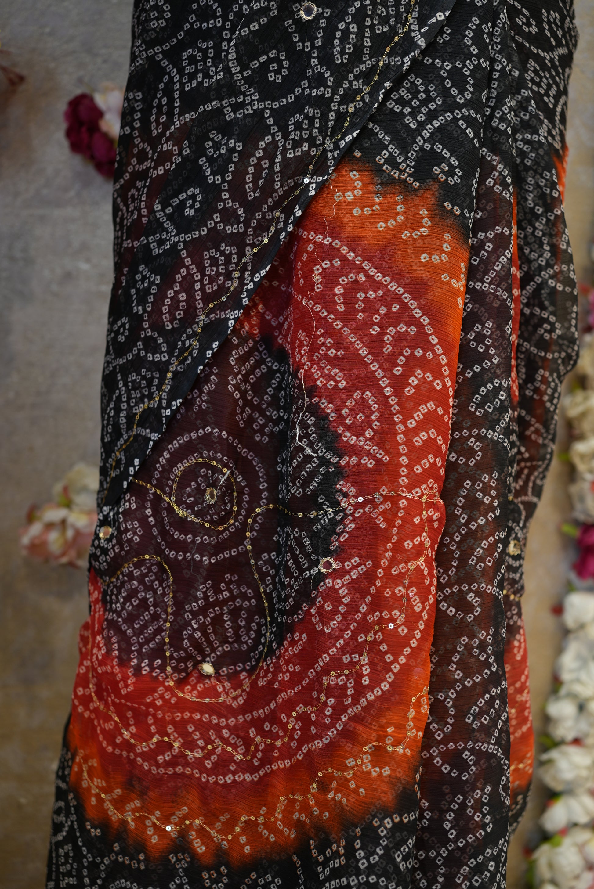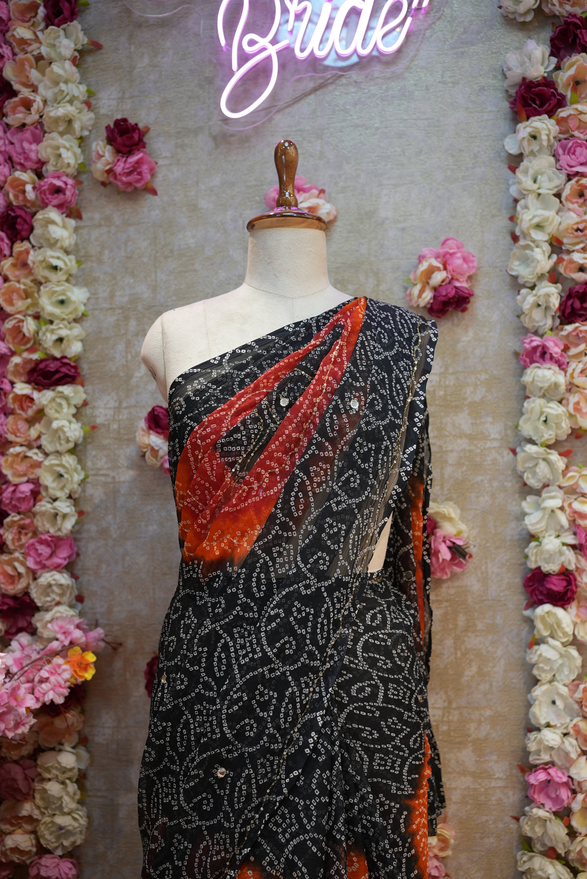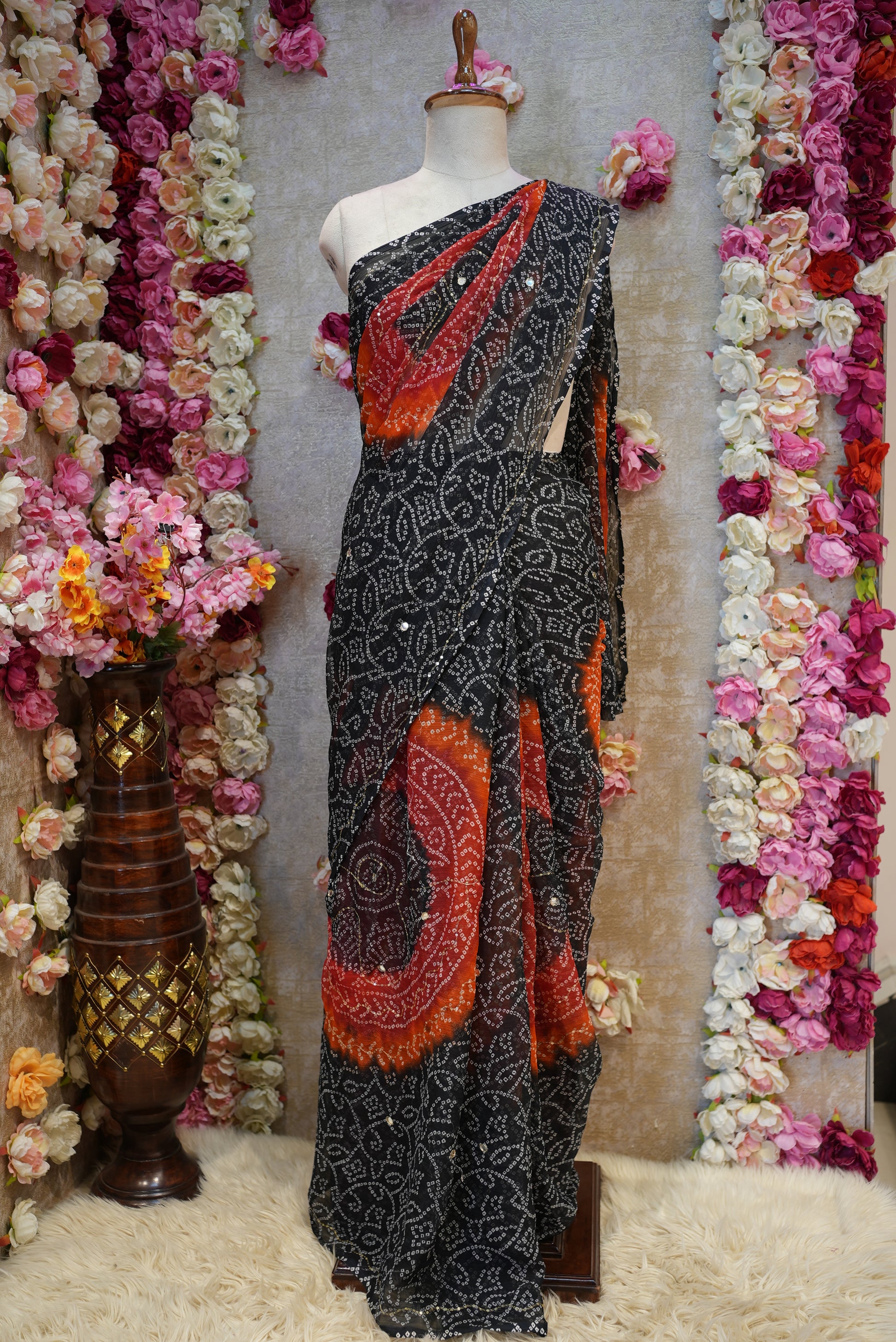 BLACK COLOUR BANDHANI SAREE WITH AARI & MIRROR WORK (WITH BLOUSE) ##SR500