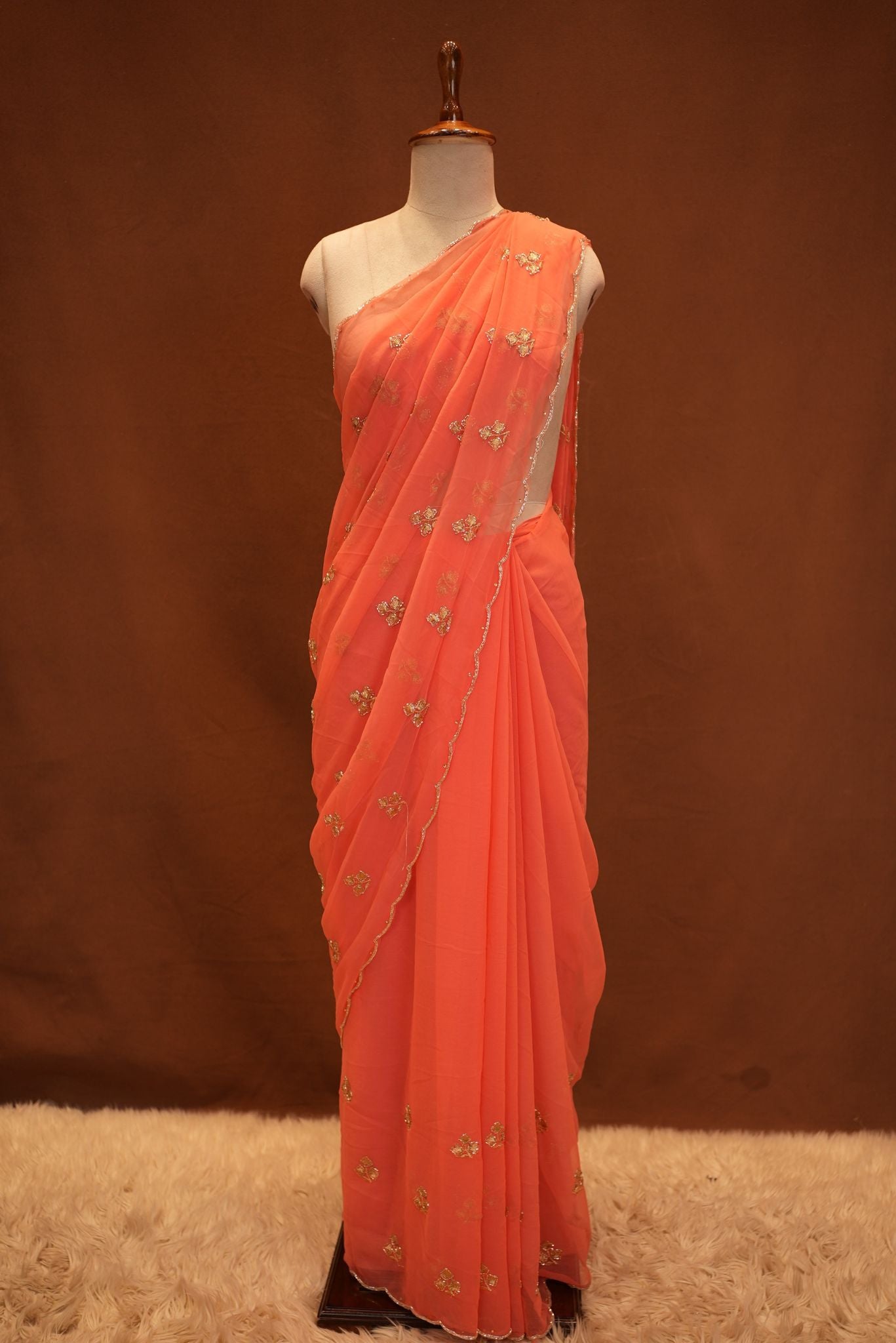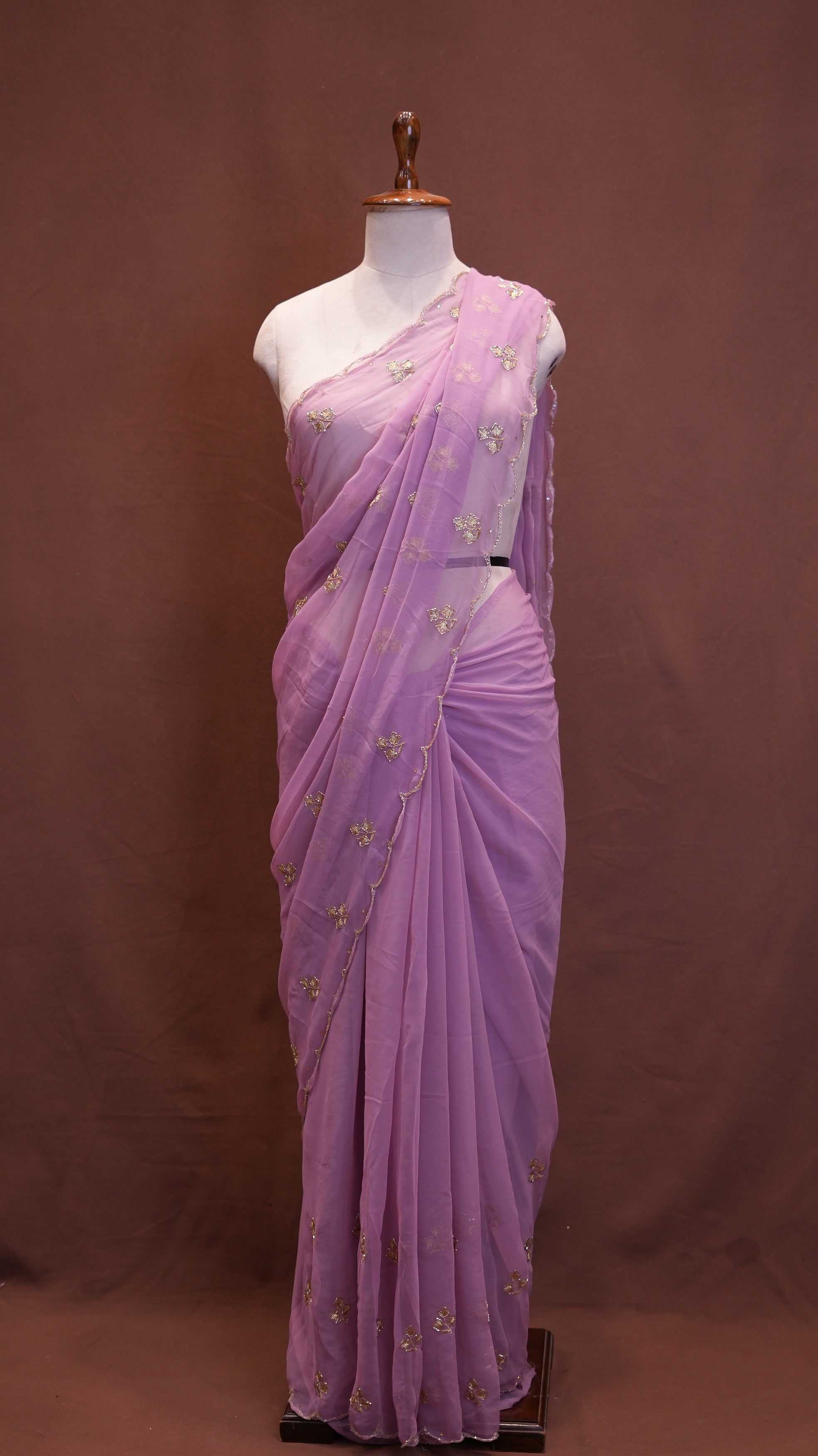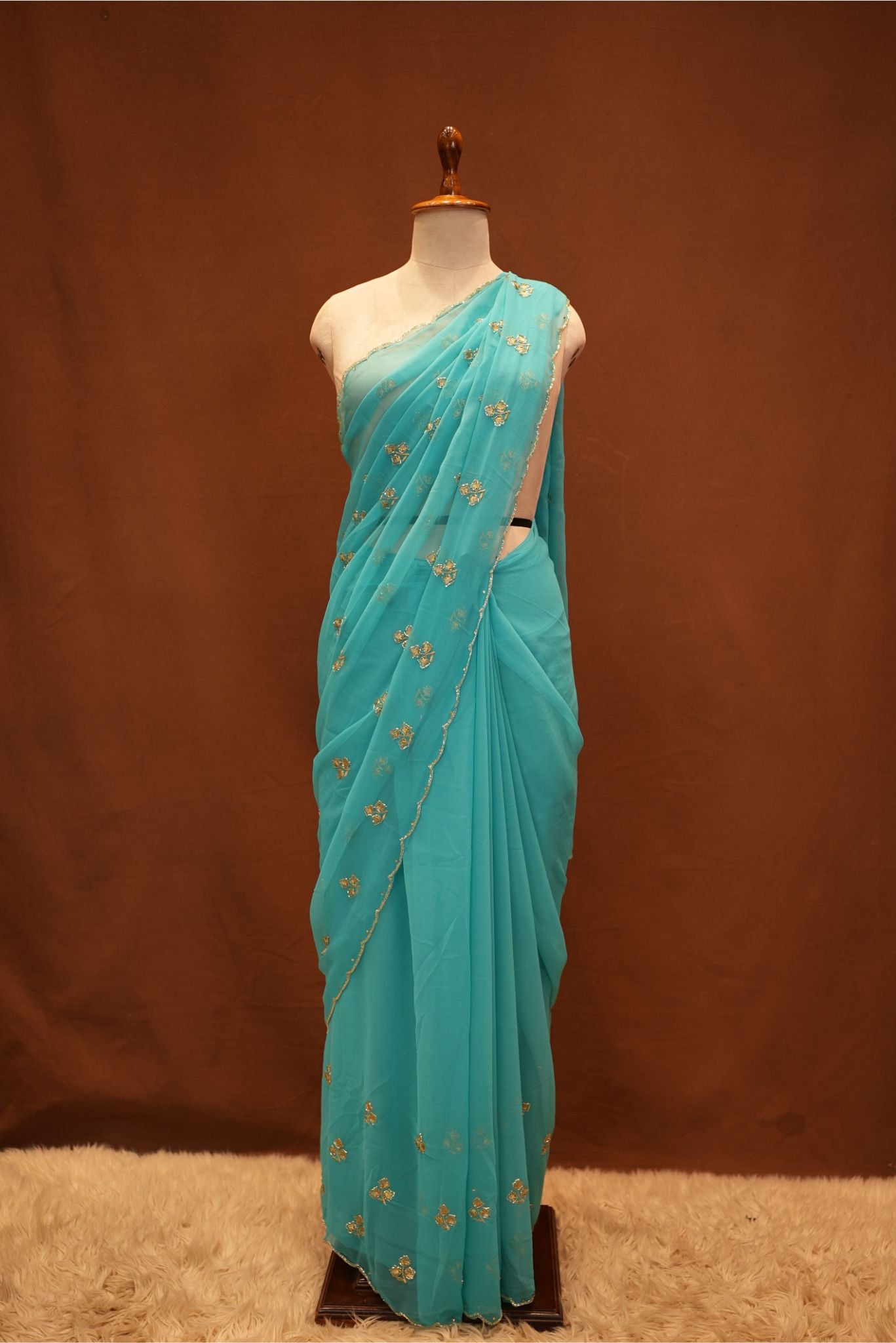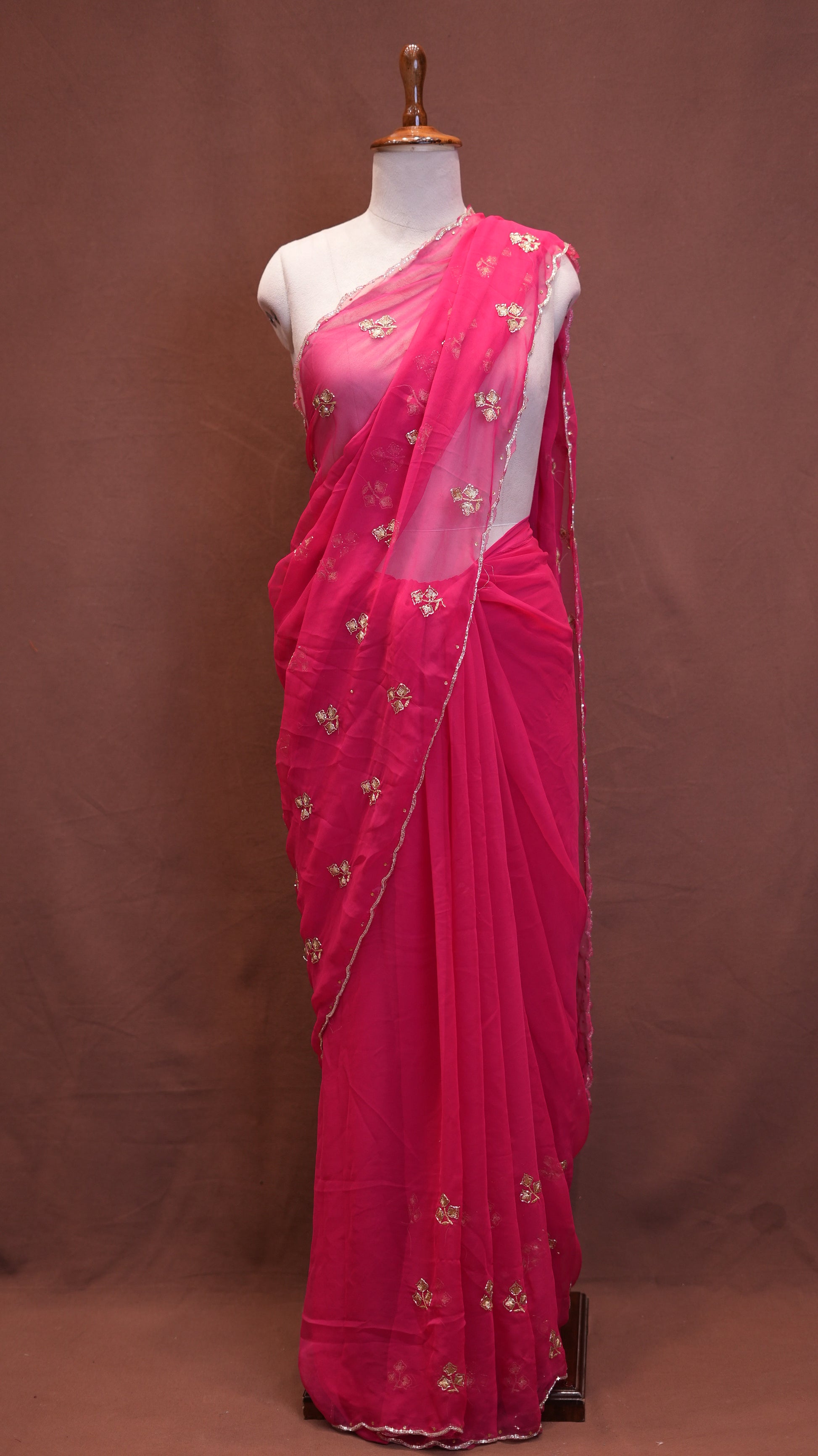 CUTDANA AND AARI WORK SAREE WITH SMALL BUTTI PATTERN AND CUTDANA BORDER (WITH RUNING BLOUSE) ##SR480