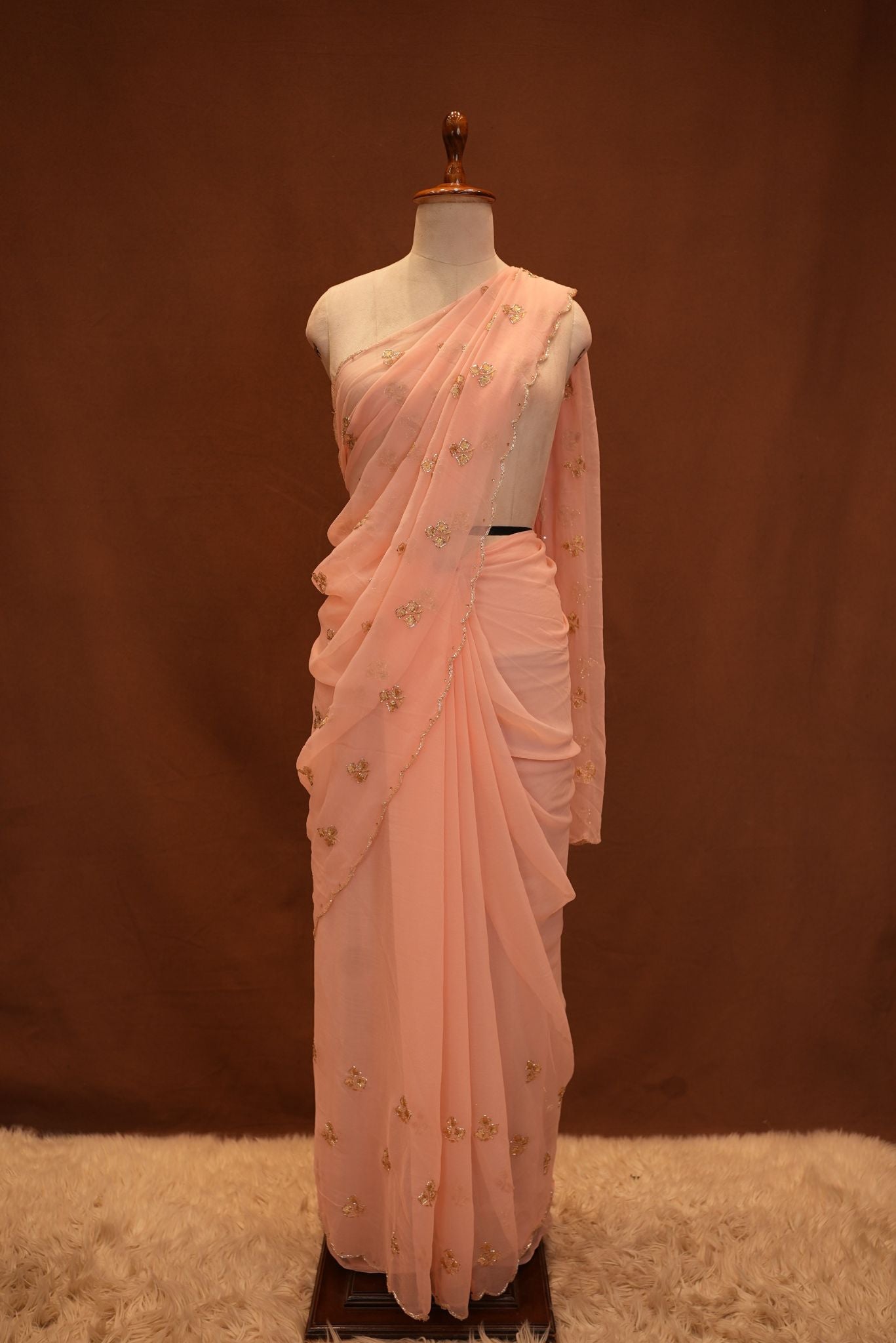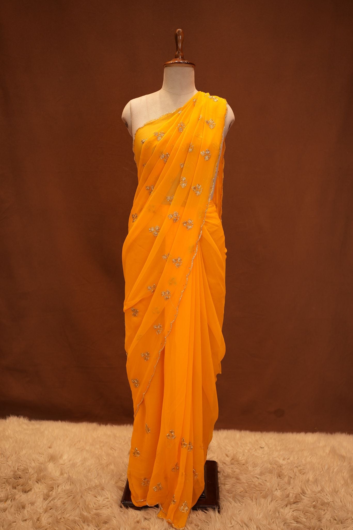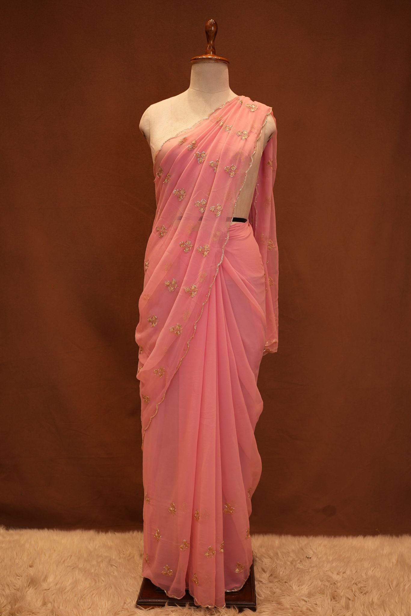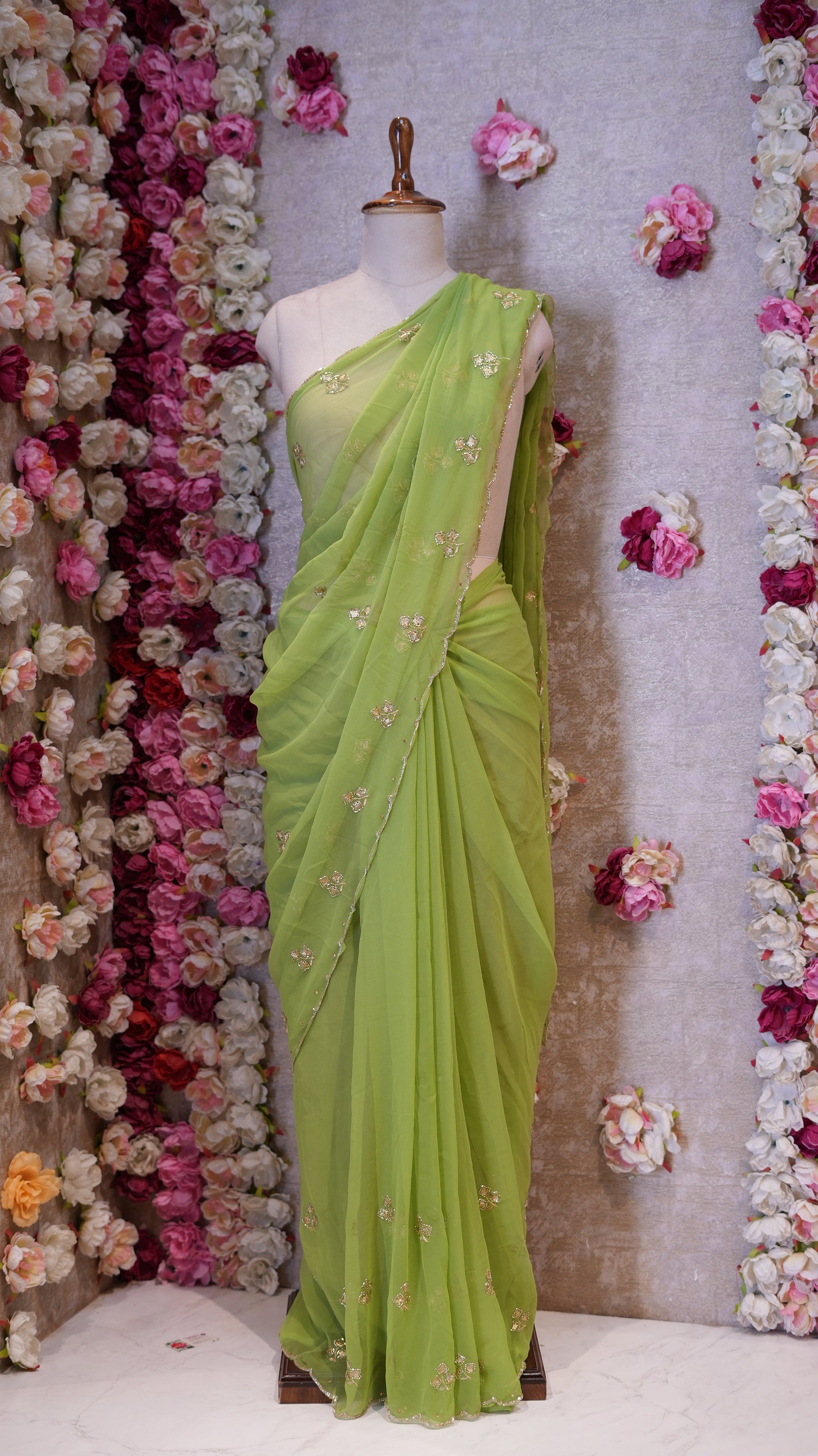 CUTDANA AND AARI WORK SAREE WITH SMALL BUTTI PATTERN AND CUTDANA BORDER (WITH RUNING BLOUSE) ##SR480