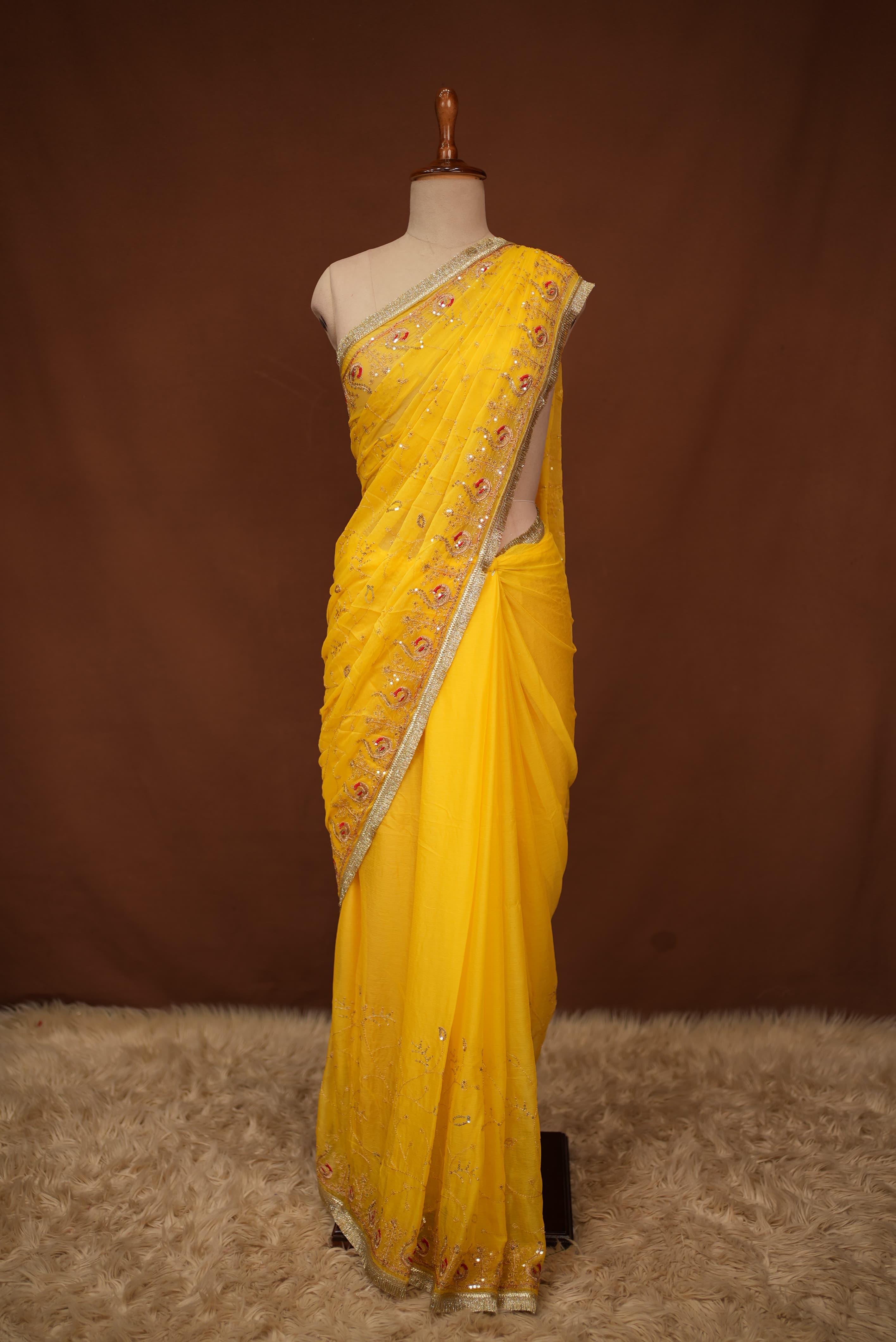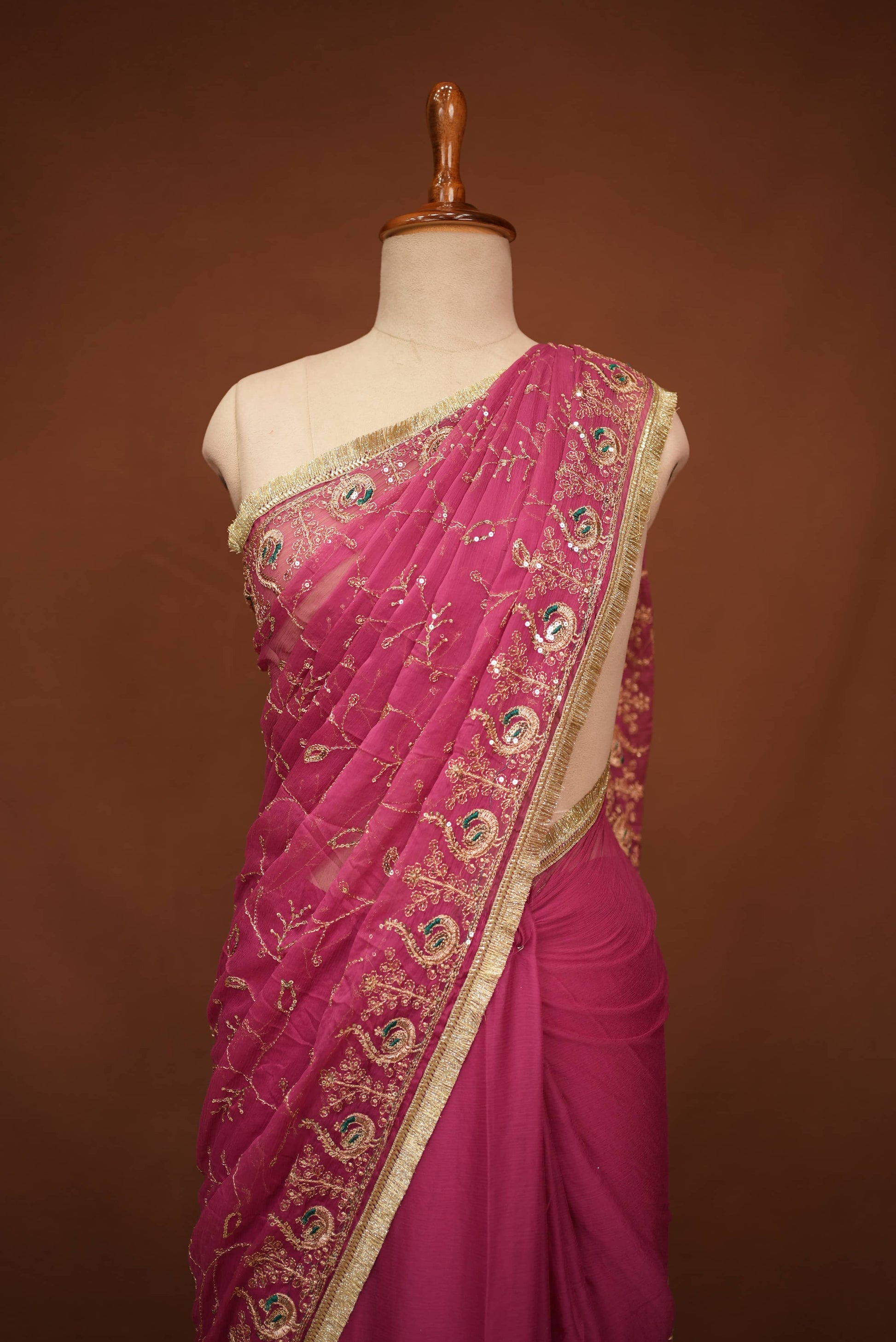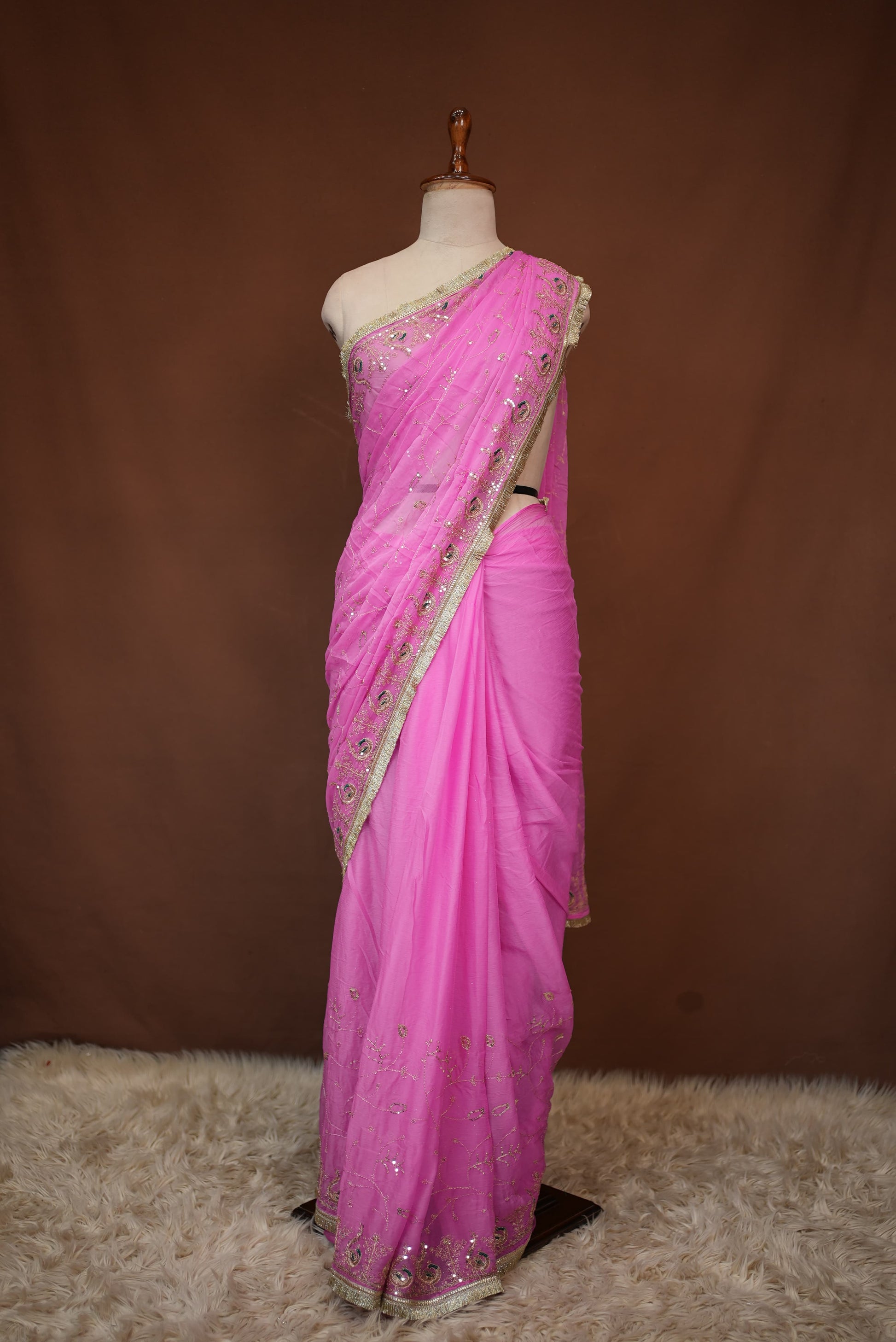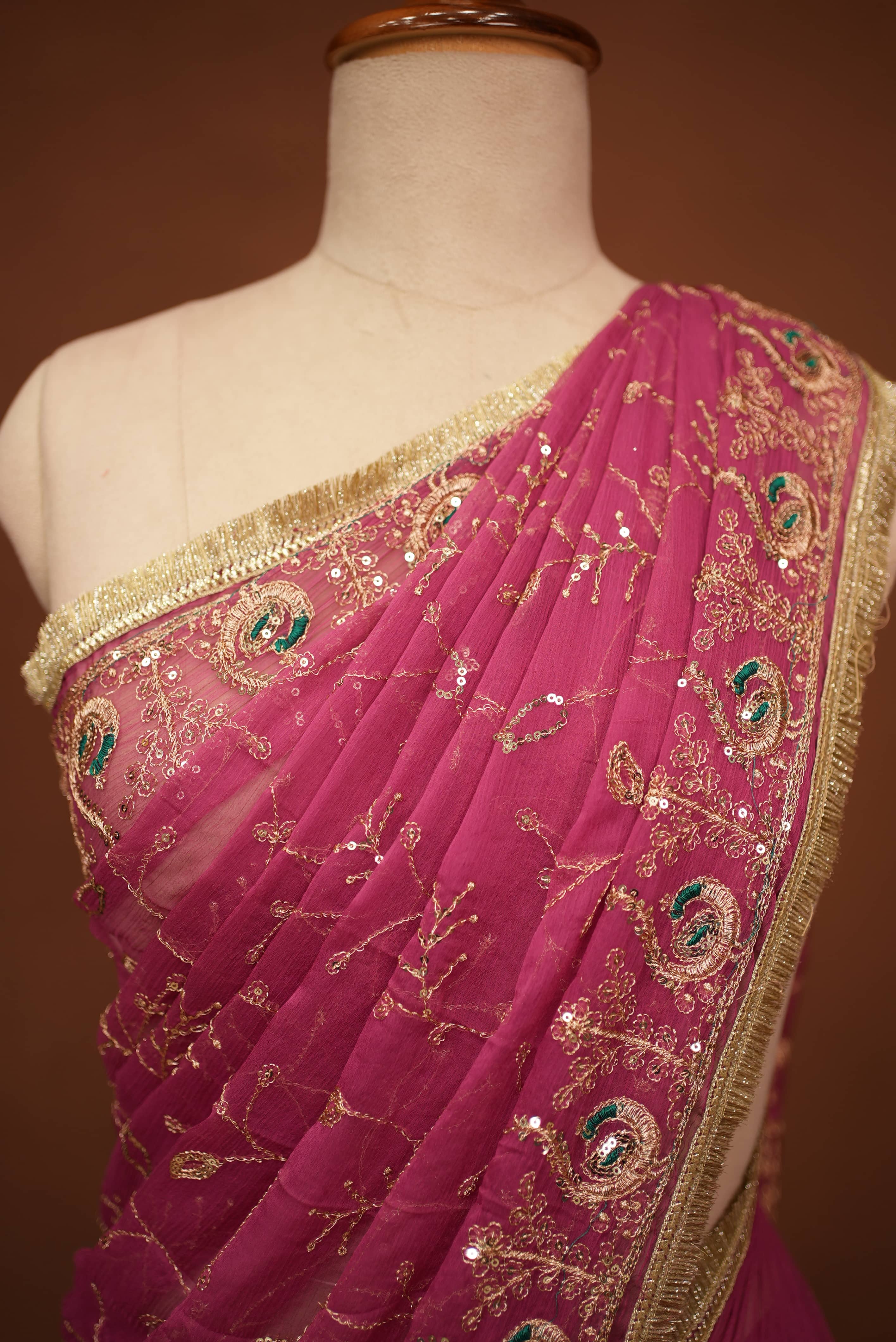 CHIFFON FABRIC DARBARI SAREE WITH AARI TARI WORK AND LASE PATTERN (WITH BLOUSE) ##SR631