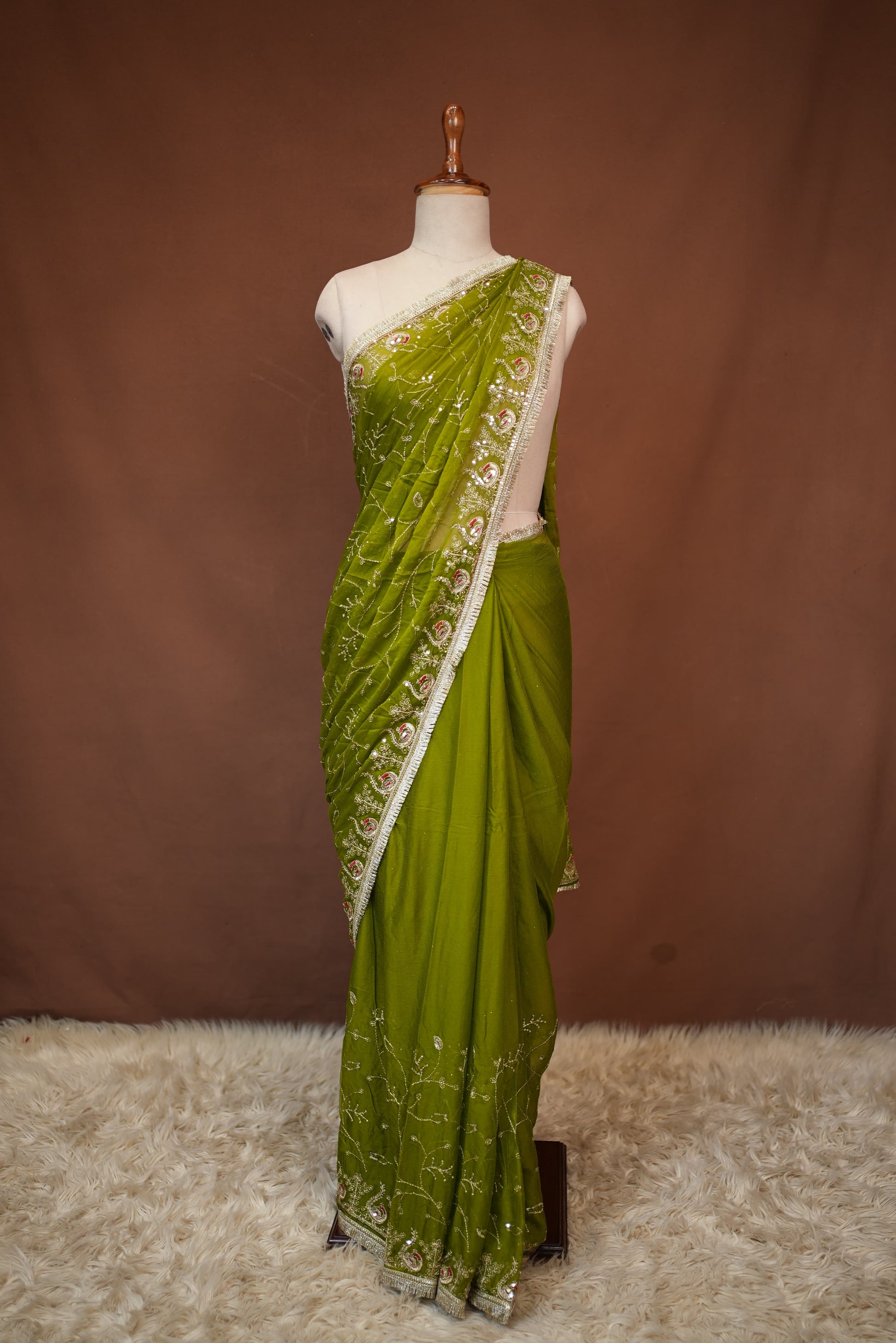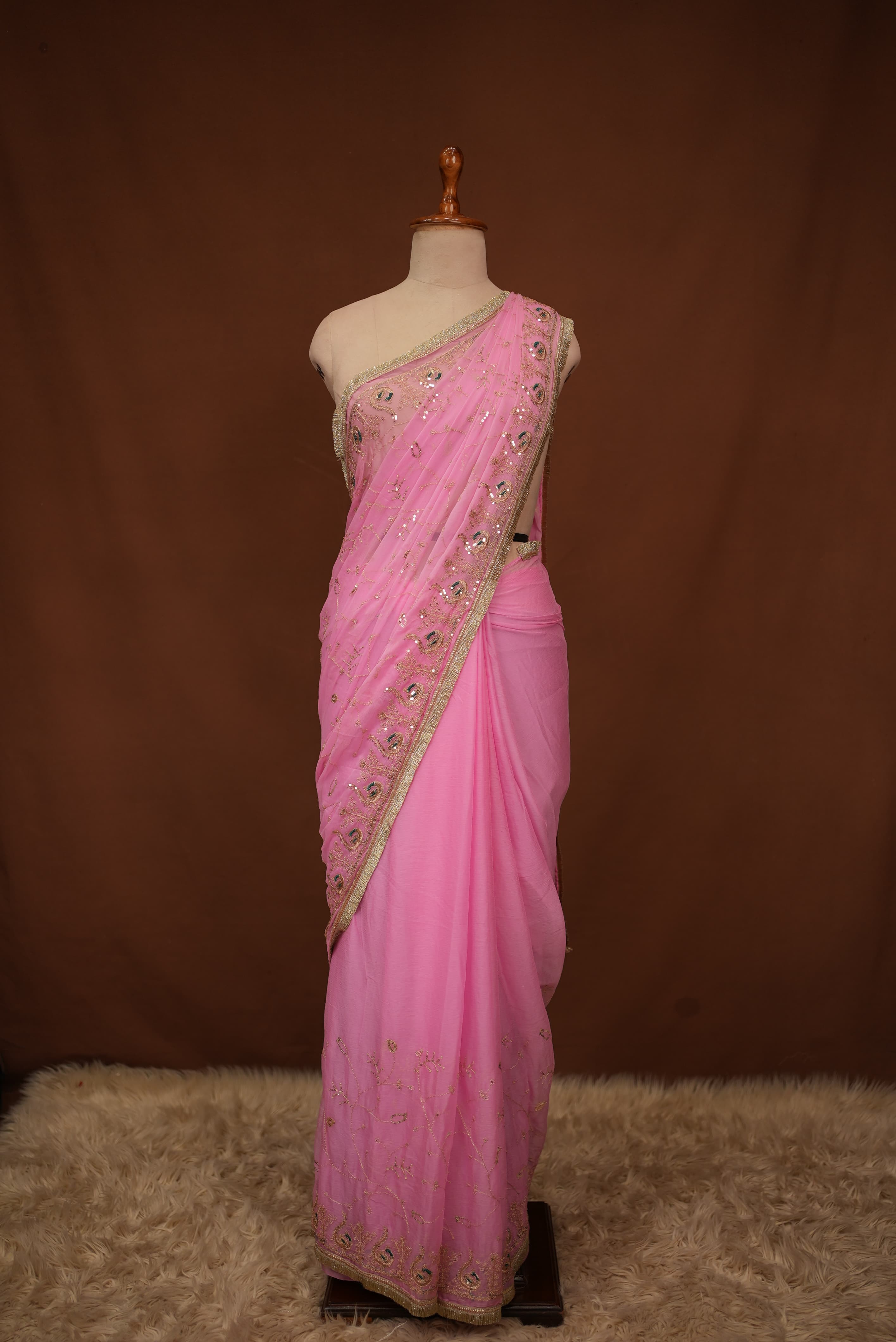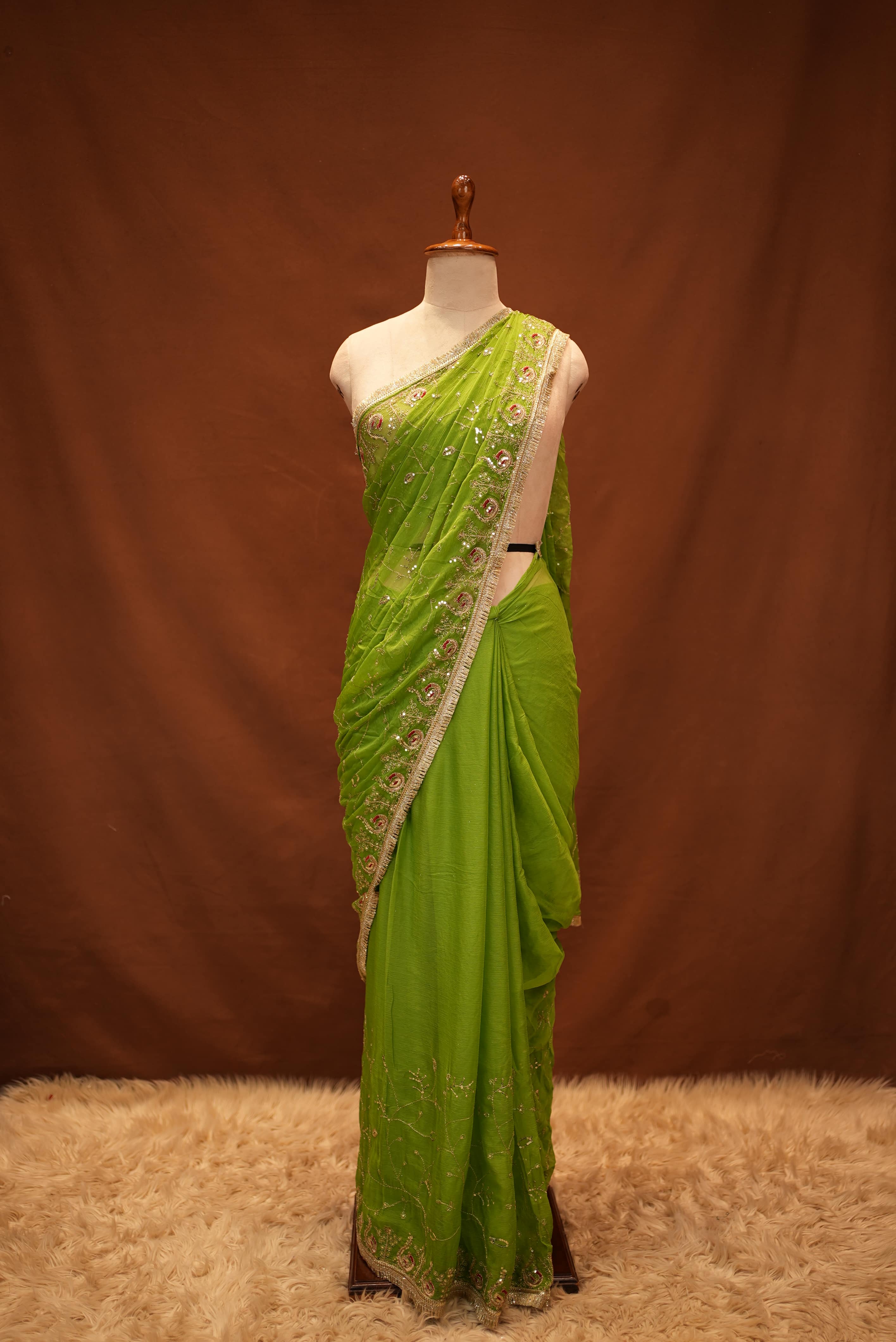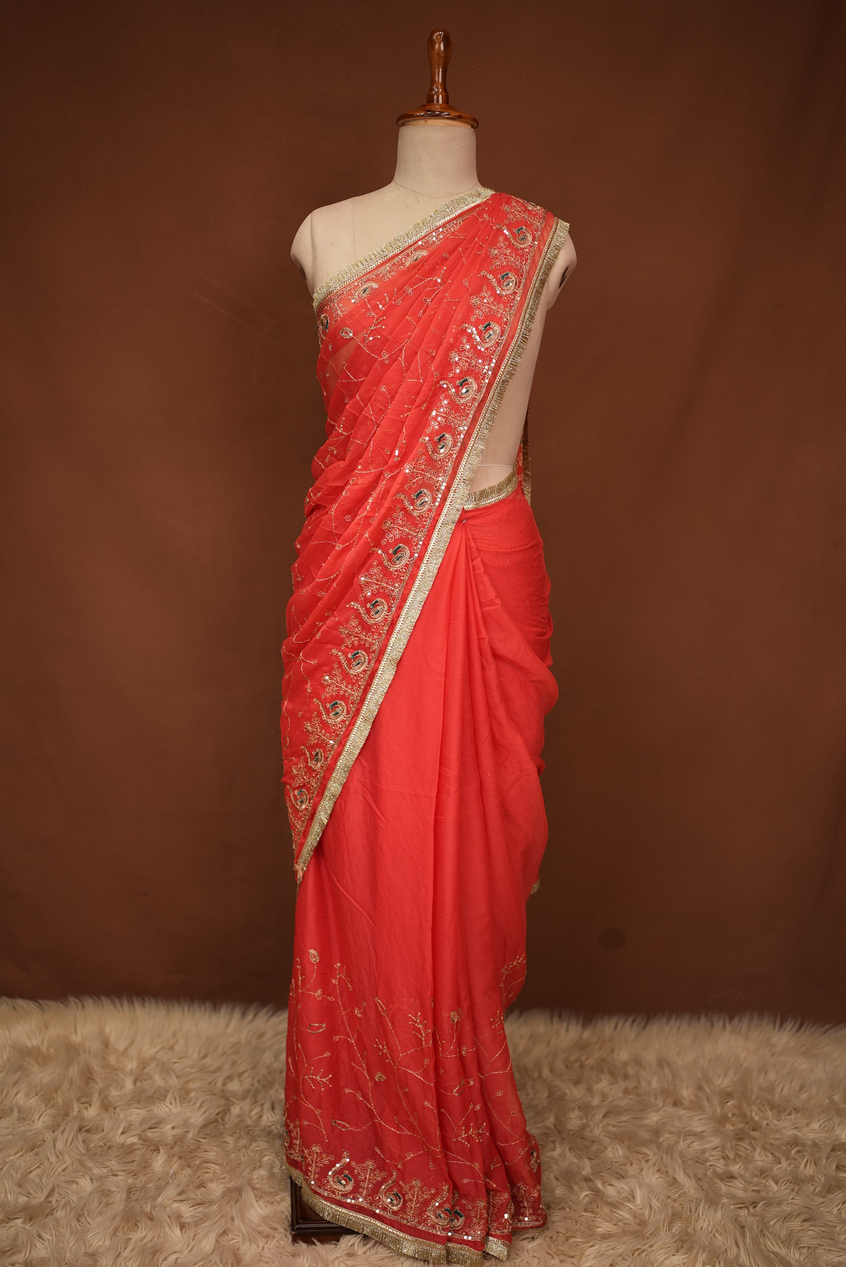 CHIFFON FABRIC DARBARI SAREE WITH AARI TARI WORK AND LASE PATTERN (WITH BLOUSE) ##SR631