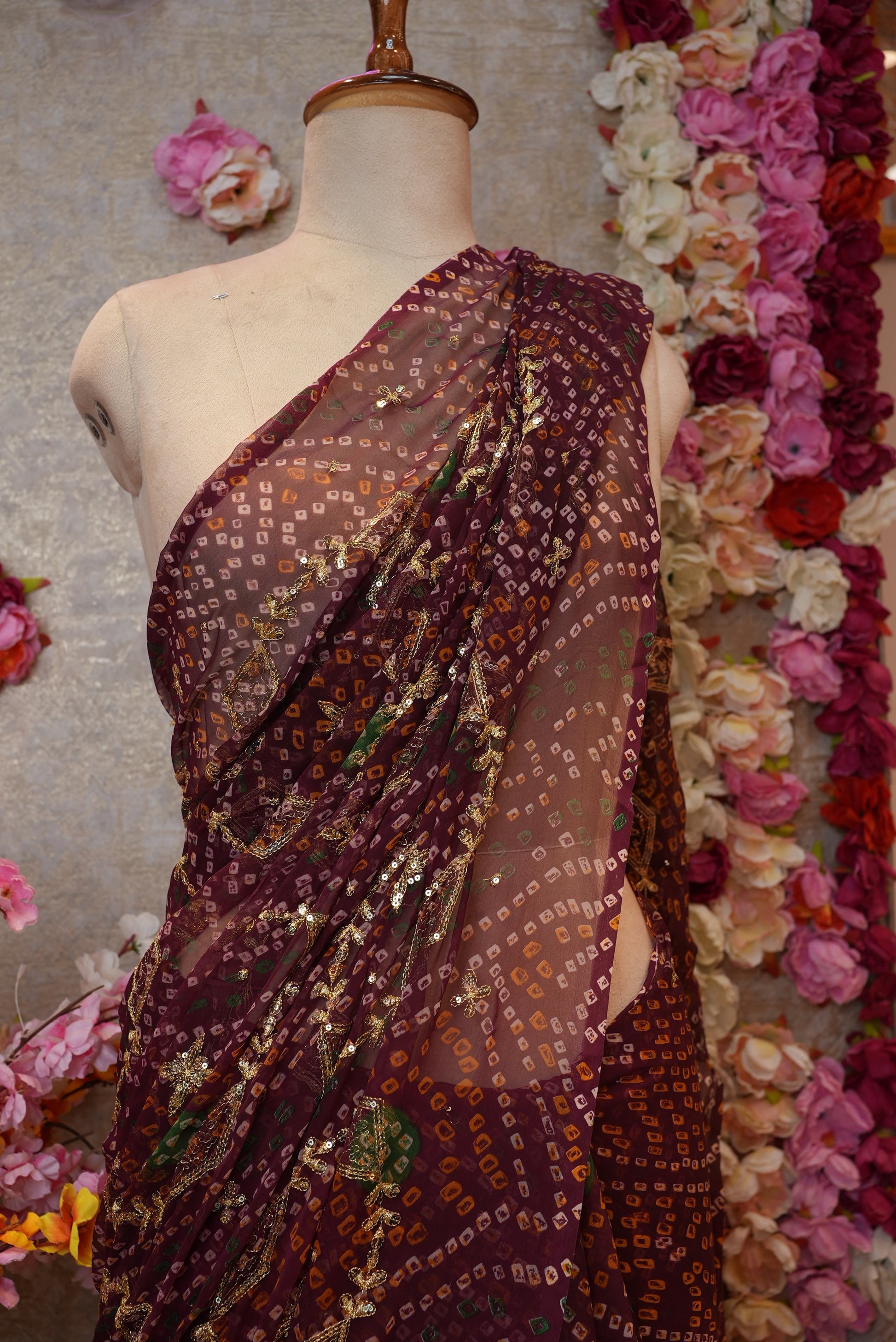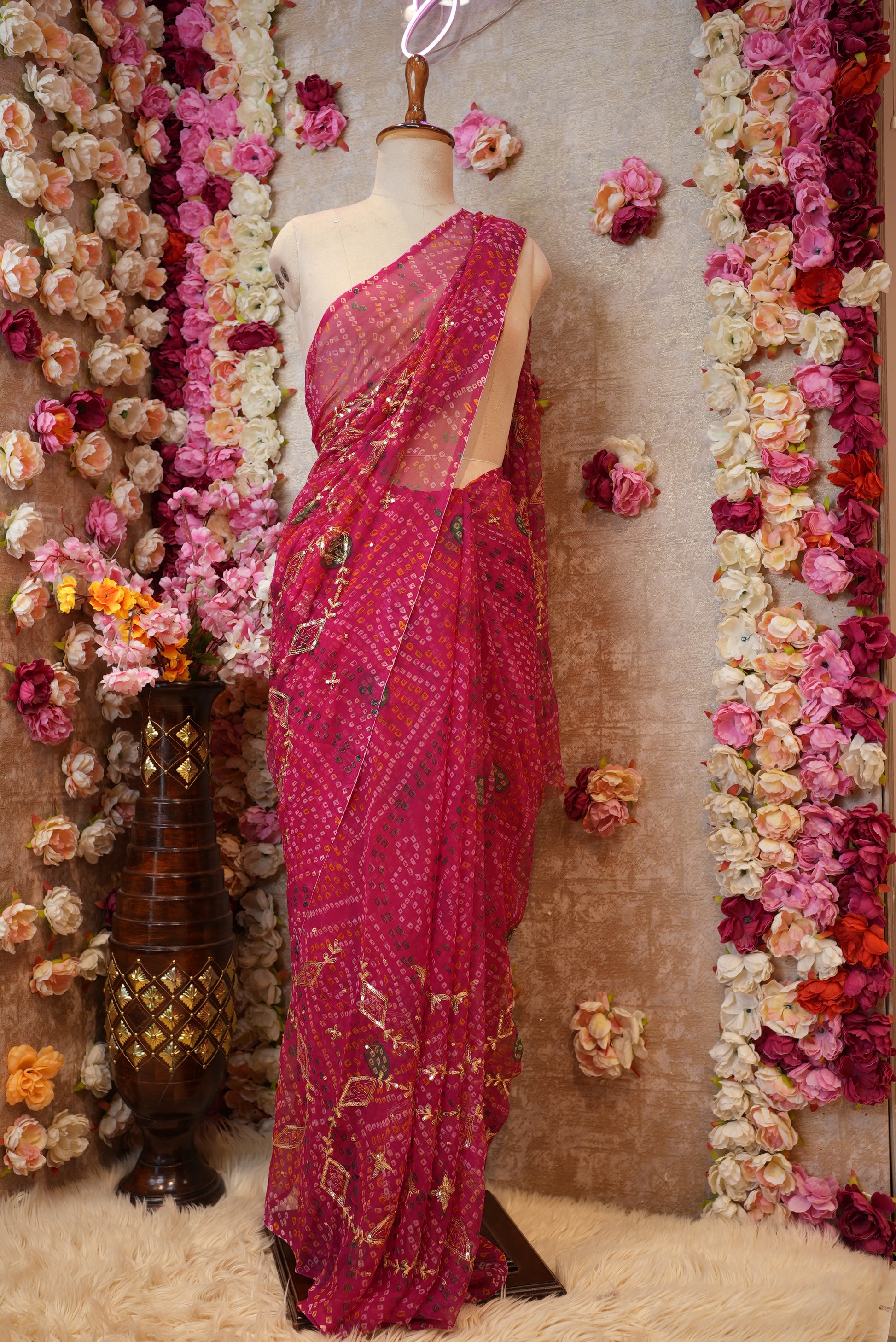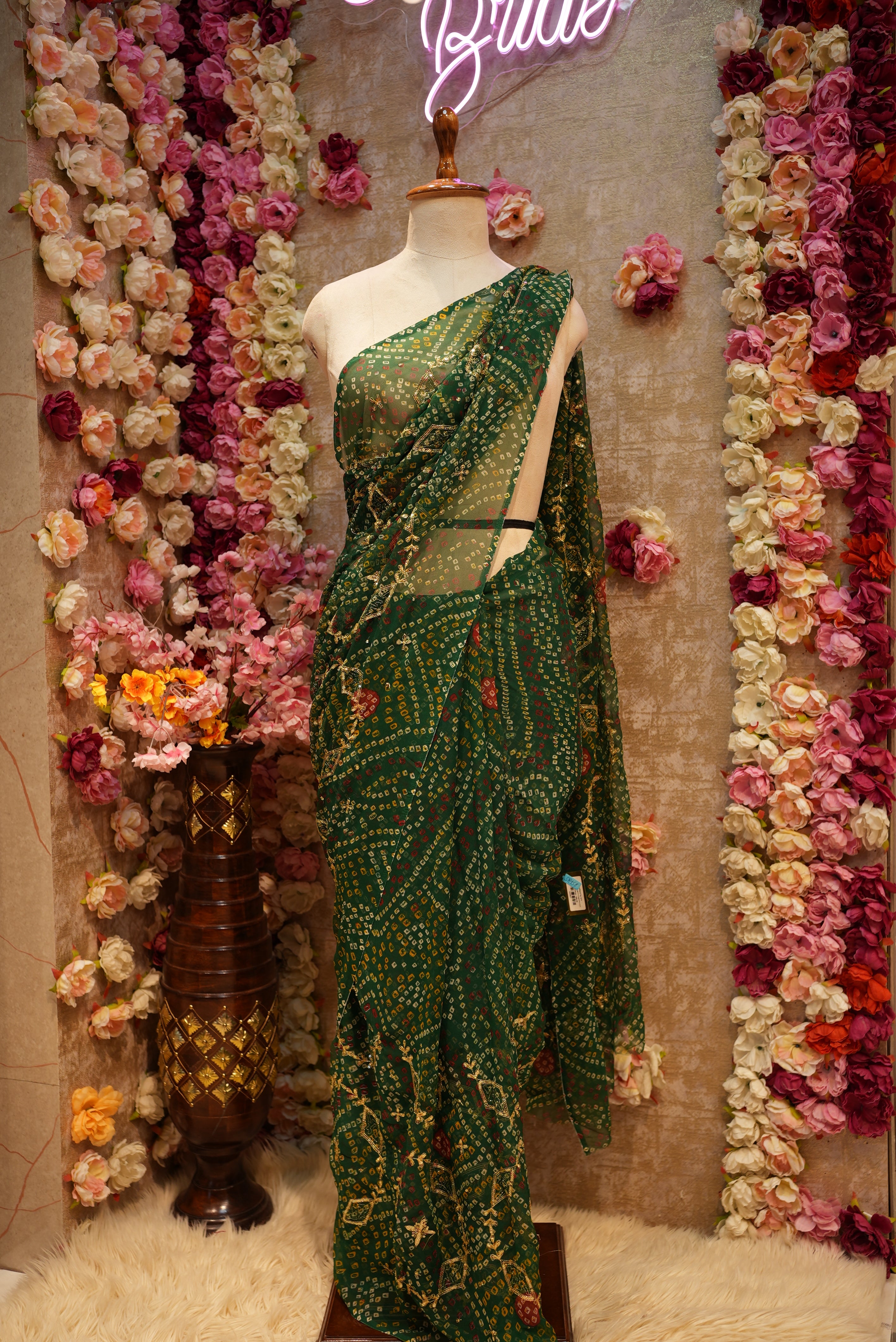 DARBARI SAREE WITH BANDHANI DESIGN & AARI TARI HEAVY JAAL PATTERN (WITHOUT BLOUSE) ##SR458