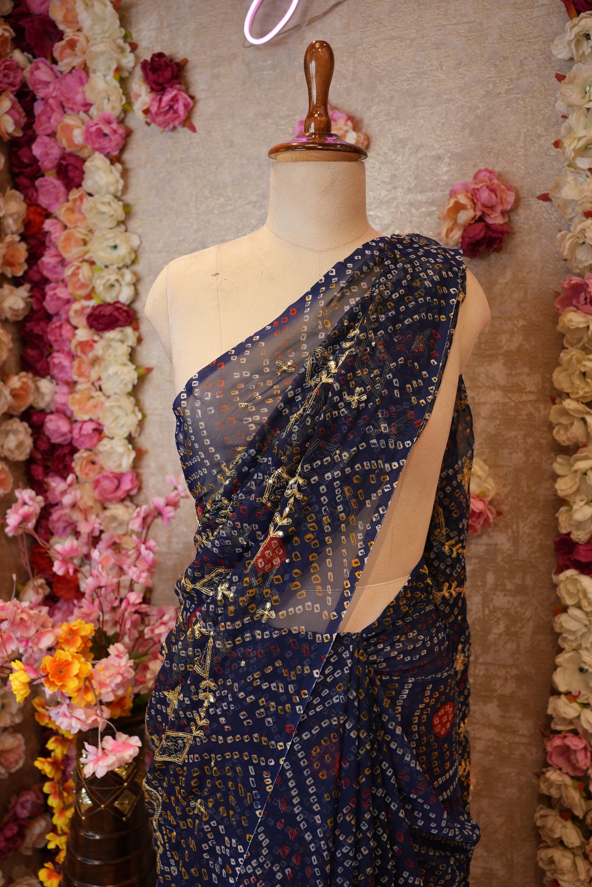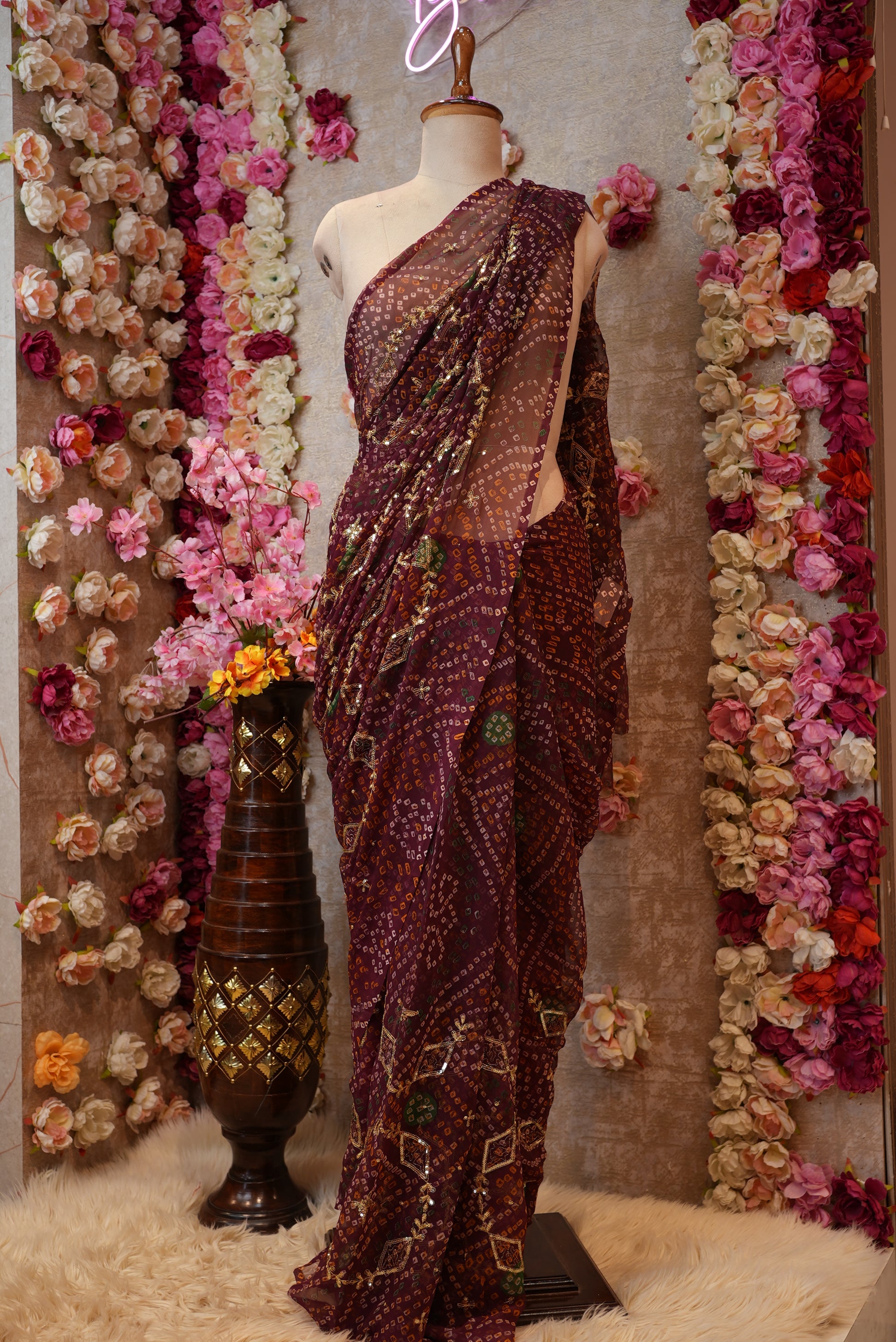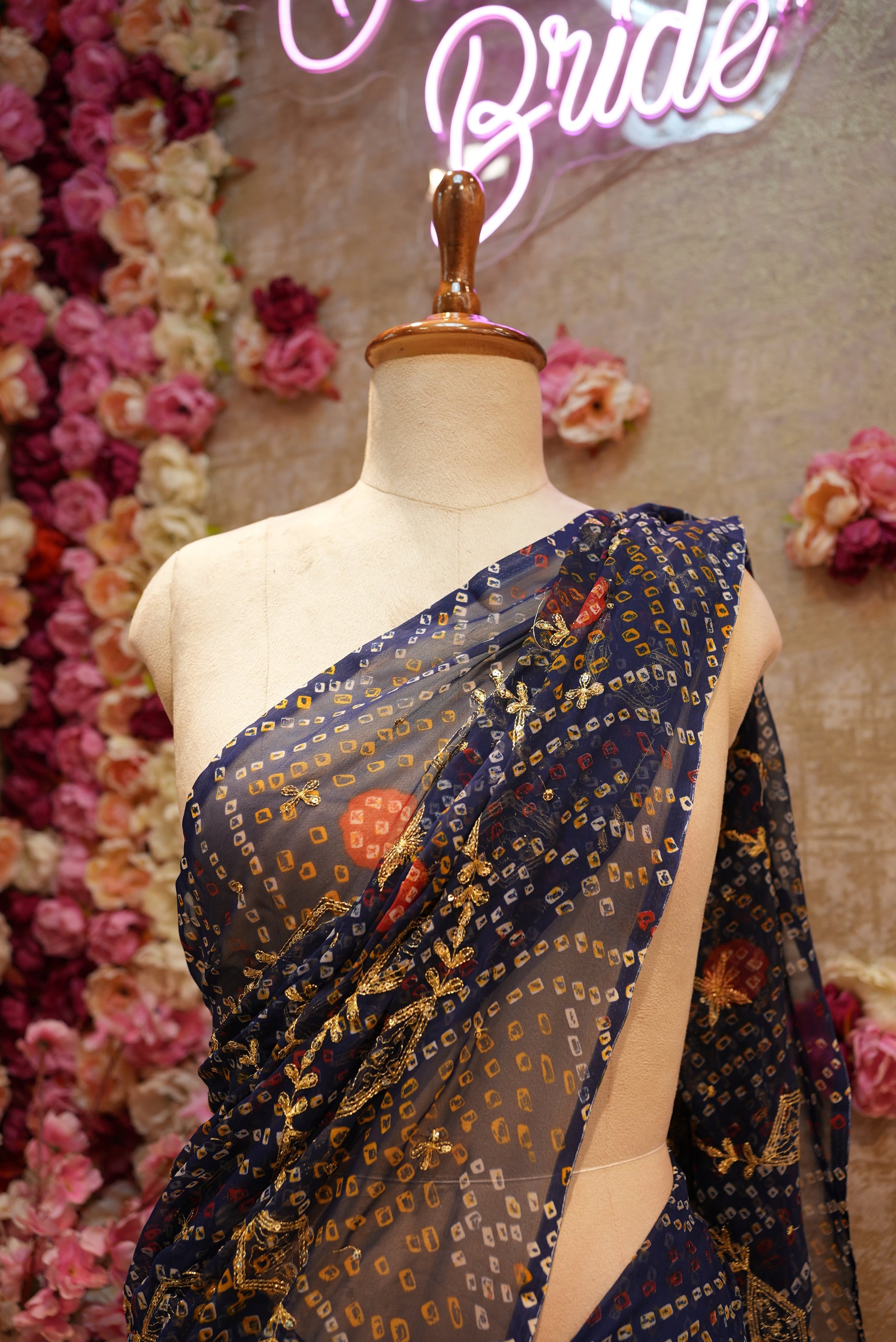 DARBARI SAREE WITH BANDHANI DESIGN & AARI TARI HEAVY JAAL PATTERN (WITHOUT BLOUSE) ##SR458