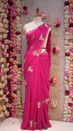 FIGURE PATTERN SAREE WITH SEQUENCE & CUTDANA WORK ON ROYAL GEORGETTE FABRIC (WITH BLOUSE) ##SR610