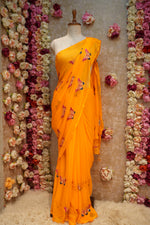 Elevate your ethnic wardrobe with this elegant georgette saree, beautifully adorned with multi sequence butterfly butta work. Crafted from lightweight and flowy georgette fabric, this saree offers a graceful drape and all-day comfort. The intricate butterfly motifs enhanced with shimmering sequences add a touch of glamour and charm, making it perfect for festive occasions, parties, and special events. Paired with a matching blouse piece, this saree blends contemporary style with traditional elegance for a stunning look.
