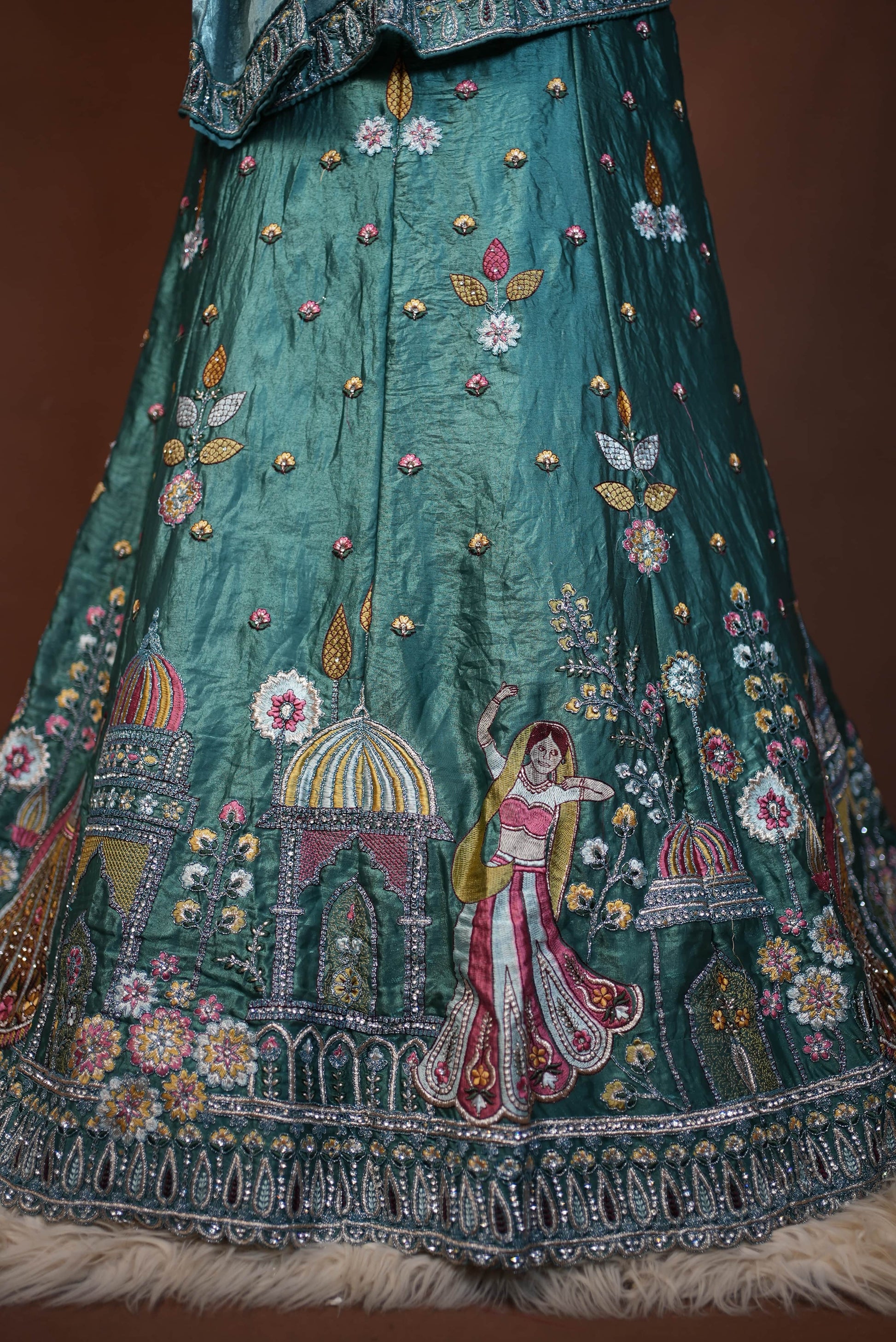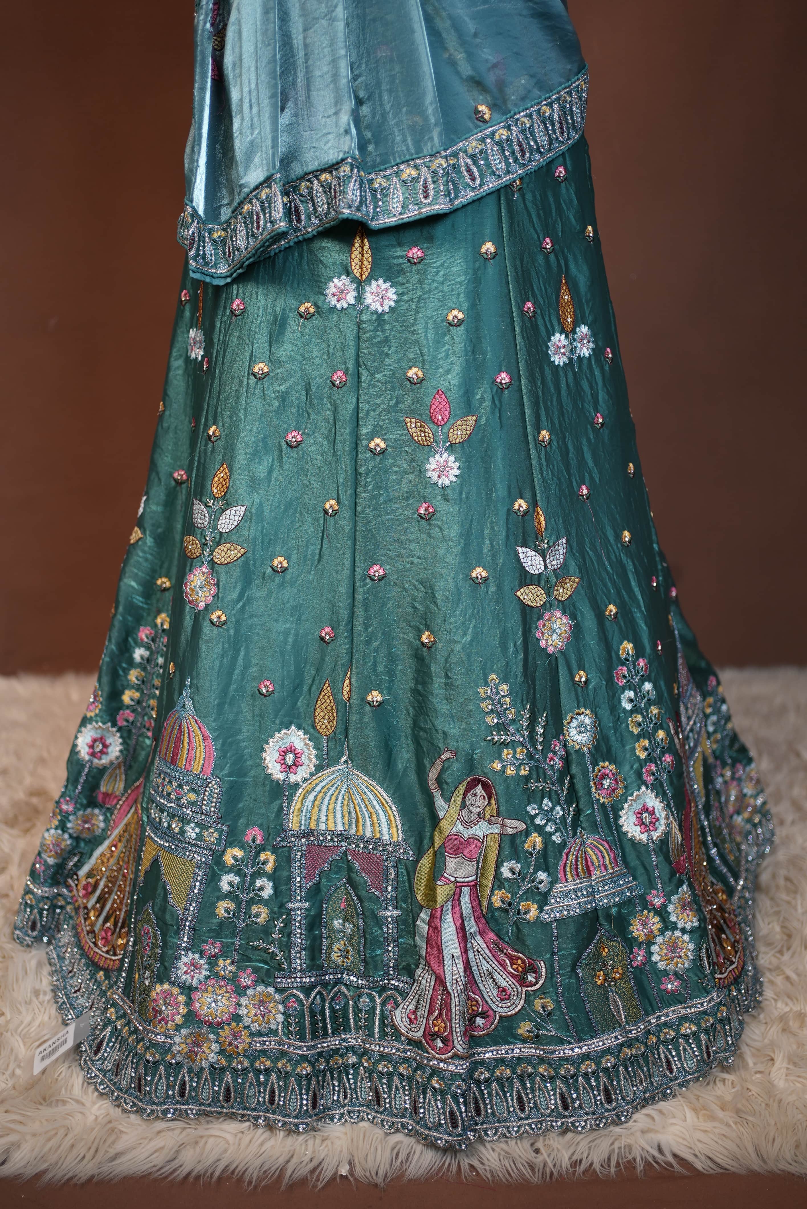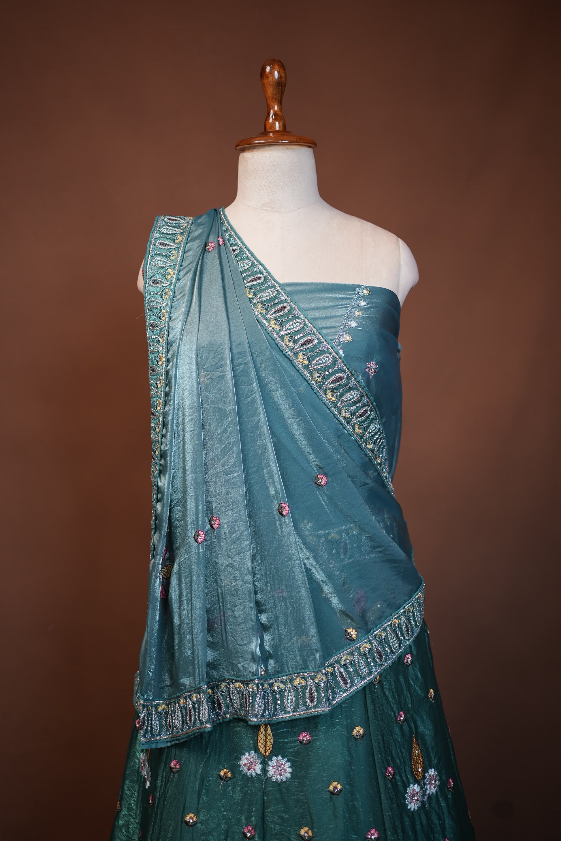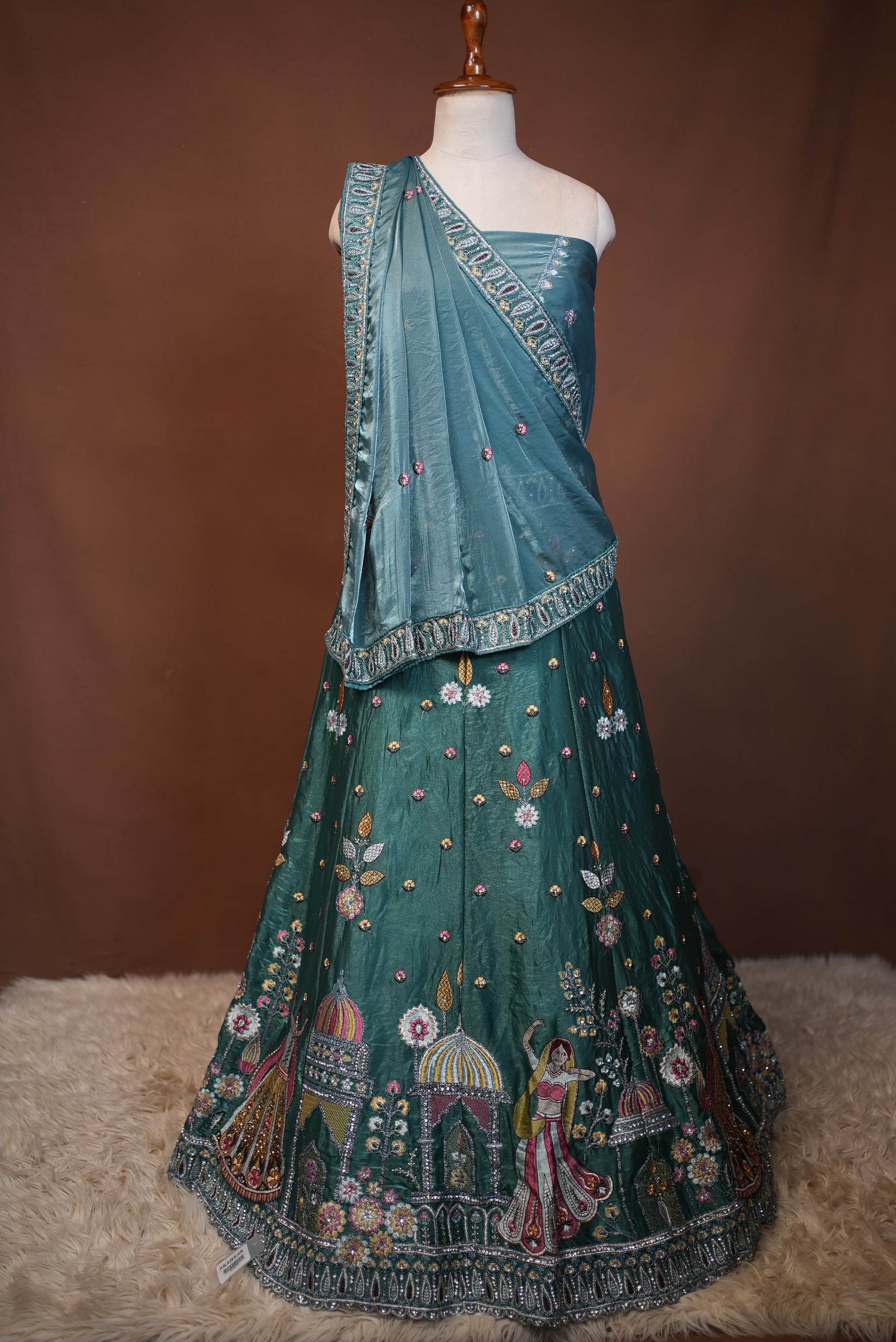 FENDI FABRIC LEHENGA WITH DARBARI AND SEQUENCE WORK WITH HEAVY DUPATTA ##LC053