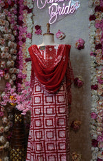 Experience the perfect fusion of tradition and artistry with this navy blue and red Shibori cotton suit. Crafted from soft, breathable cotton, this ensemble showcases exquisite Katha, Zardozi, and Anchor embroidery work, reflecting intricate craftsmanship and timeless elegance. The vibrant Shibori tie-dye pattern adds a touch of contemporary flair while maintaining its ethnic charm. Ideal for festive occasions or elegant daytime wear, this suit fabric set lets you tailor a masterpiece that truly defines your personal style.