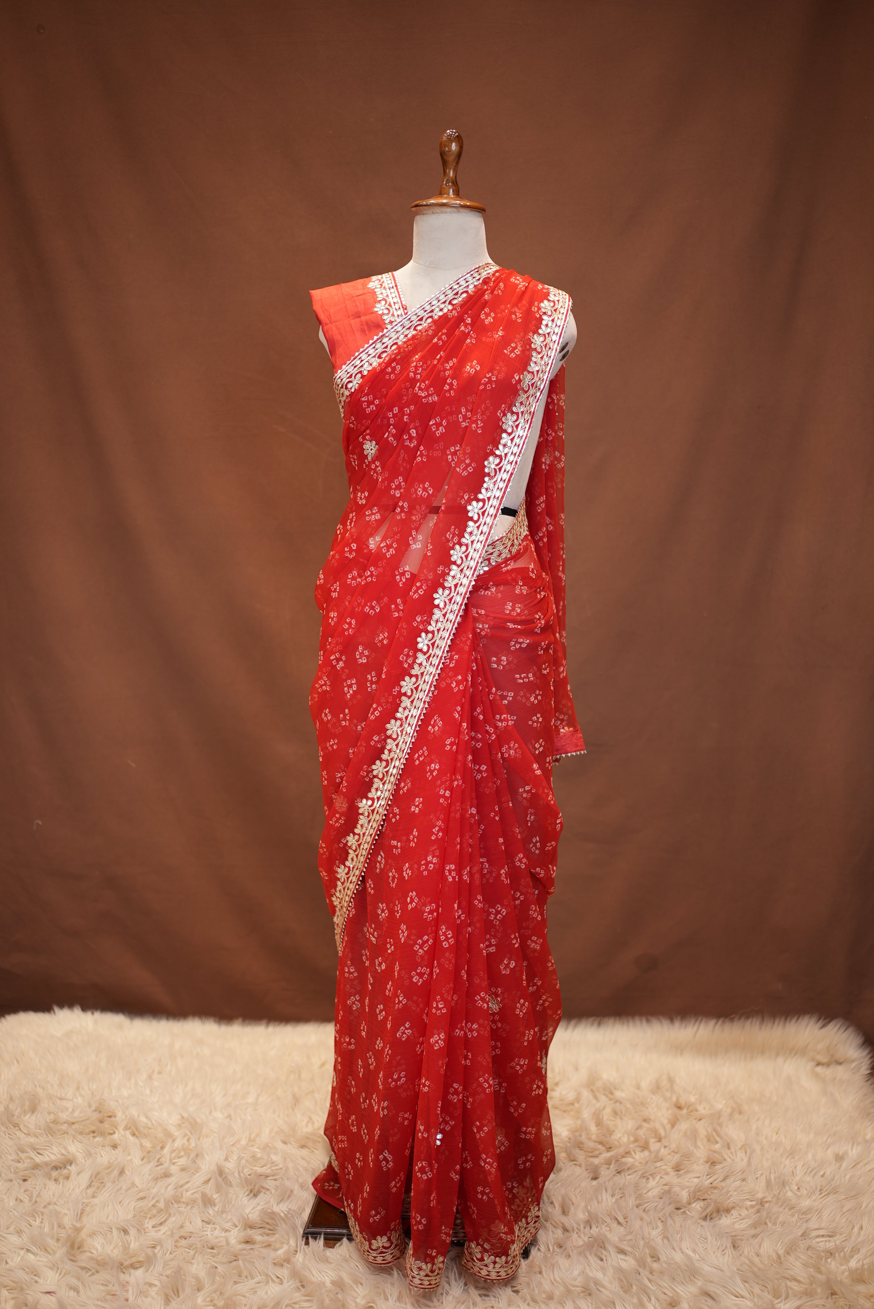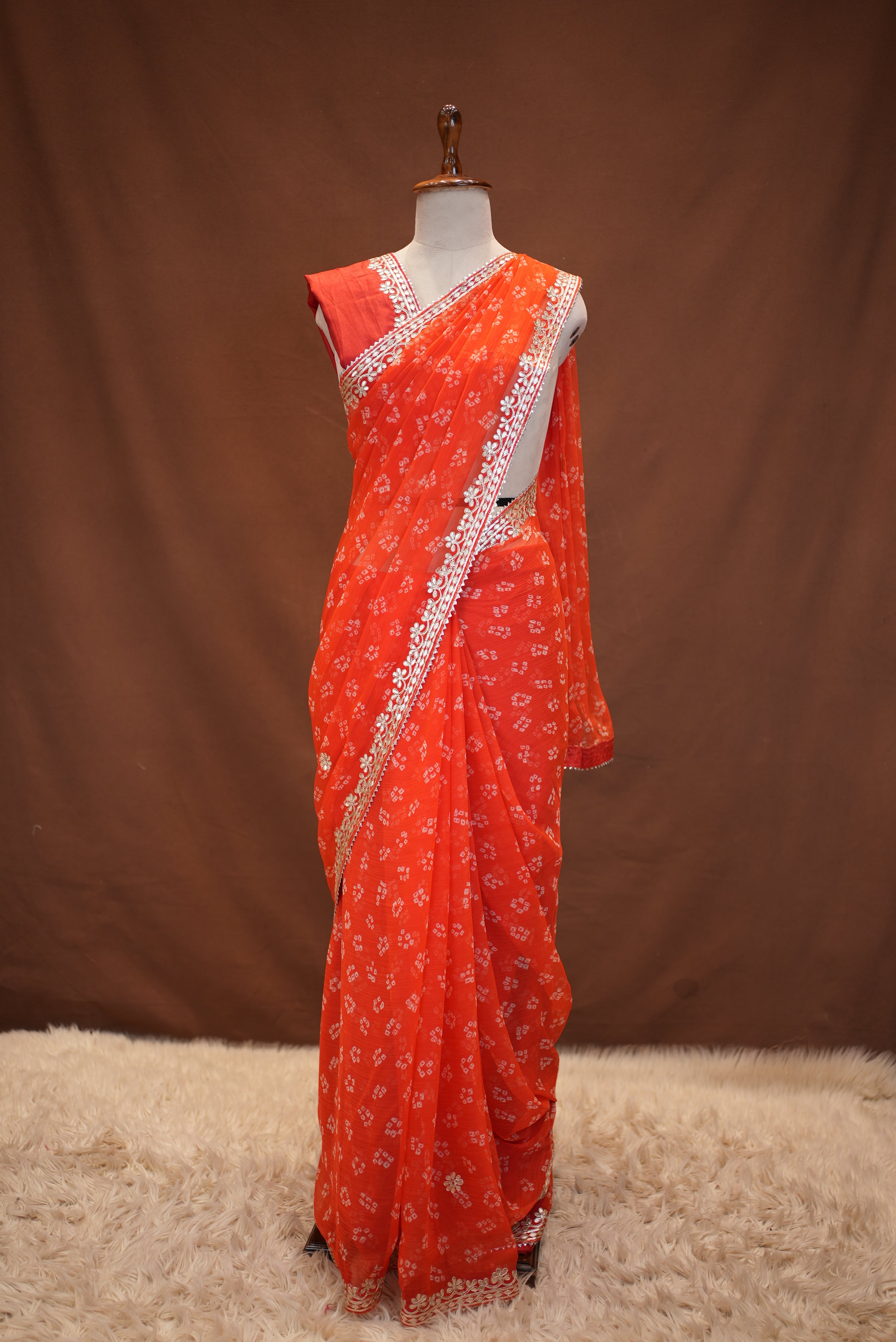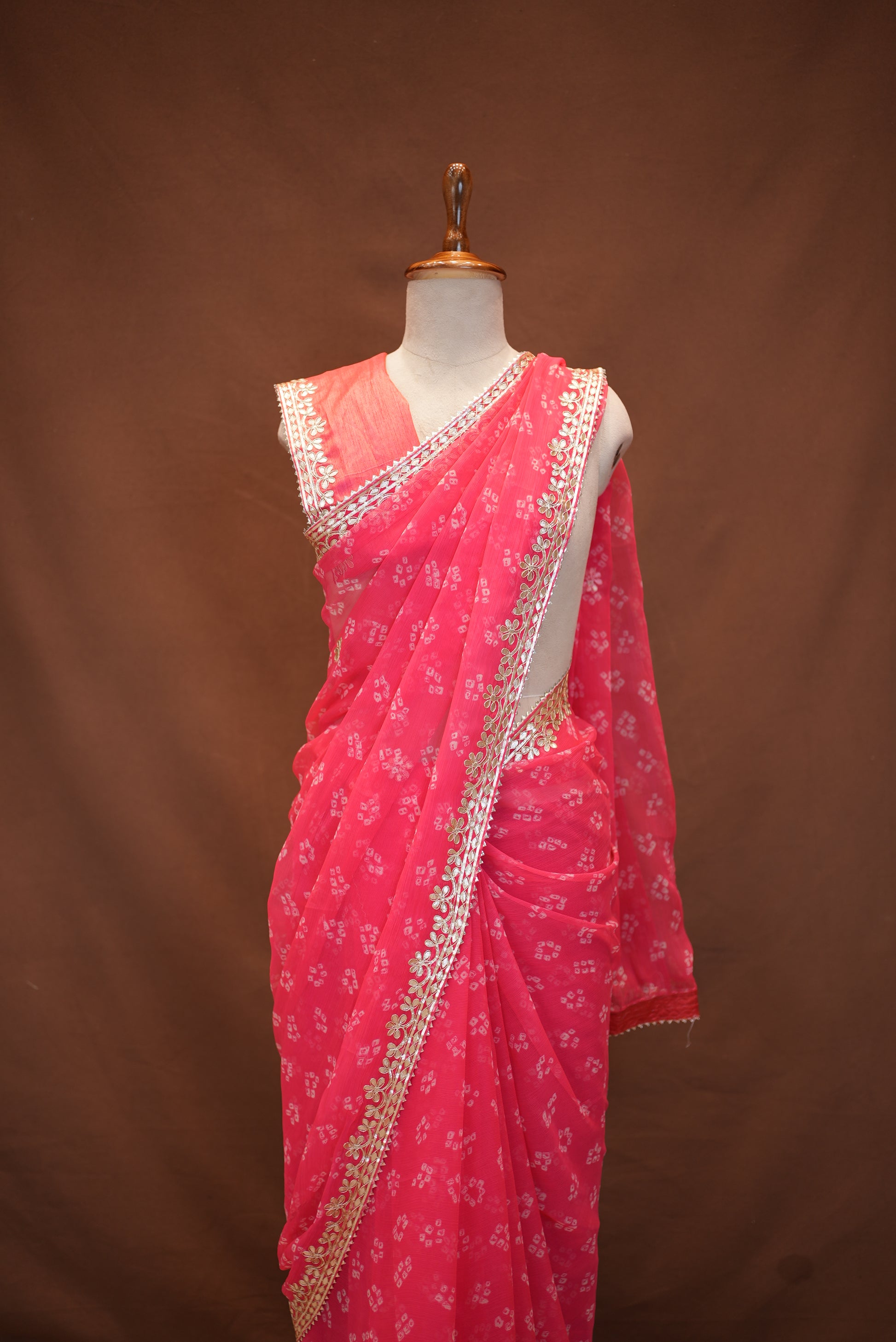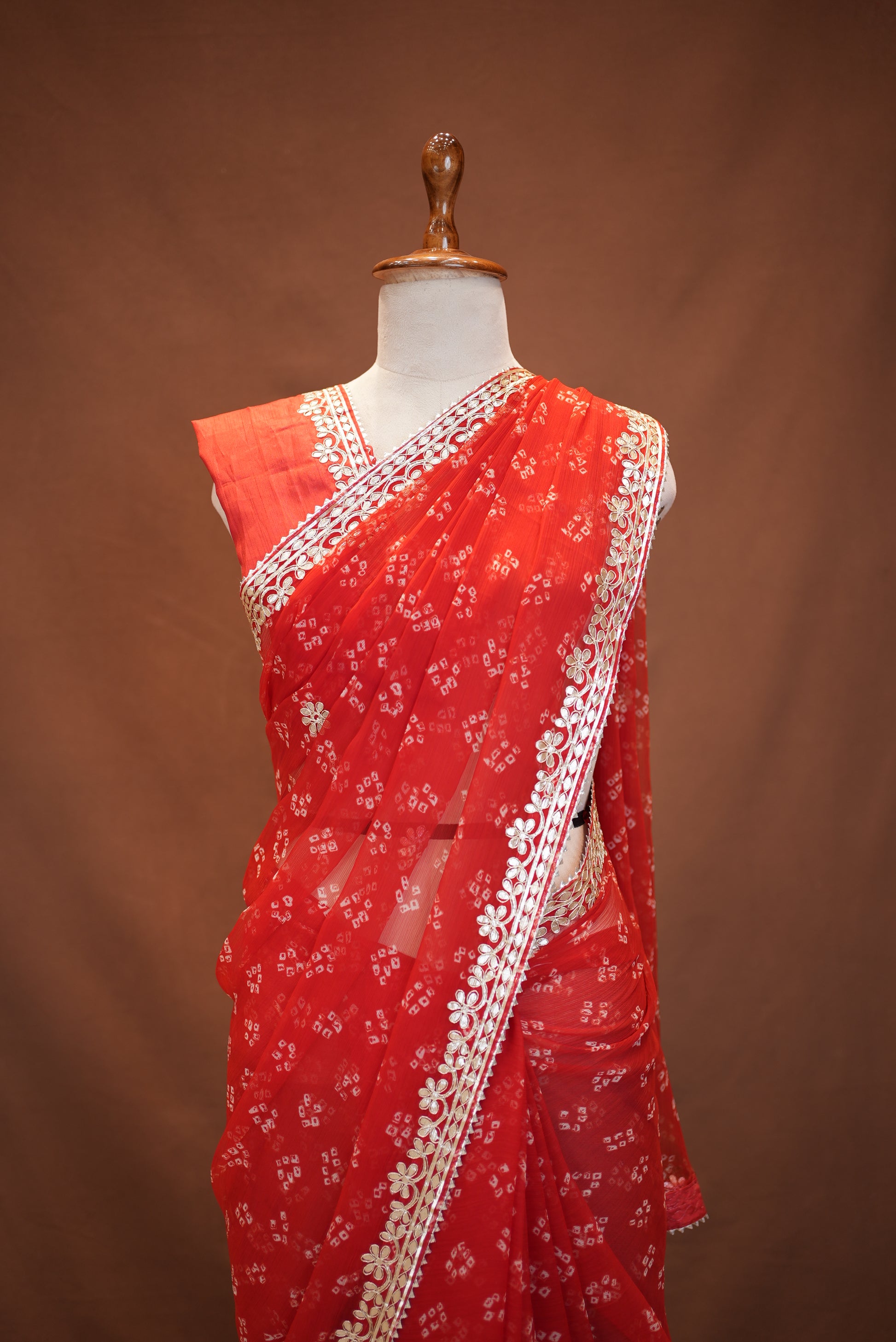 RAJASTHANI BANDHANI SAREE WITH GOTA PATTI WORK (WITH BLOUSE) ##SR626