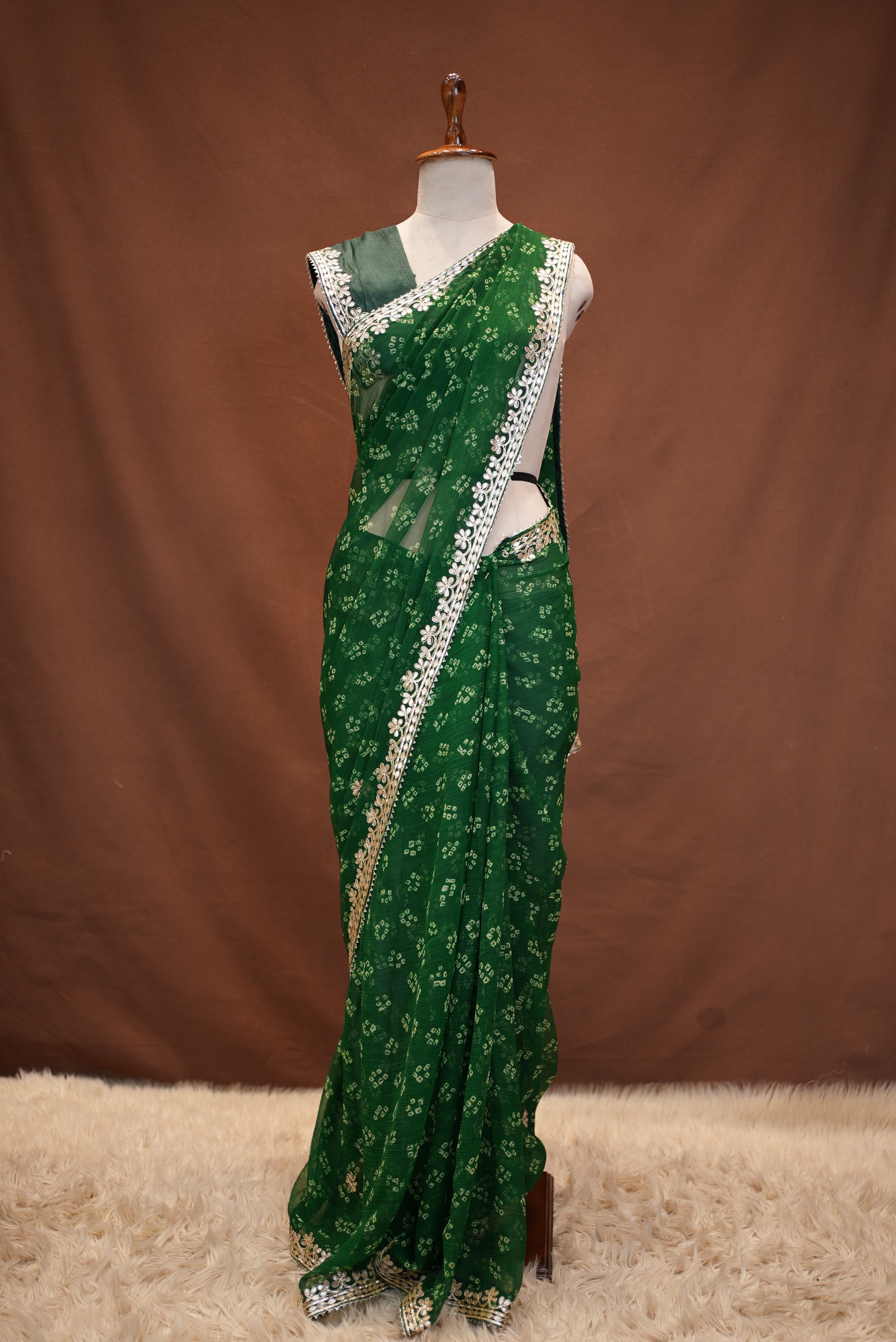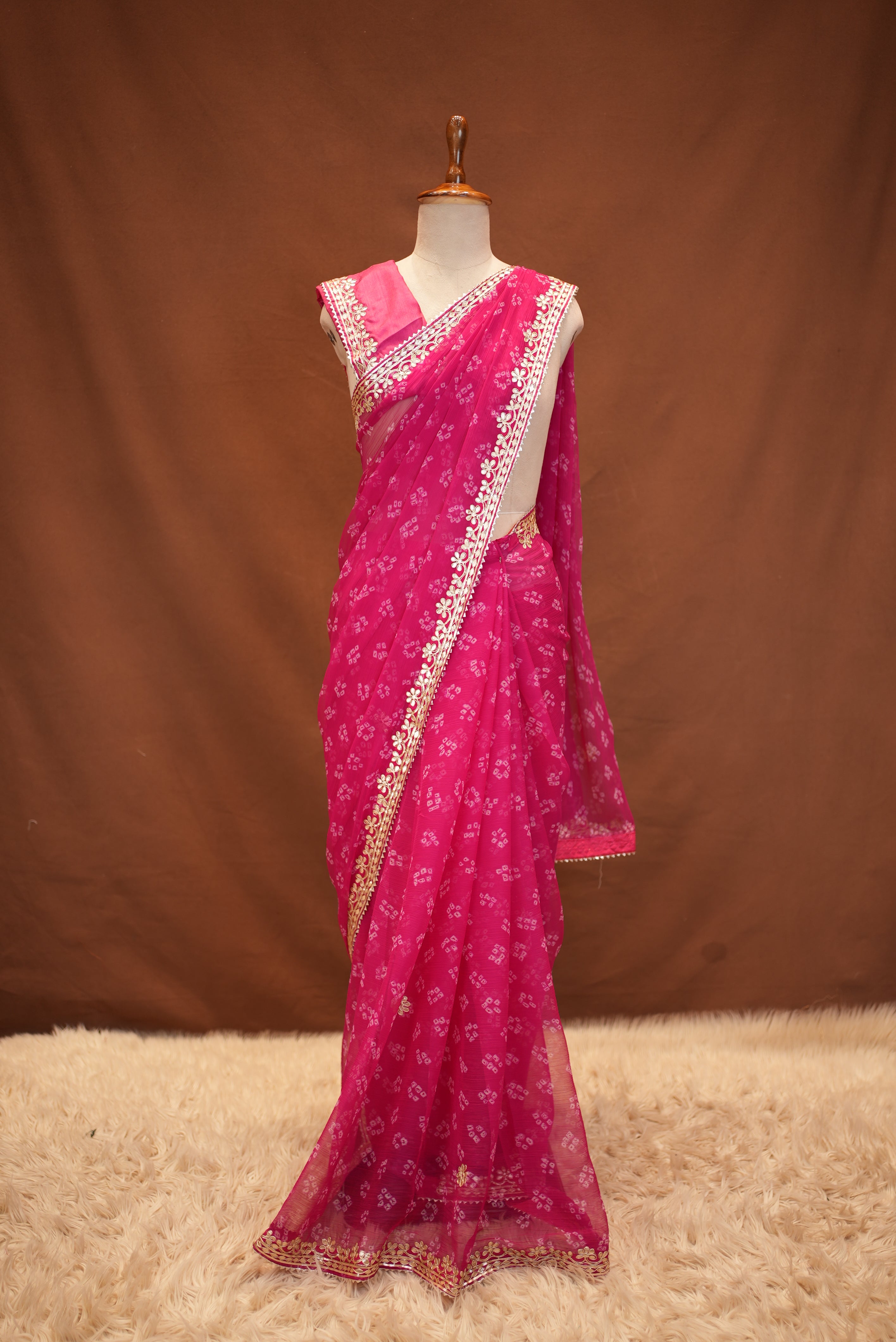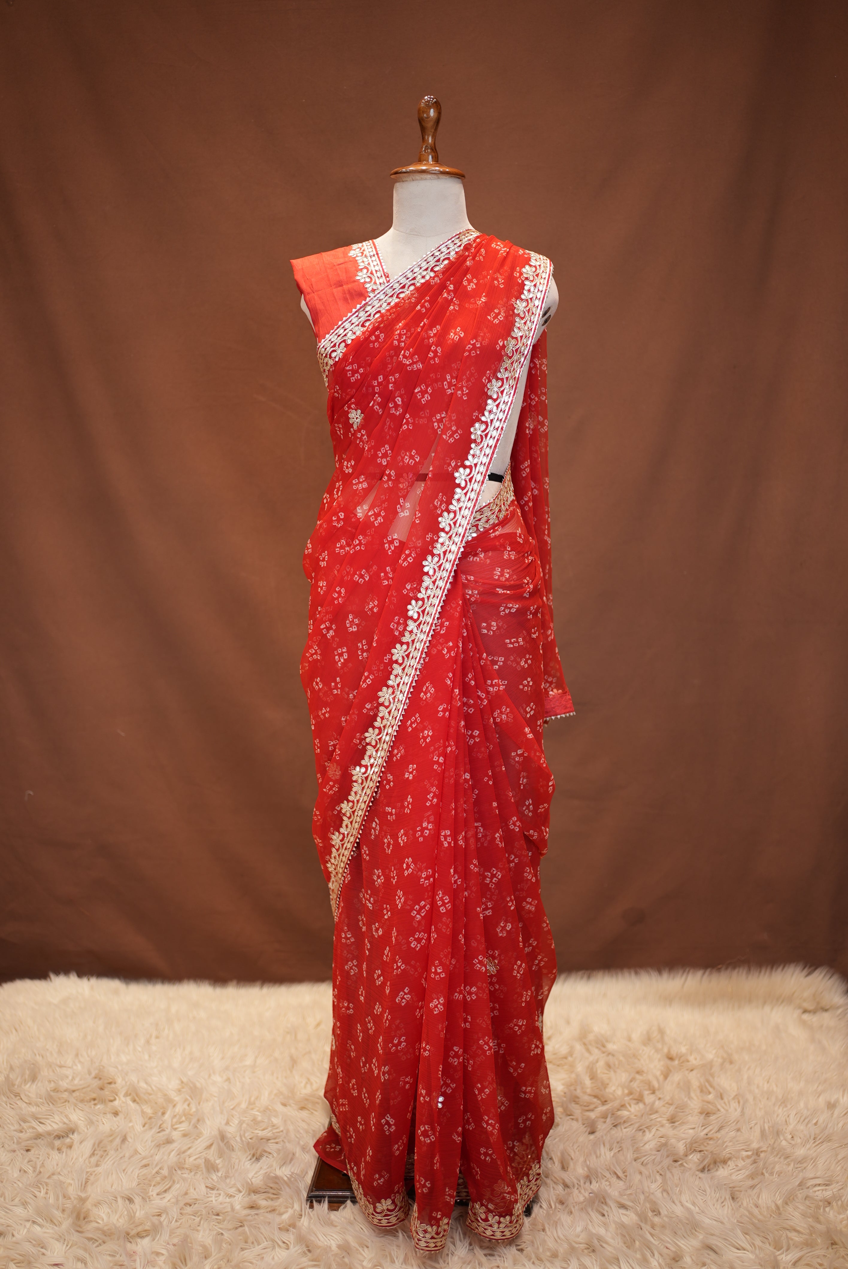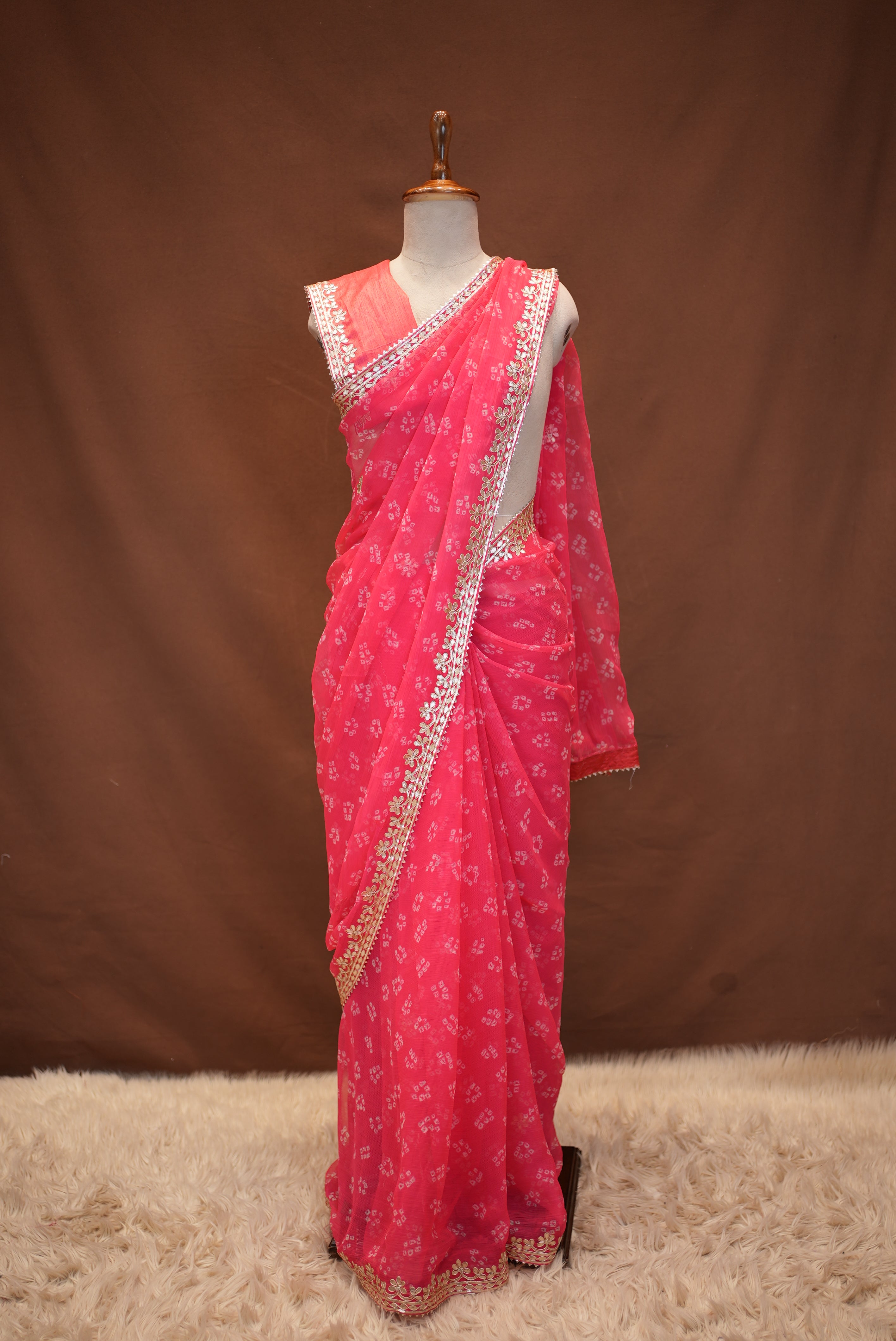 RAJASTHANI BANDHANI SAREE WITH GOTA PATTI WORK (WITH BLOUSE) ##SR626