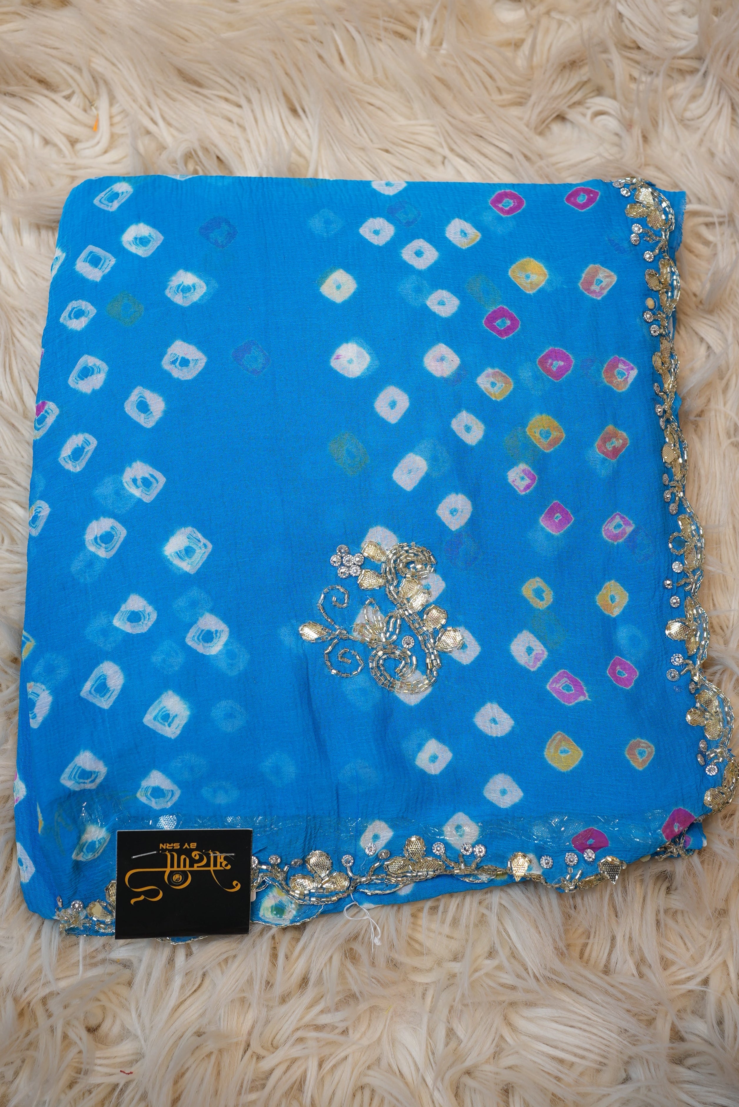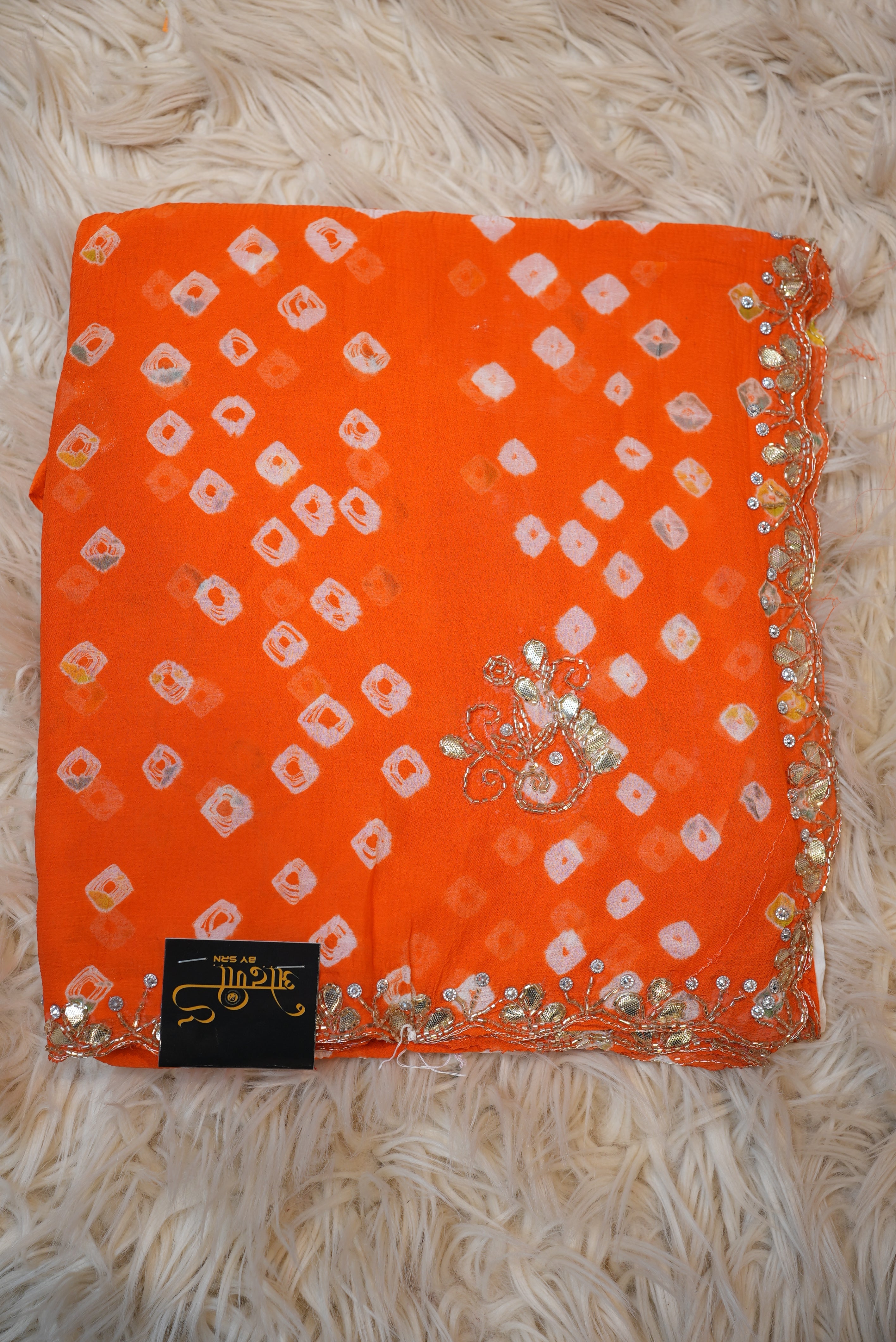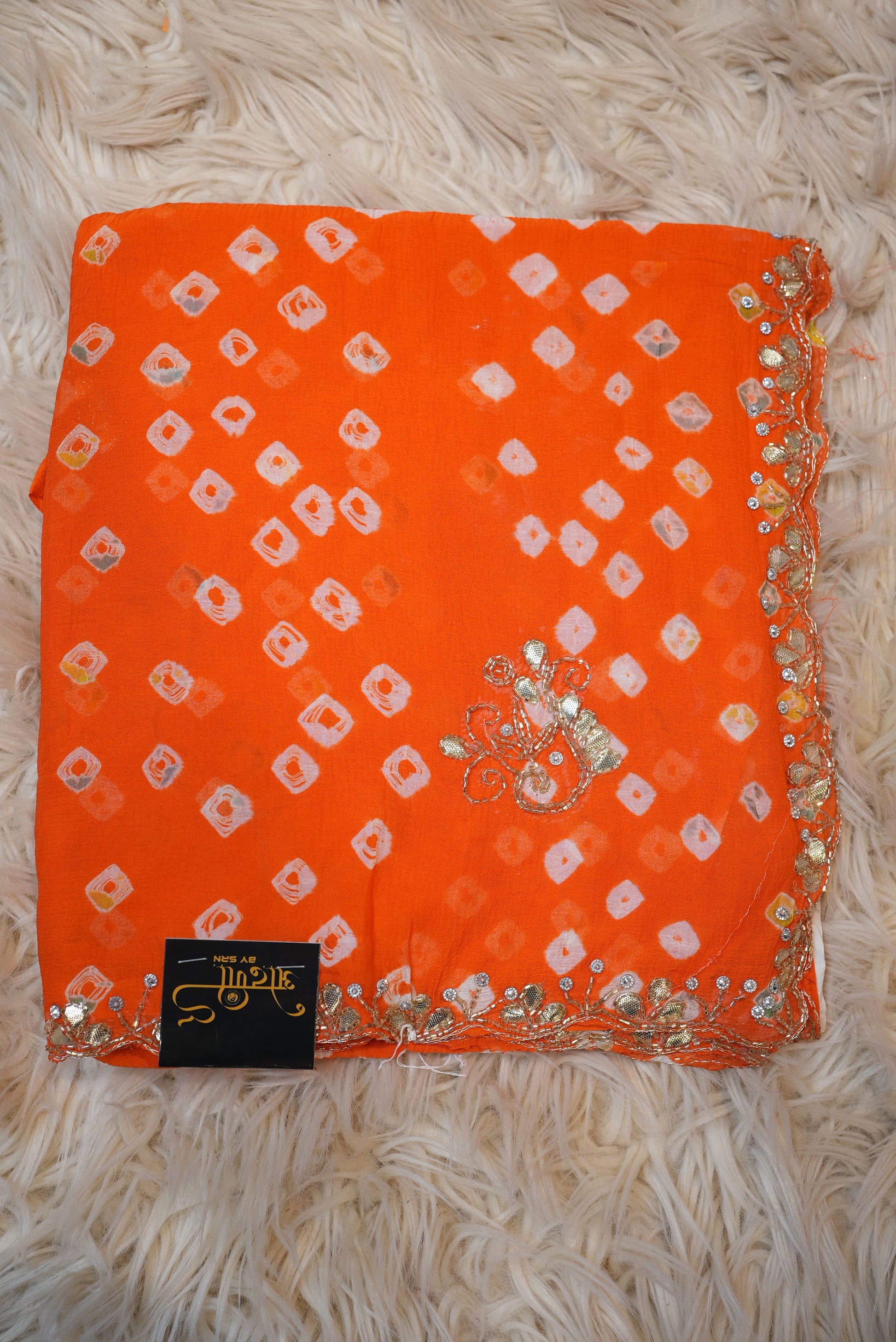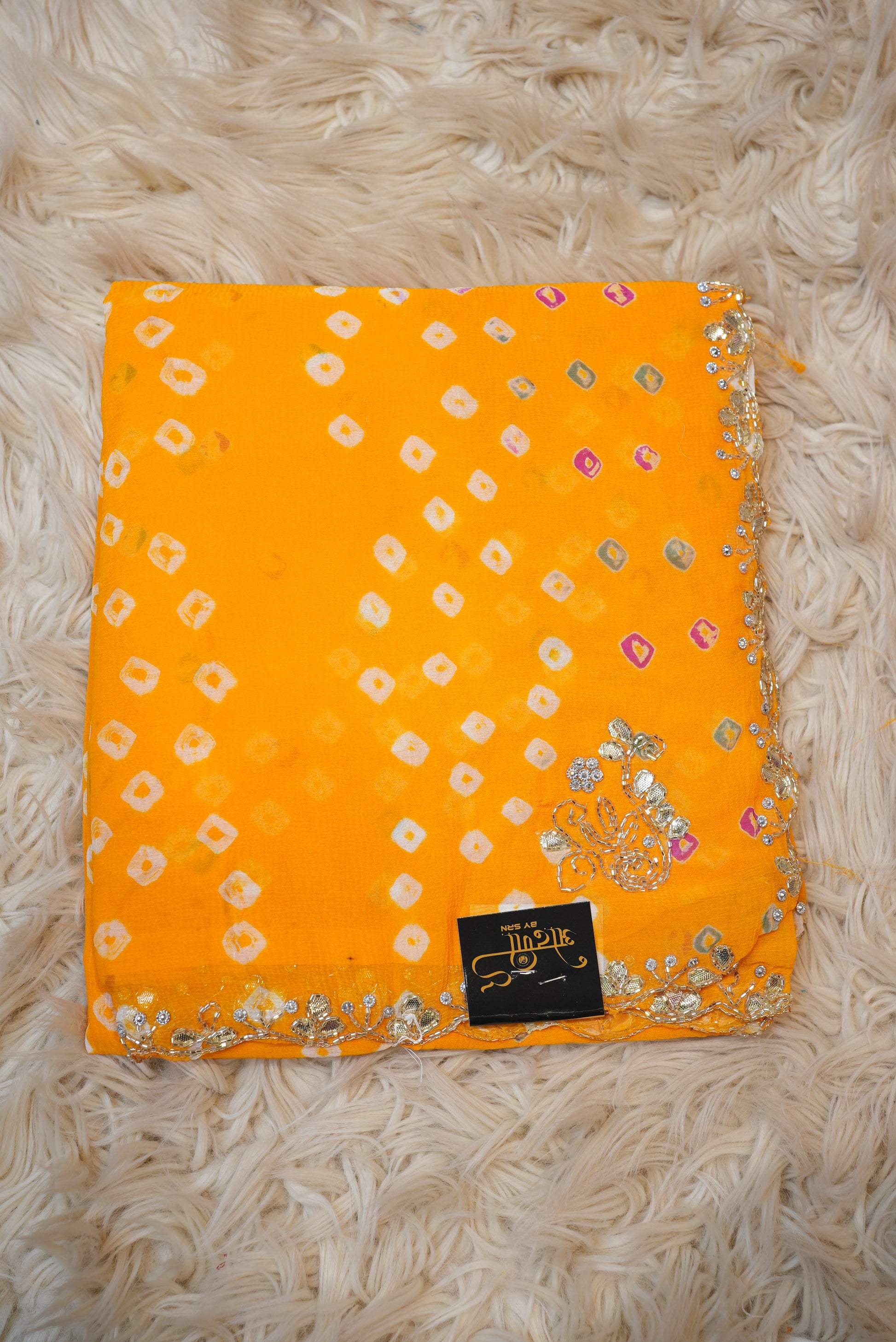 RAJASTHANI BANDHANI SAREE WITH GOTA PATTI & CUTDANA WORK BORDER ON ROAYL CHIFFON FABRIC (WITH RUNING BLOUSE) ##SR503
