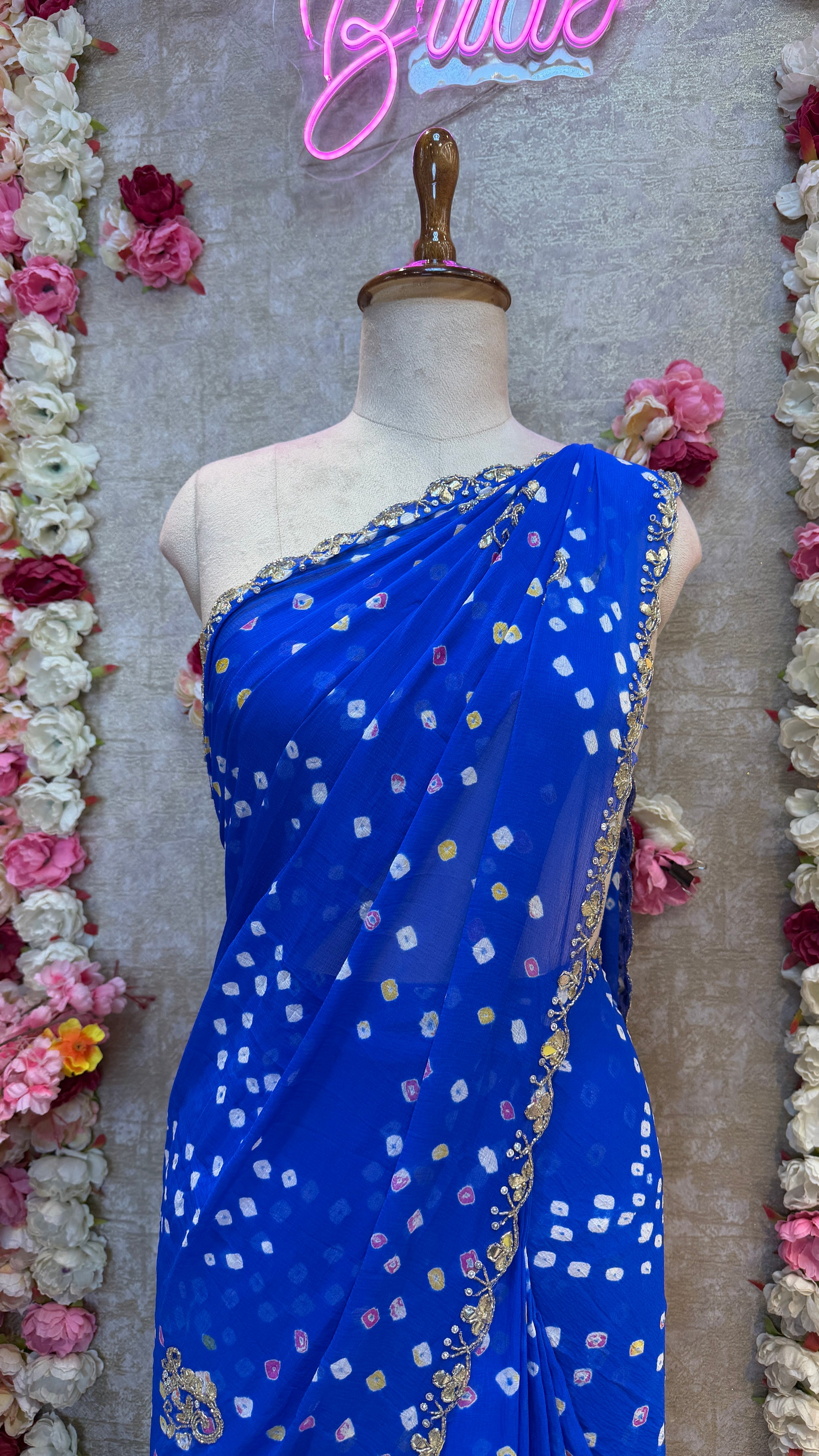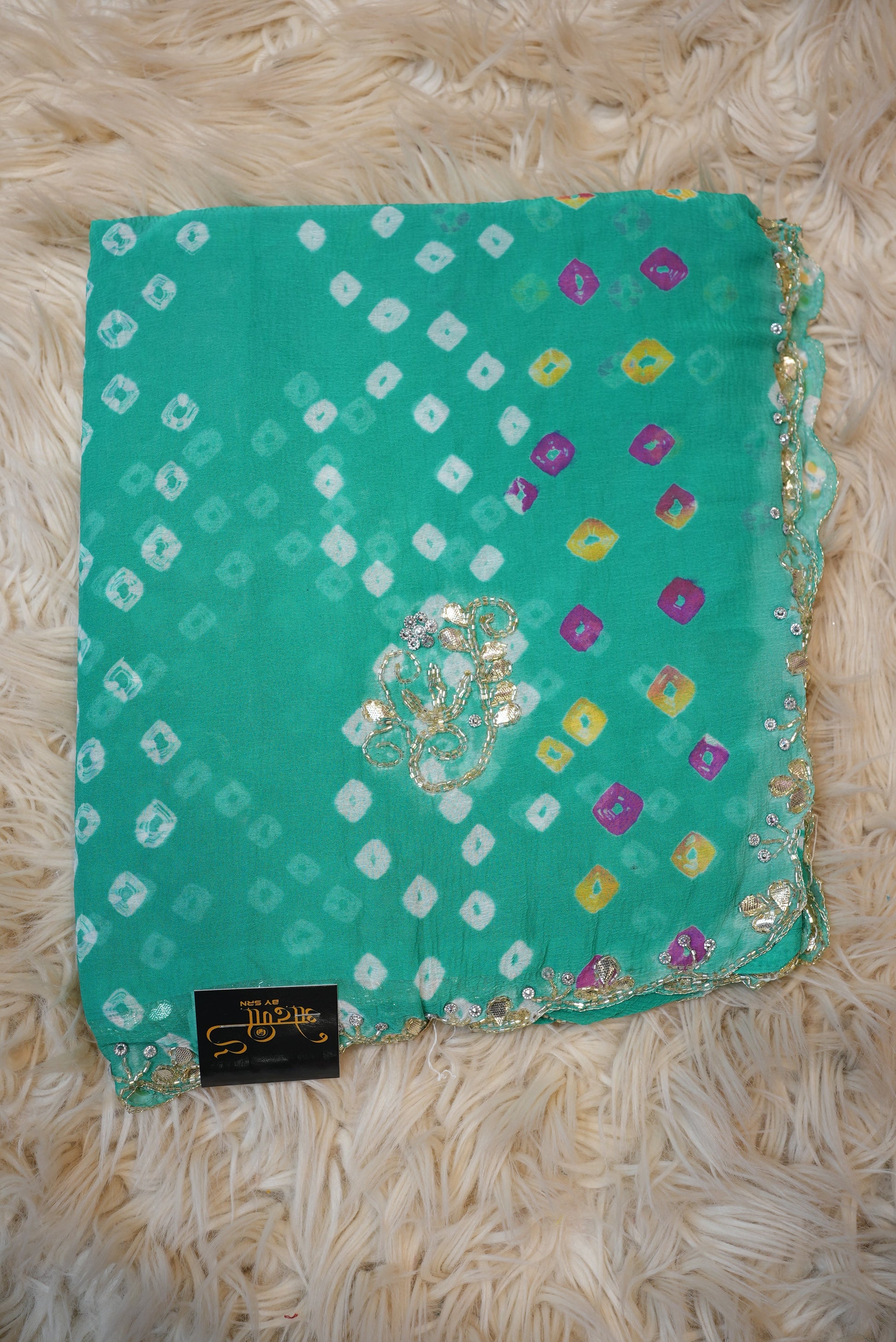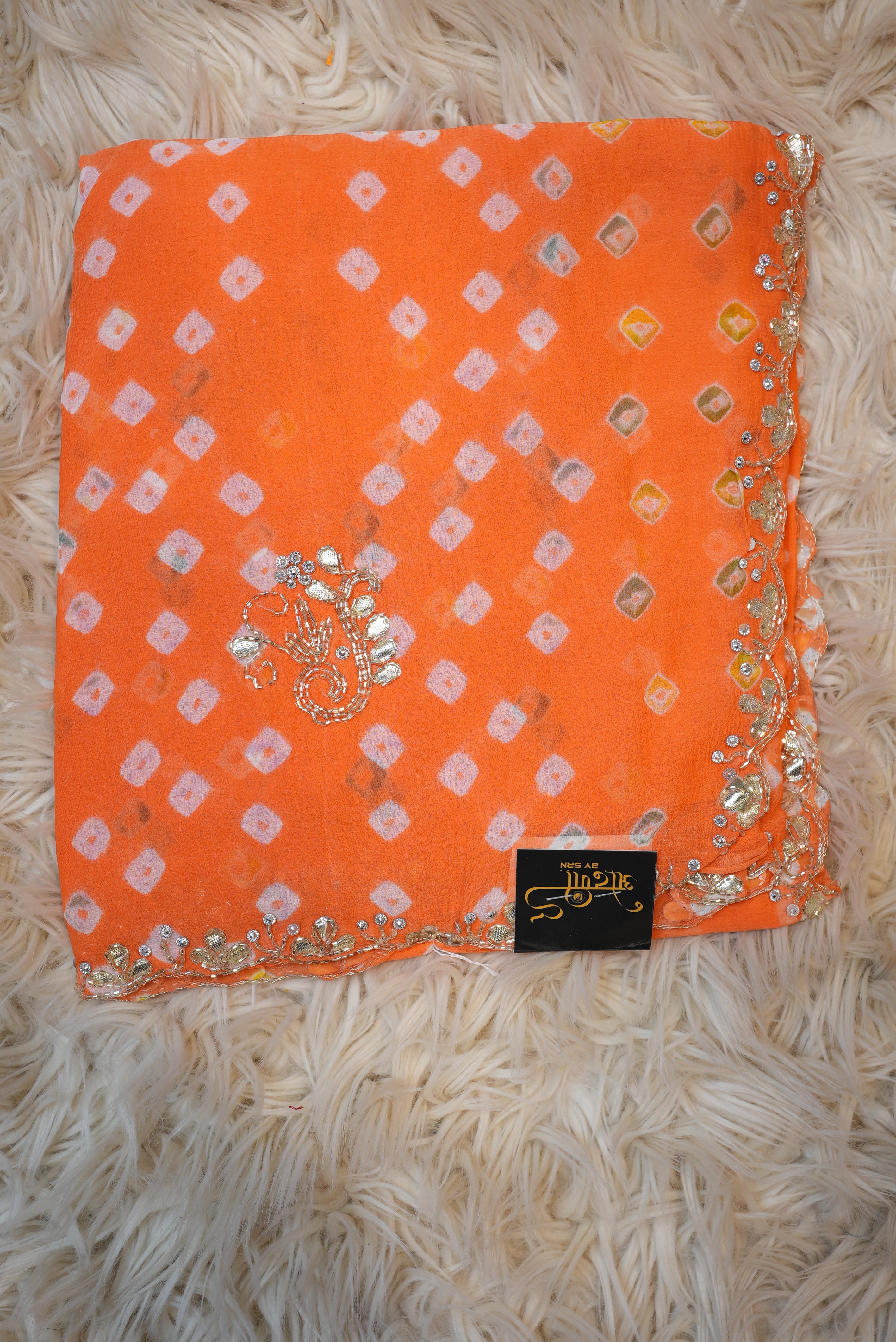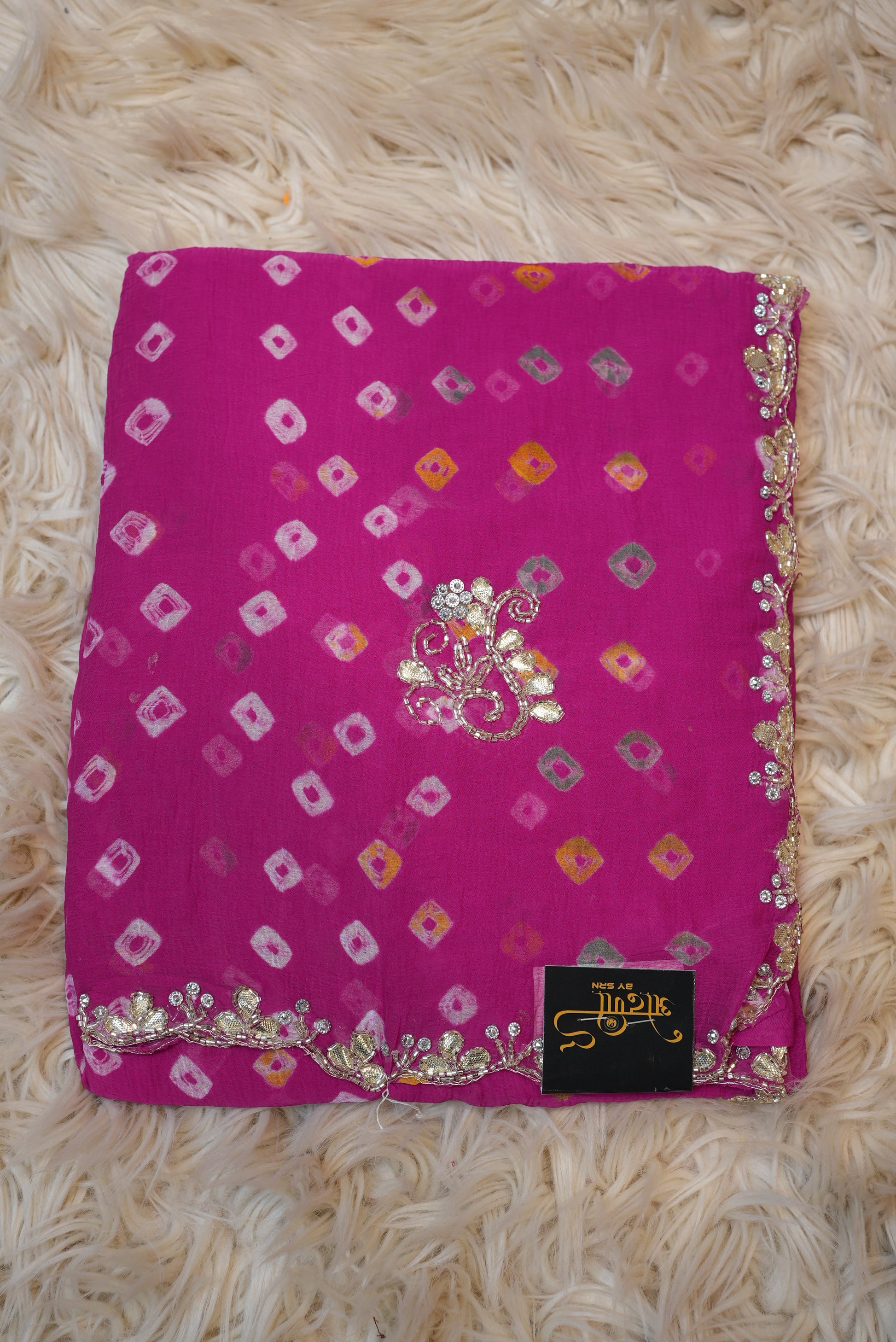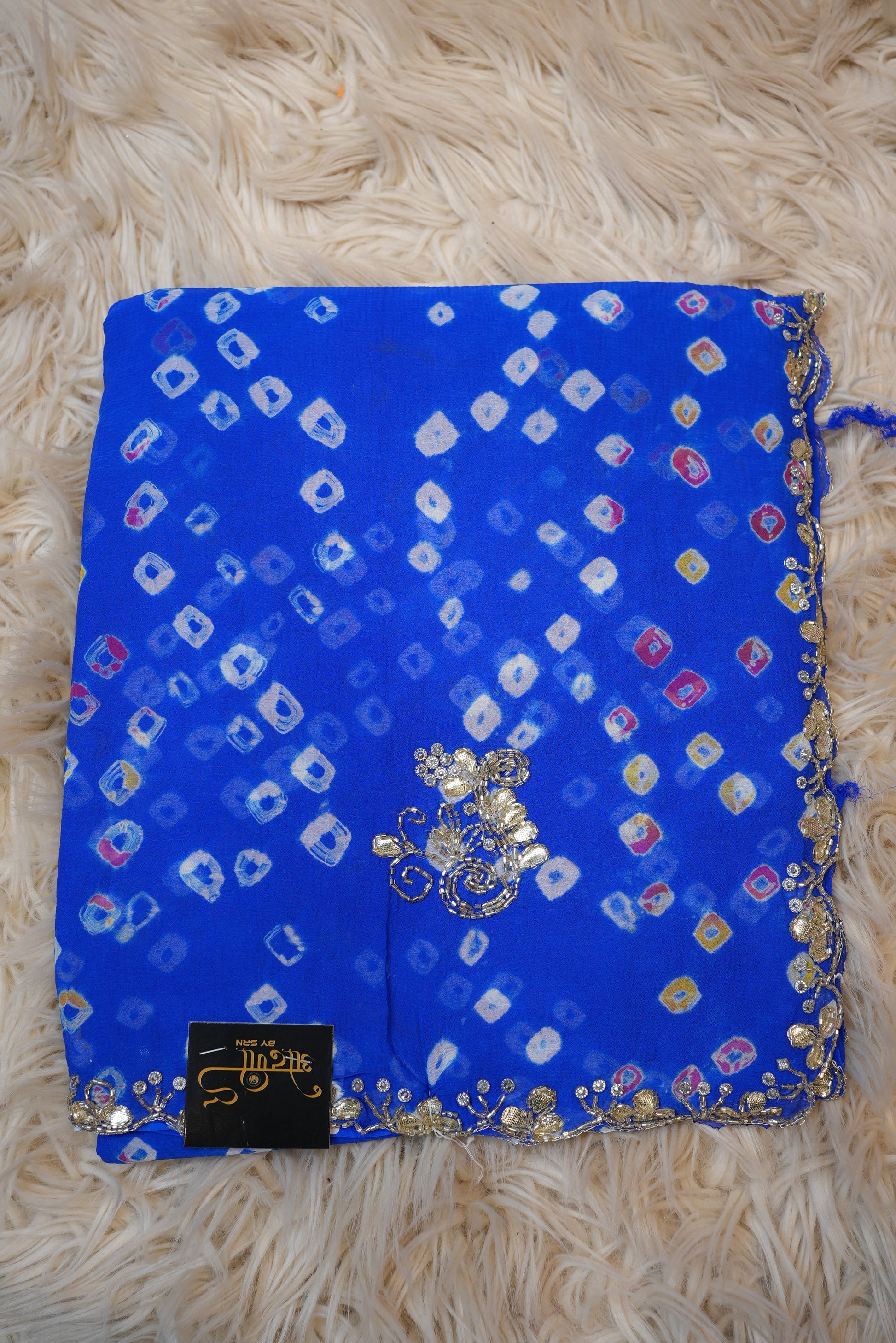 RAJASTHANI BANDHANI SAREE WITH GOTA PATTI & CUTDANA WORK BORDER ON ROAYL CHIFFON FABRIC (WITH RUNING BLOUSE) ##SR503