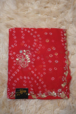 RAJASTHANI BANDHANI SAREE WITH GOTA PATTI & CUTDANA WORK BORDER ON ROAYL CHIFFON FABRIC (WITH RUNING BLOUSE) ##SR503
