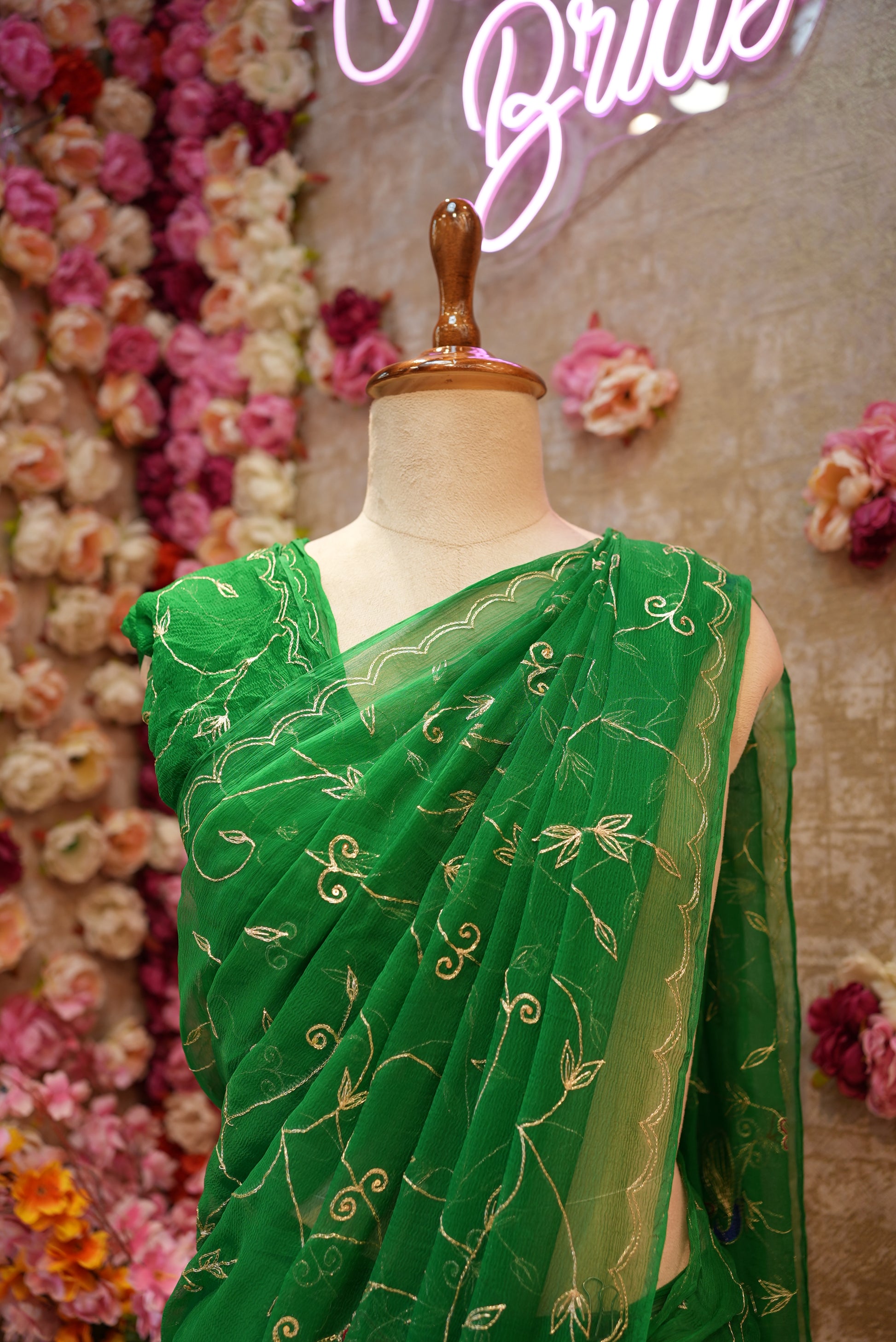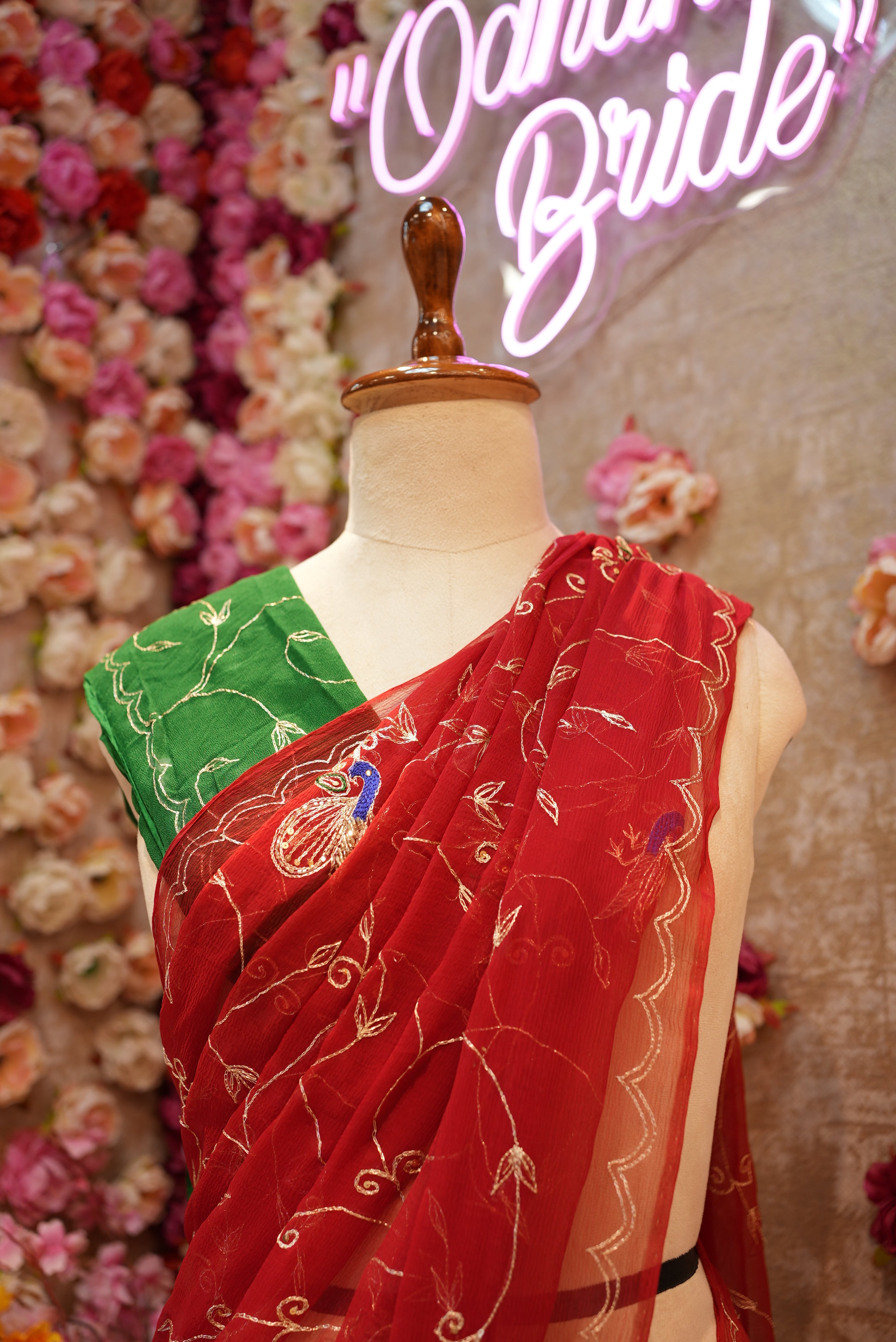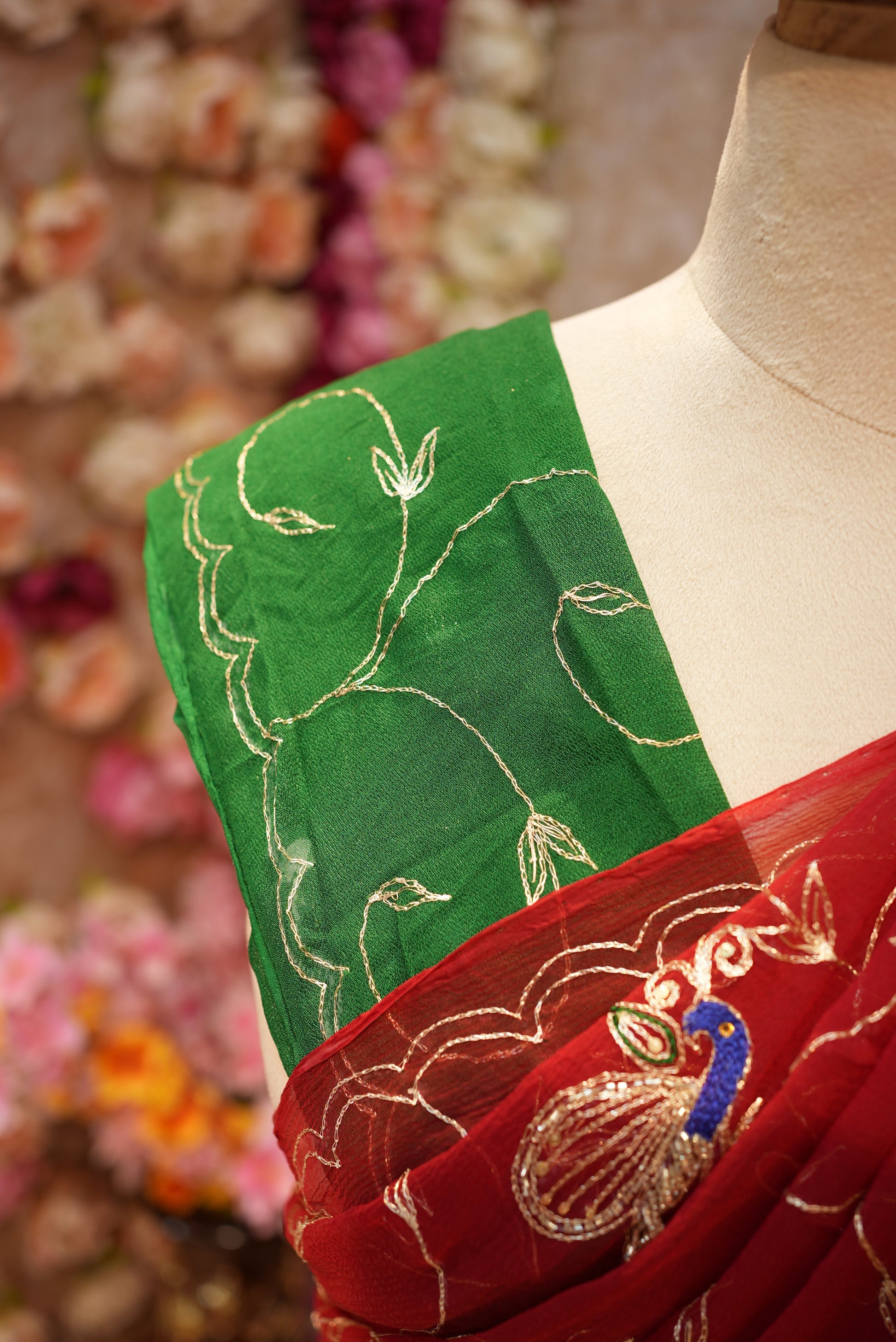 RAJASTHANI SAPECIAL THAKURJI CHIFFON SAREE WITH AARI TARI WORK AND JAAL PATTERN & PEACOCK DESIGN ##SR466
