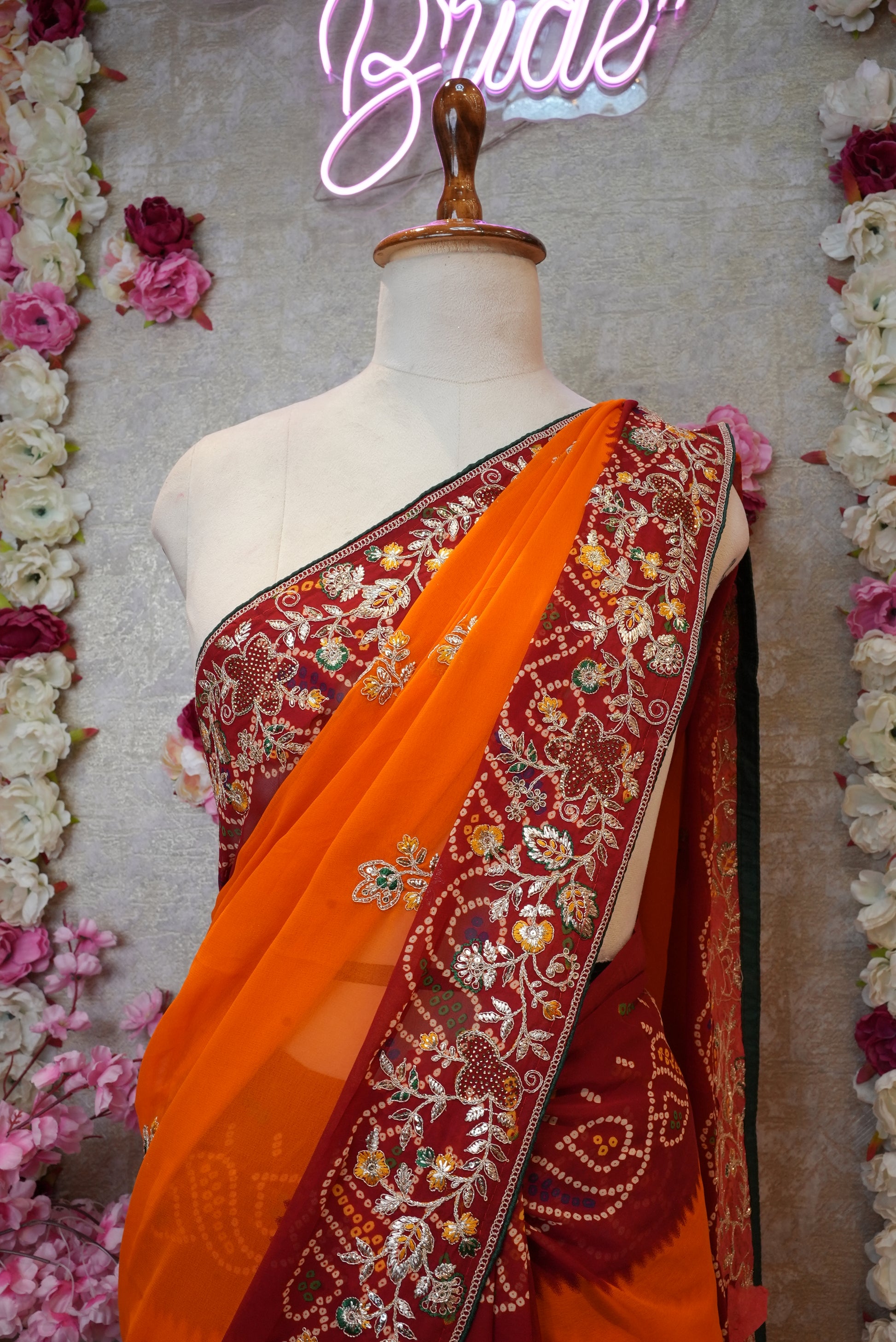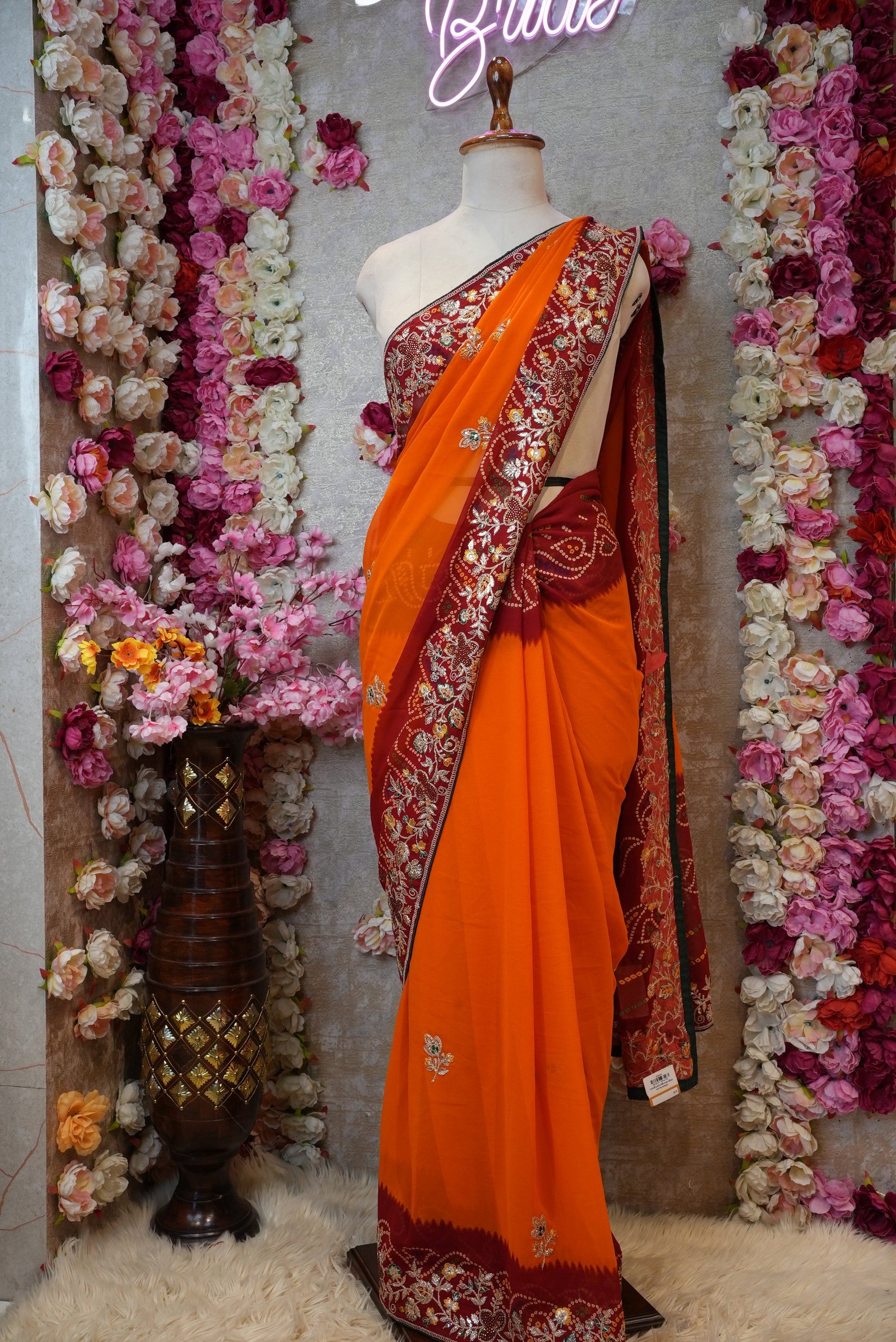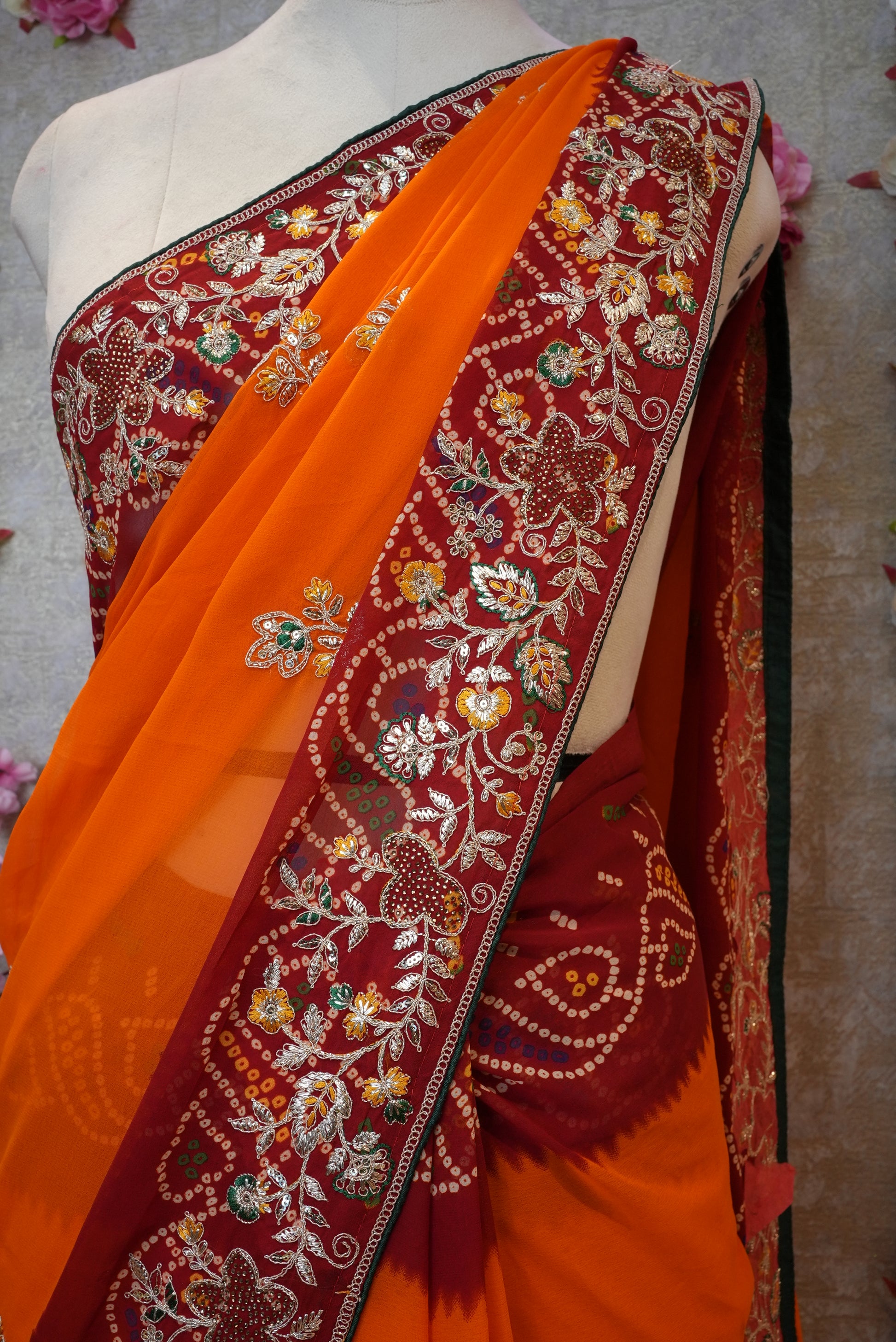 RAJASTHANI TRADITIONAL PILA CHUNRI SAREEE WITH SEQUENCE WORK (WITH BLOUSE) ##SR0296