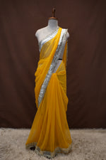 Perfect for weddings, celebrations, and cultural events, this Rajasthani Kachi Gota work saree is an ideal choice for those who appreciate handcrafted details blended with contemporary trends.