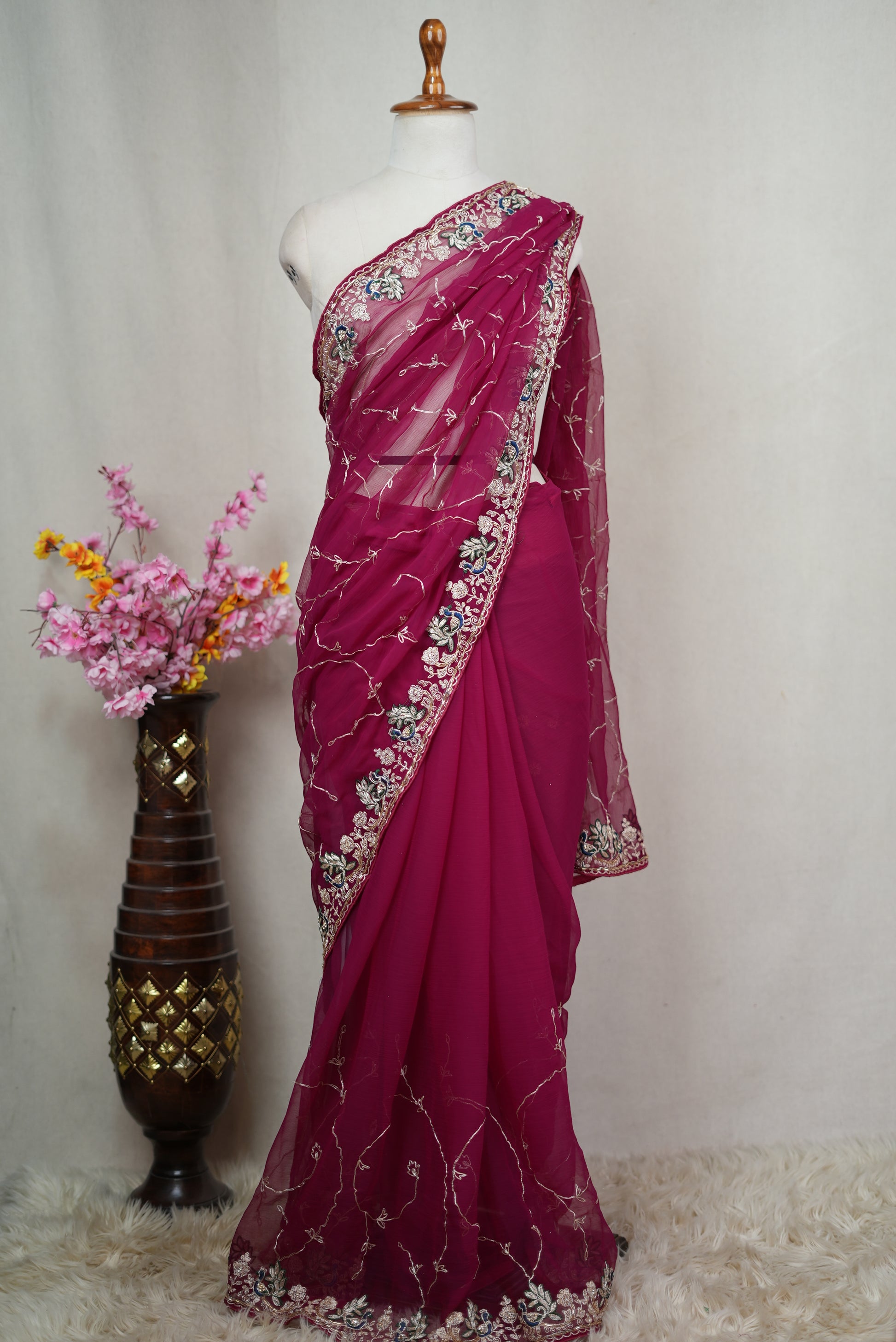 RAJPUTI JALL PATTERN SAREE ON CHIFFON FABRIC WITH PITA WORK AND PEACOCK PATTERN BORDER (WITH BLOUSE) ##SR452