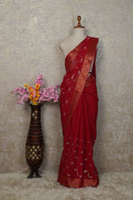 Shimmer Chiffon Saree with Jacquard Border, Zari Detailing & Cutdana Work (With Running Blouse)