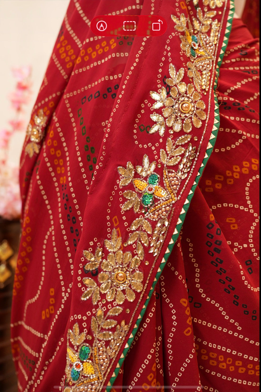 RAJASTHANI TRADITIONAL CHUNRI SAREE WITH SEQUENCE WORK (WITH BLOUSE) ##SR581