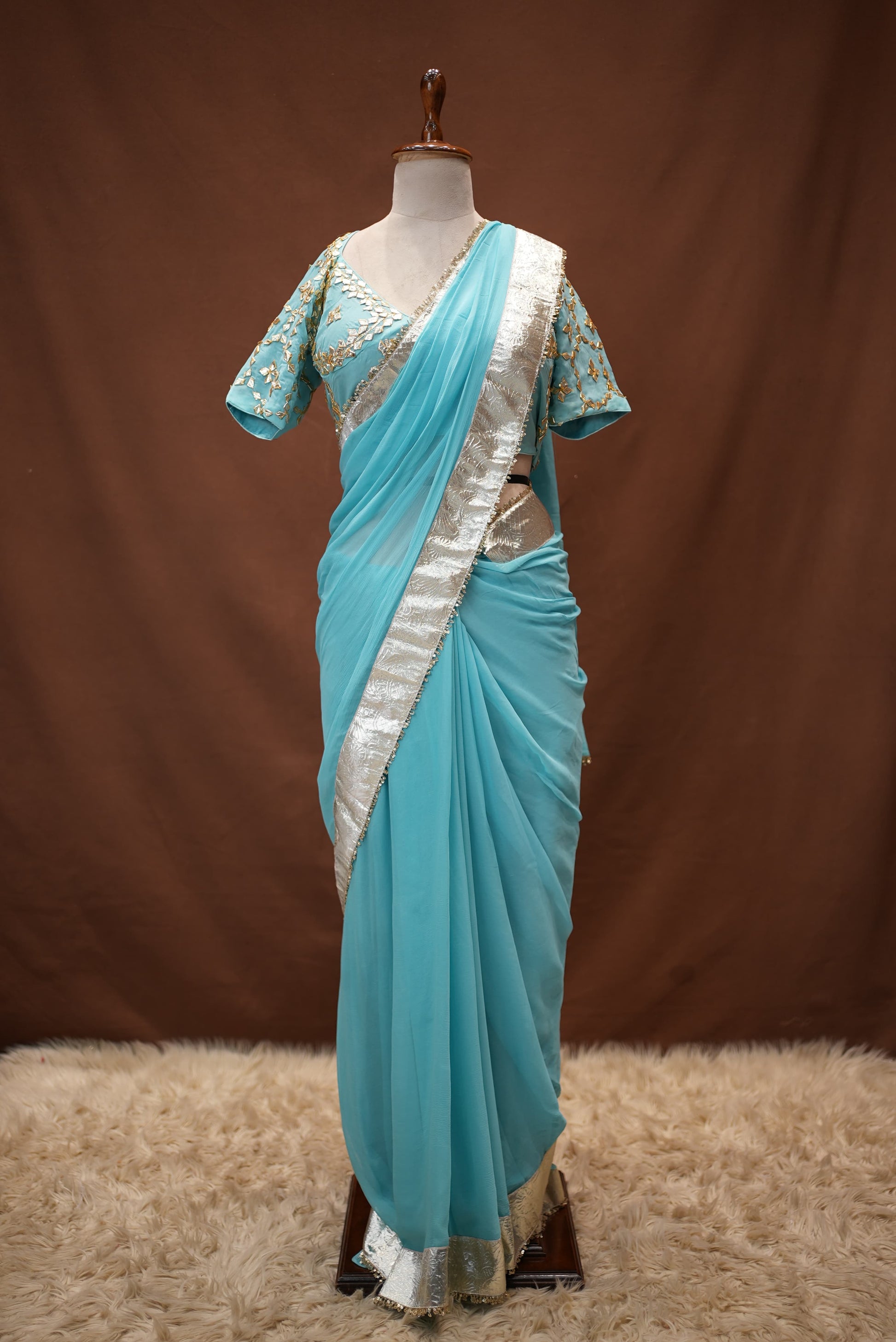 GOTA PATTI WORK RAJASTHANI ANGI BLOUSE WITH CHIFFON FABRIC SAREE ##SR655