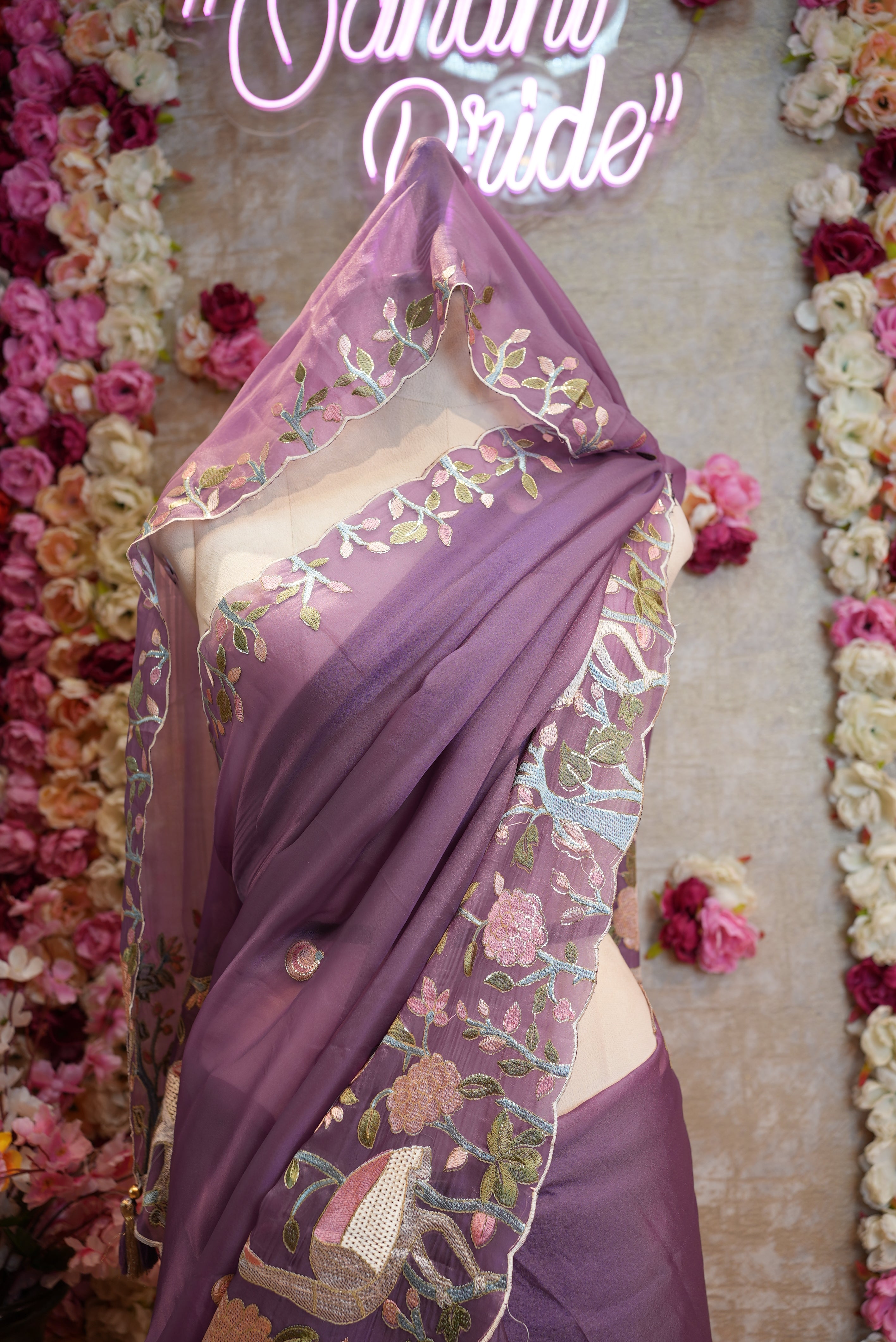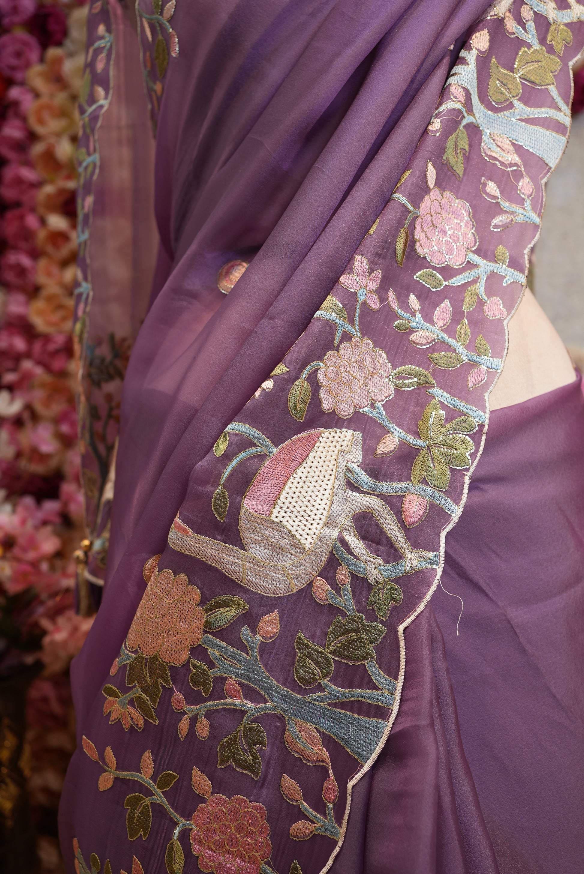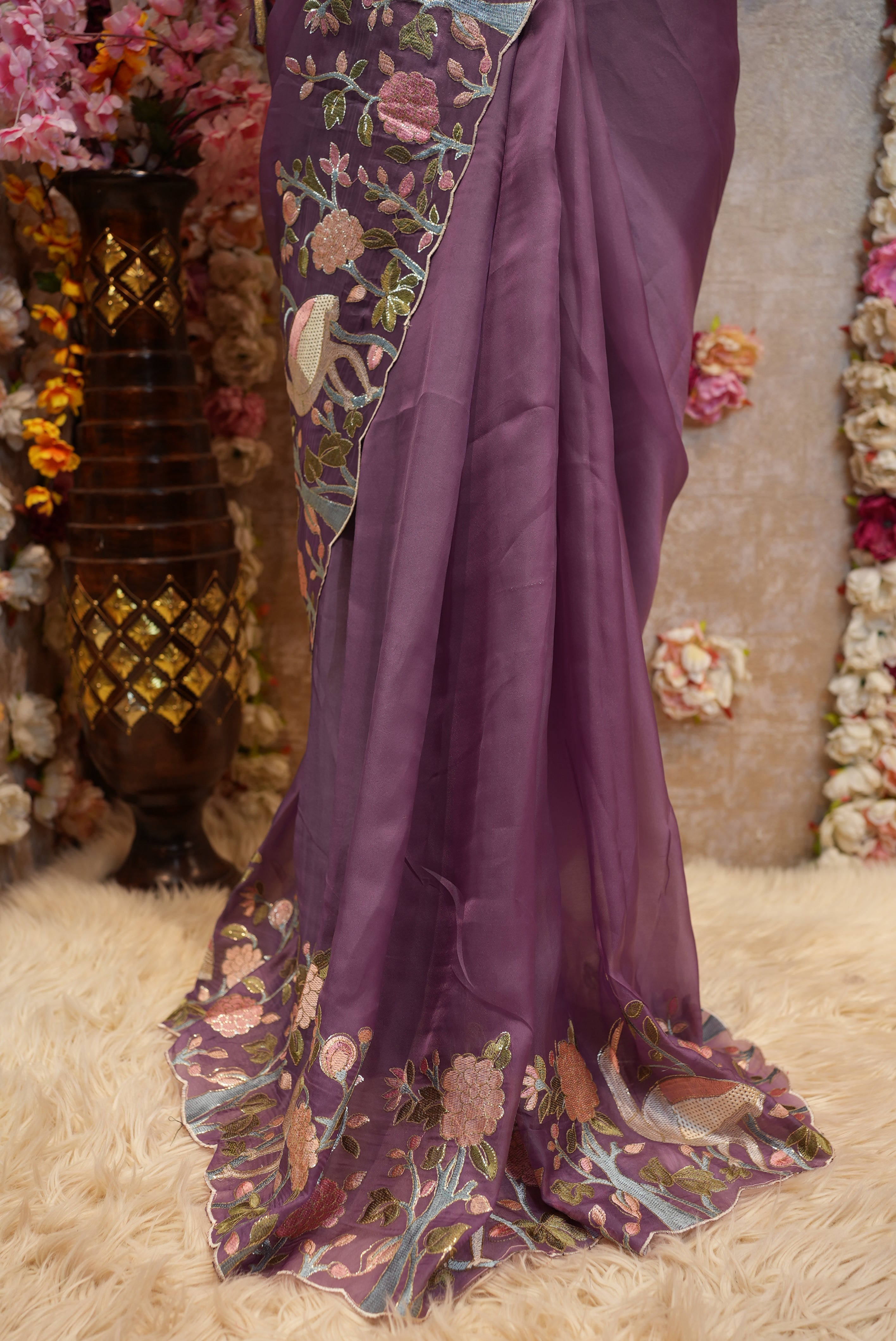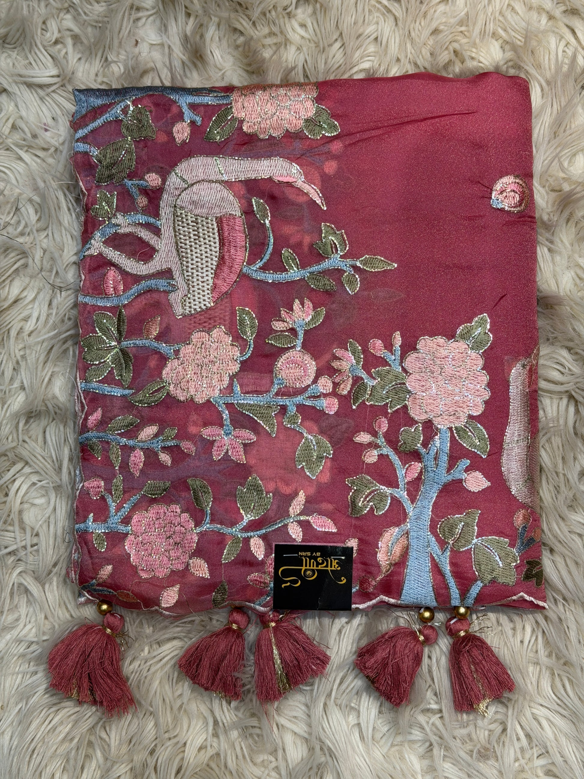 THREAD WORK WITH FIGURE PATTERN SAREE PANEL WORK WITH SAWAN DESIGN WITH HEAVY BORDER (WITH MONO TONE THREAD WORK BLOUSE ) ##SR474