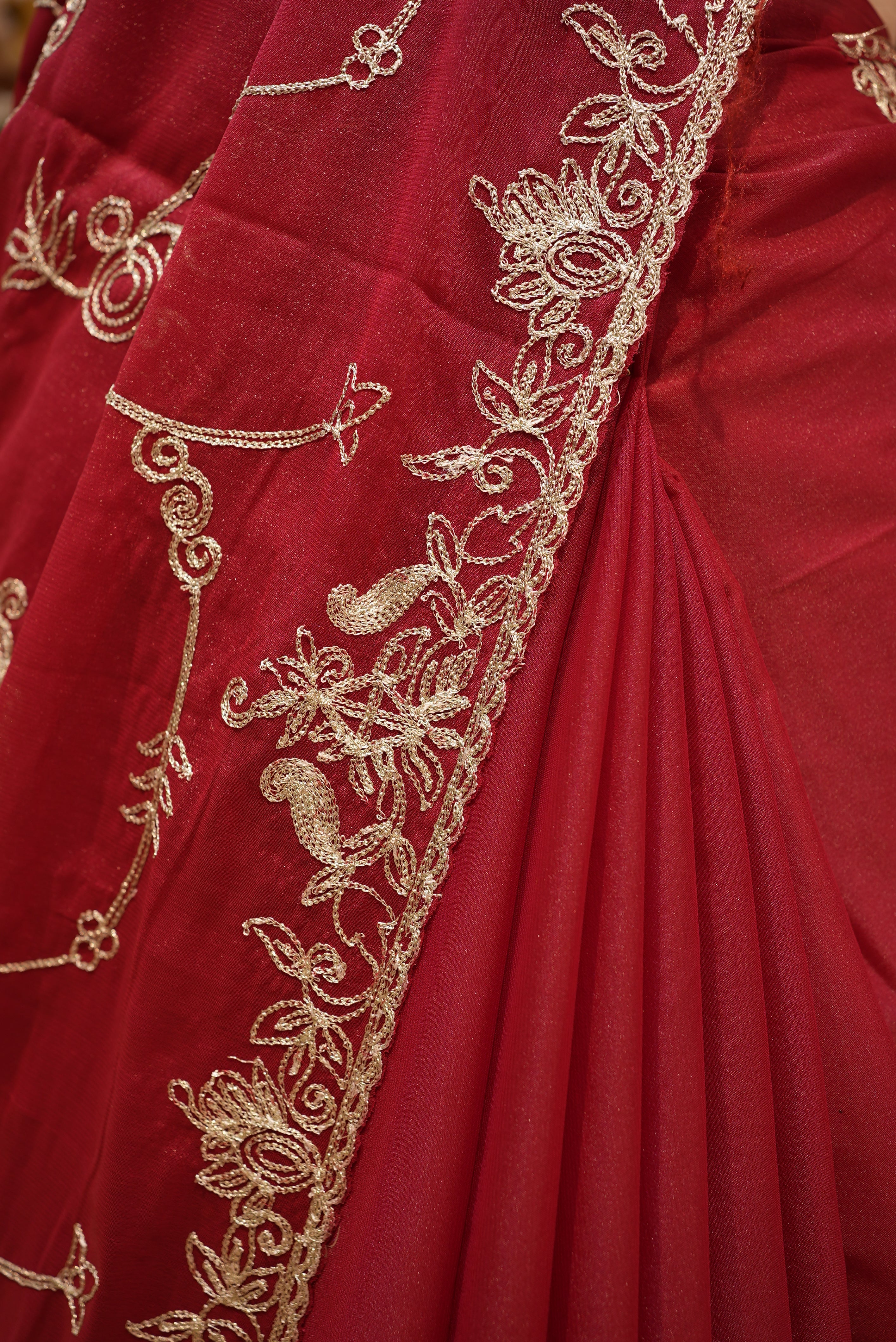 VINTAGE WORK HEAVY LOOKING SAREE WITH RUNING BLOUSE ##SR499