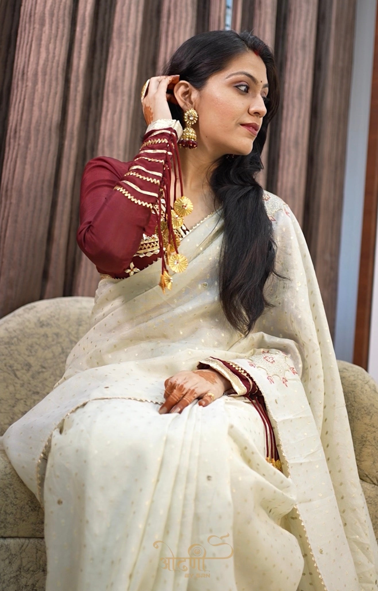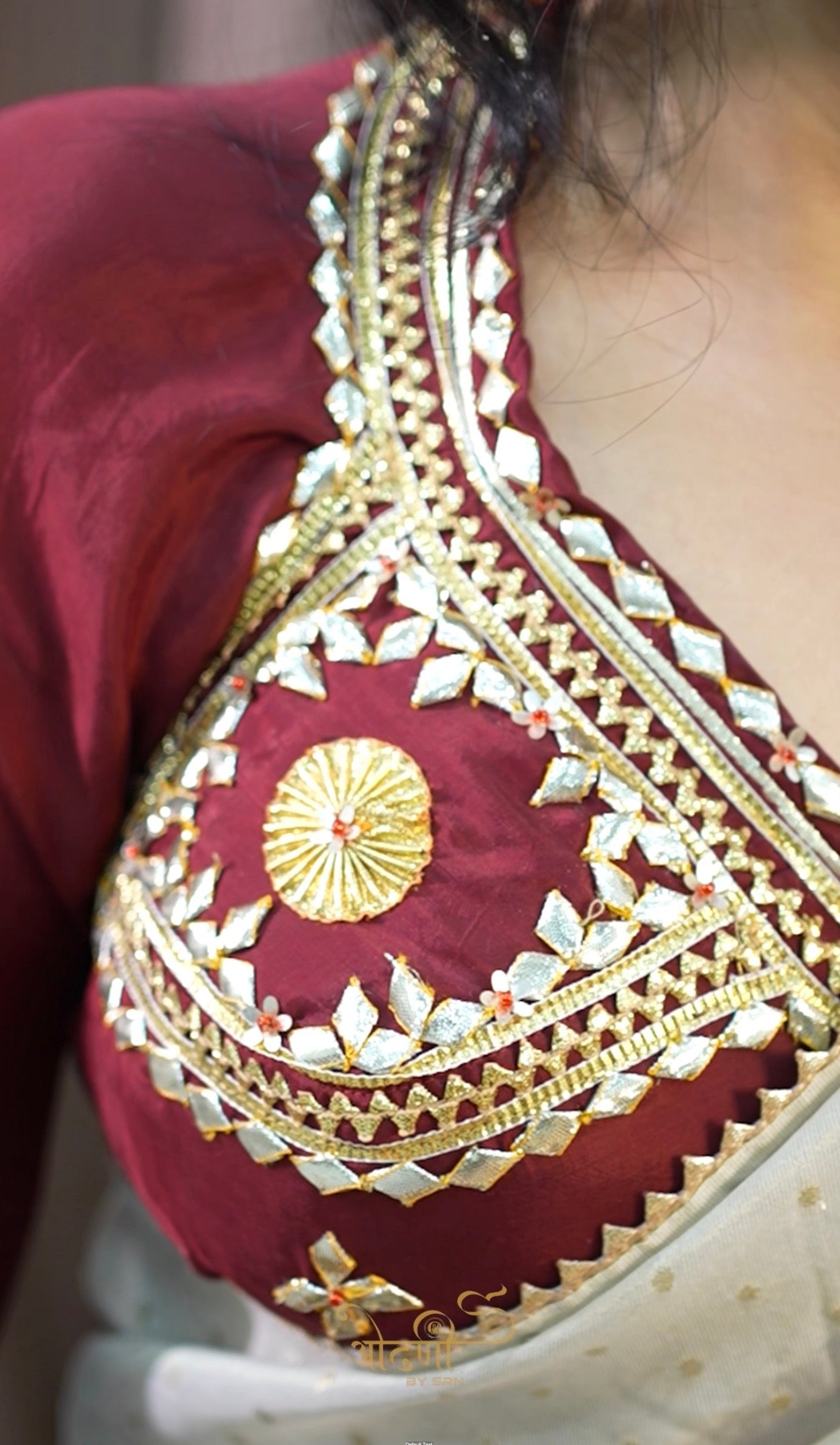 Paired with a beautifully designed full sleeves Rajasthani Angi blouse, this ensemble reflects the essence of traditional Rajasthani heritage. The Angi blouse enhances the ethnic charm of the saree, making it a perfect choice for weddings, festive occasions, cultural gatherings, and heritage celebrations.